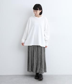ふっくらと編み立てた、伸縮性のあるやさしい肌触りのコットン素材。薄すぎず厚すぎずの生地感で、身体にまとわりつかずふわっとした着心地が快適です。
