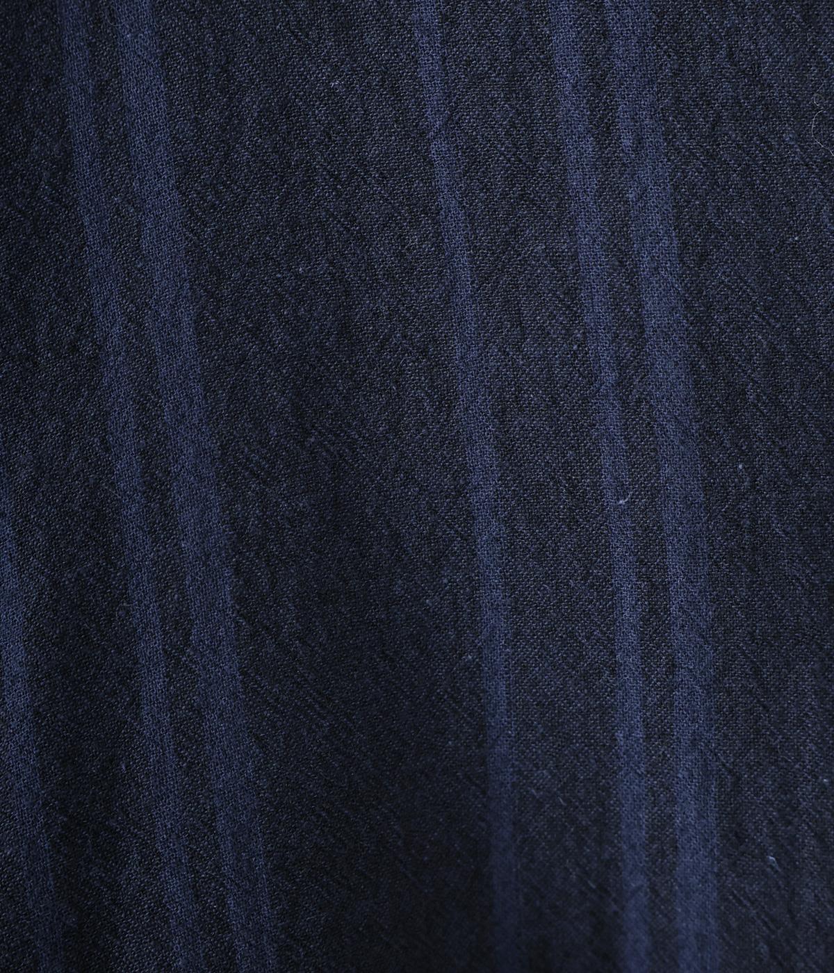 軽やかでさらりとしたリネンコットン生地を使用。素材本来の趣に奥行きをもたらす、凹凸のある自然なシボ感が魅力。ピッチの異なるストライプをランダムに配した、オリジナル柄をあしらいました。