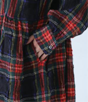 長く着るほどに、クシュッとしたシワ感や風合いが体のラインに馴染みます。タータンチェック柄のワンピースはトレンドに左右されず、長く愛用していただけるところも魅力です。