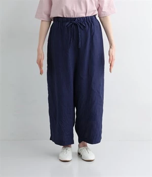 インディゴ染めならではの深みを活かしたシンプル仕立てのパンツです。存分に生地感を味わえるビッグシルエットで、スタイリングのポイントにもなります。ウエストは総ゴムに、調整紐はデザインポイントにも。