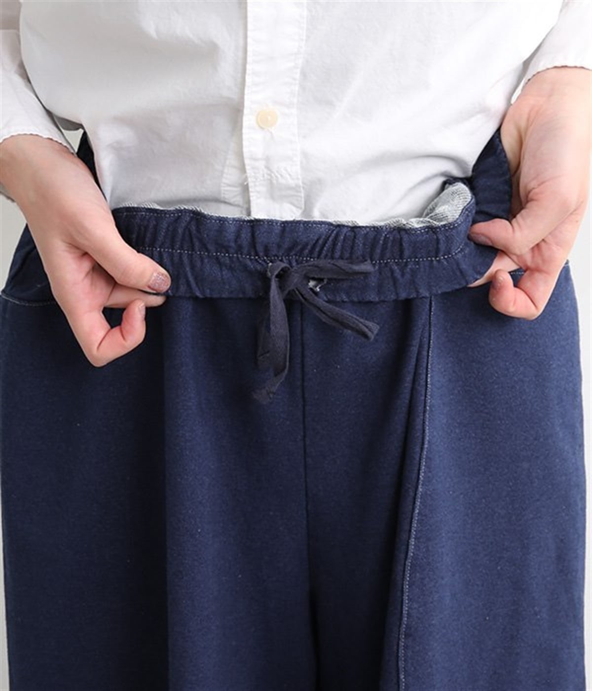柔らかい裏毛ニットデニムで仕立てたワイドパンツ。タテヨコ両方向に伸びる高いストレッチ性が最大の魅力で、快適なはき心地を実現しました。裾に向かってゆるやかに広がるスカートのようなラインが可憐さを感じさせます。ストレスフリーな総ゴム仕様のウエストに調整可能な内ひもを備え、心地良いフィット感で着用できるのも高ポイントです。