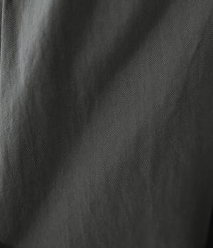 コットンのやさしい肌ざわりに、ナイロンのほどよいハリと耐久性を備えた混紡生地。厚すぎず薄すぎないほどよい厚みで、軽やかな着心地に仕上げています。