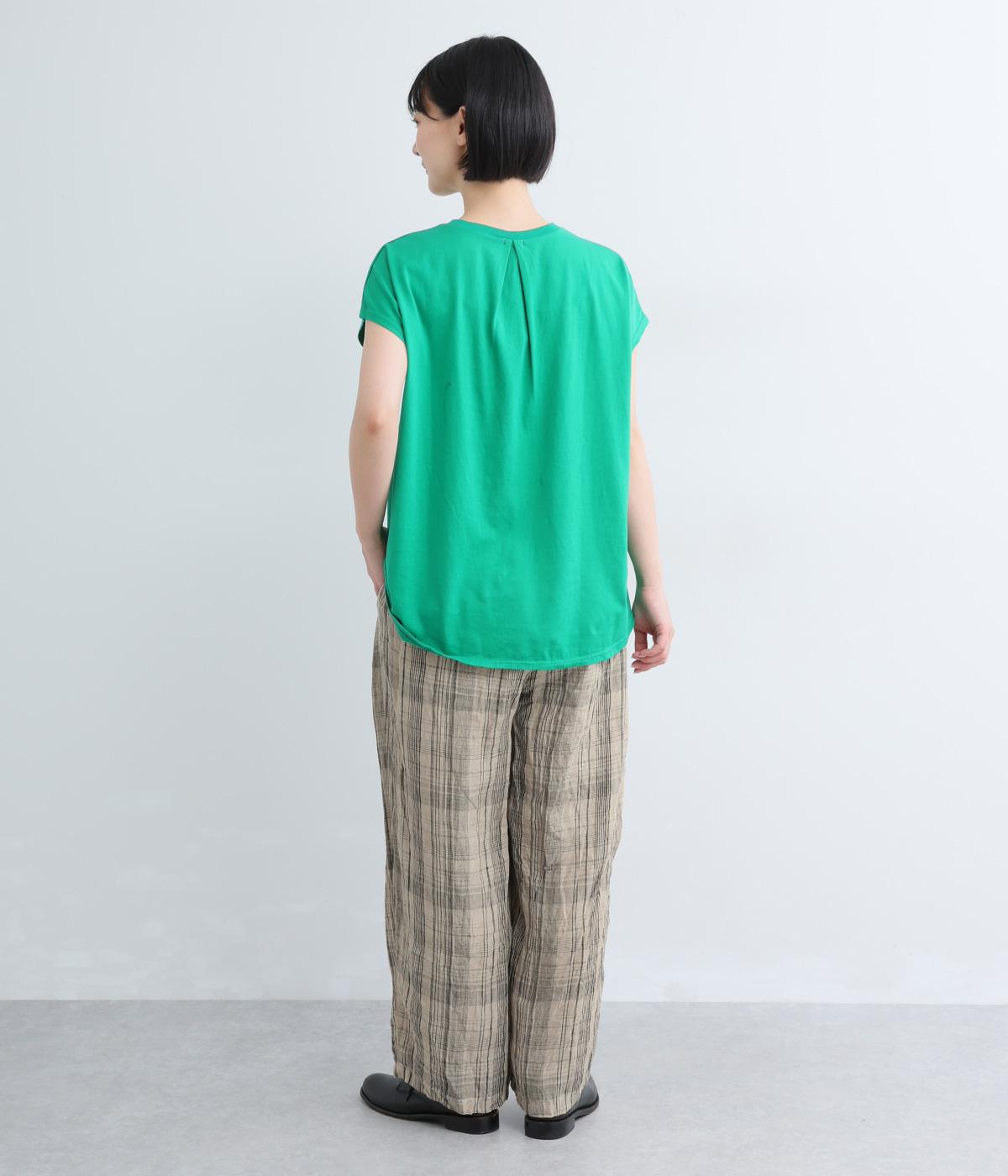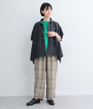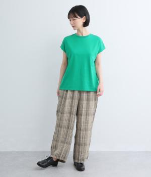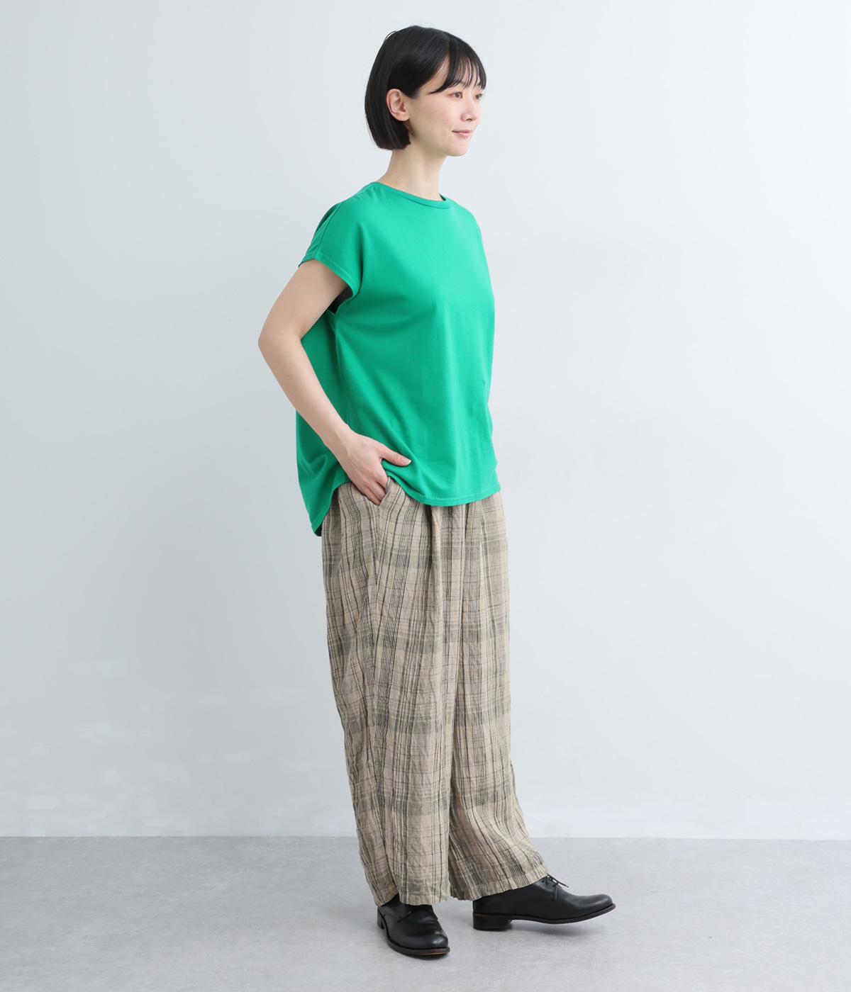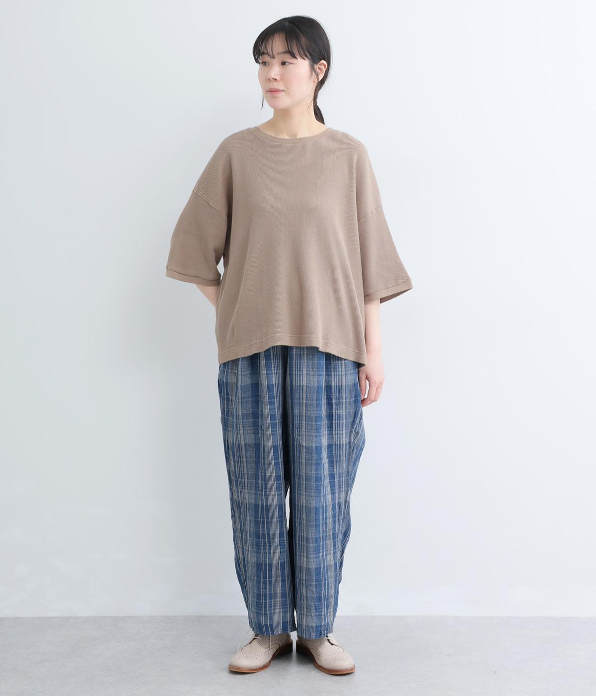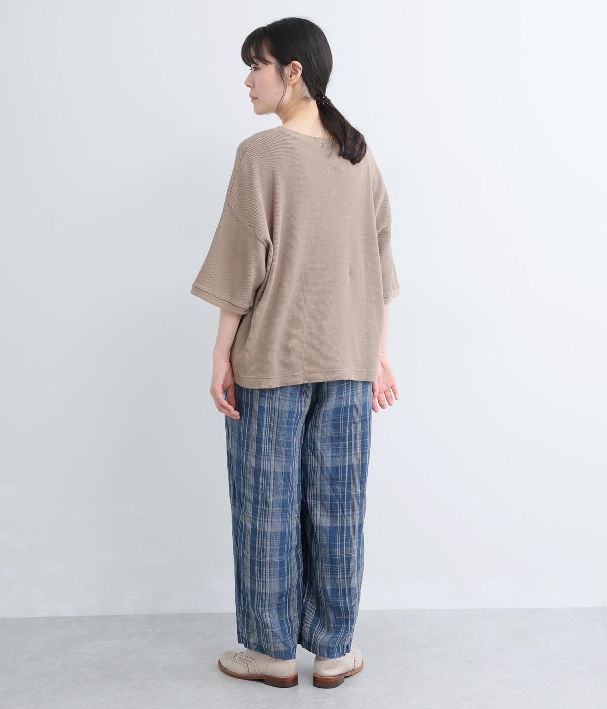 素材の風合いを生かしたナチュラルなチェック柄が、装いに自然体で柔らかな雰囲気をもたらします。コットンの裏地付きで肌あたりもよく、ウエストゴムと内紐の仕様でリラックスした安心の穿き心地です。