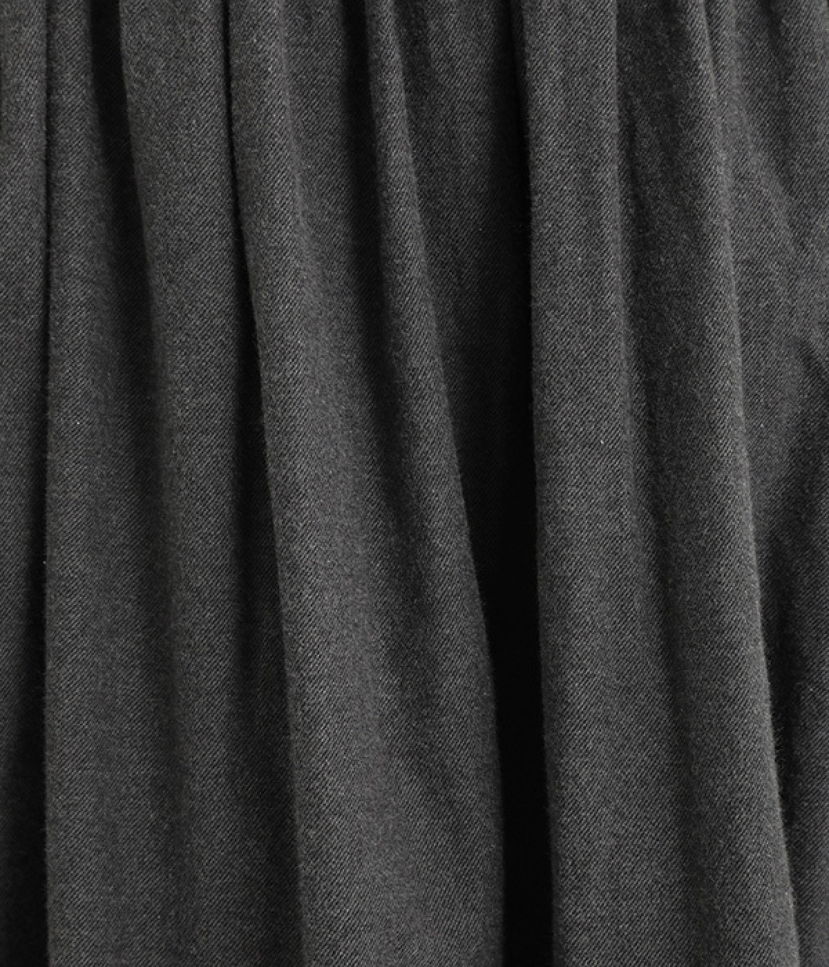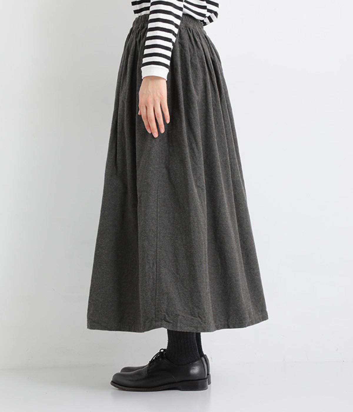 ウエストのたっぷりギャザーで着映えする分量感を足したフレアシルエット。見た目よりも軽やかに着用でき、ストレスなく装いに取り入れられます。トップスの生地の厚みや体型に左右されない、ウエスト総ゴム入りのイージー仕様も◎。