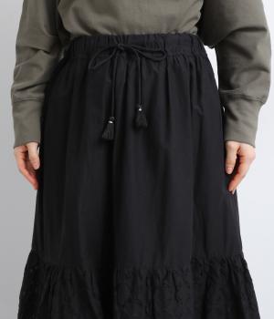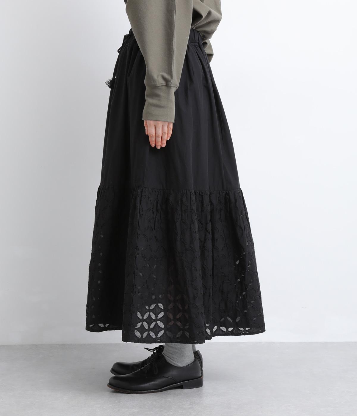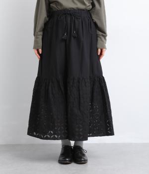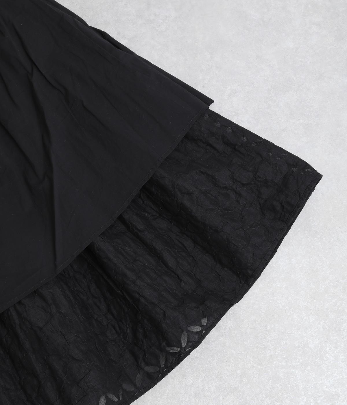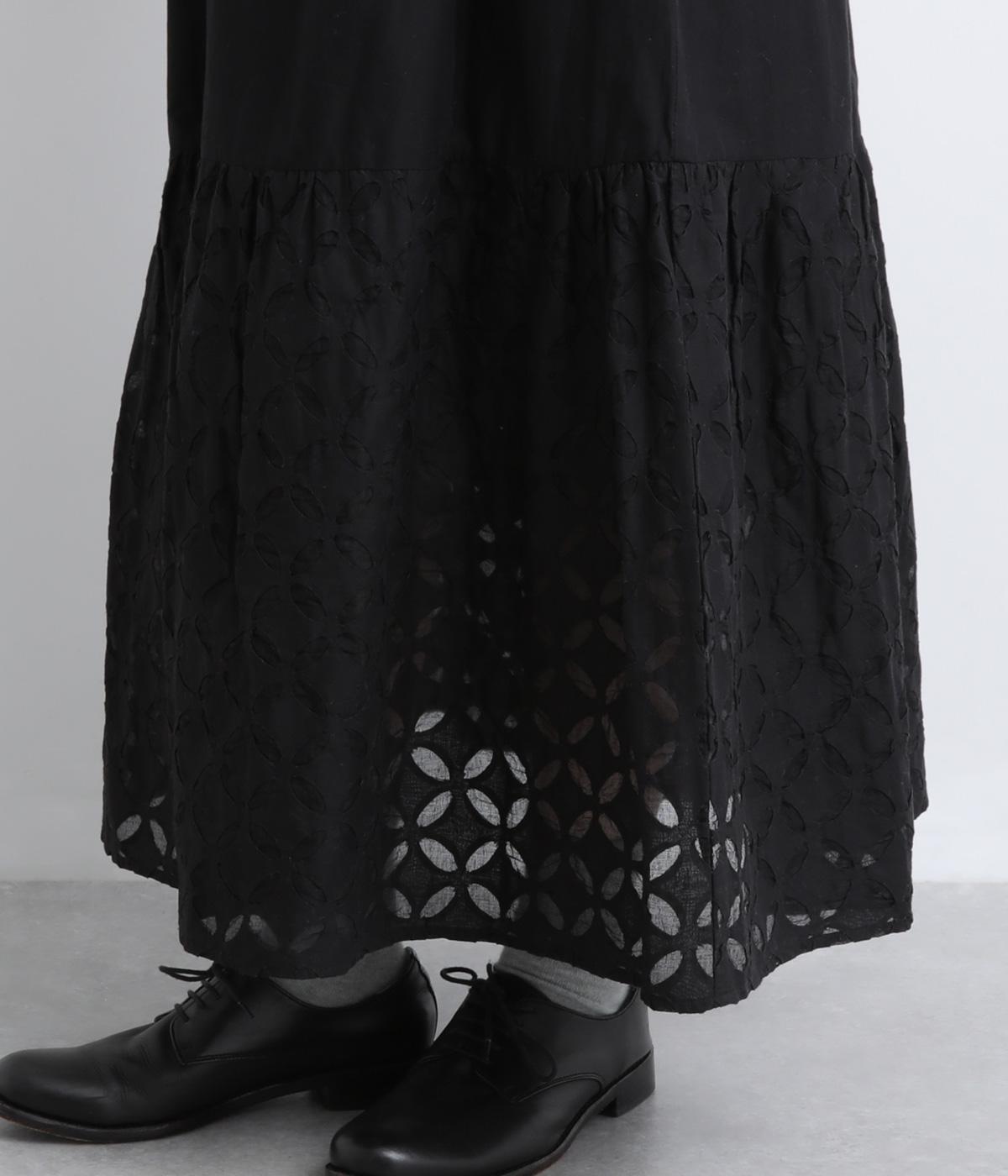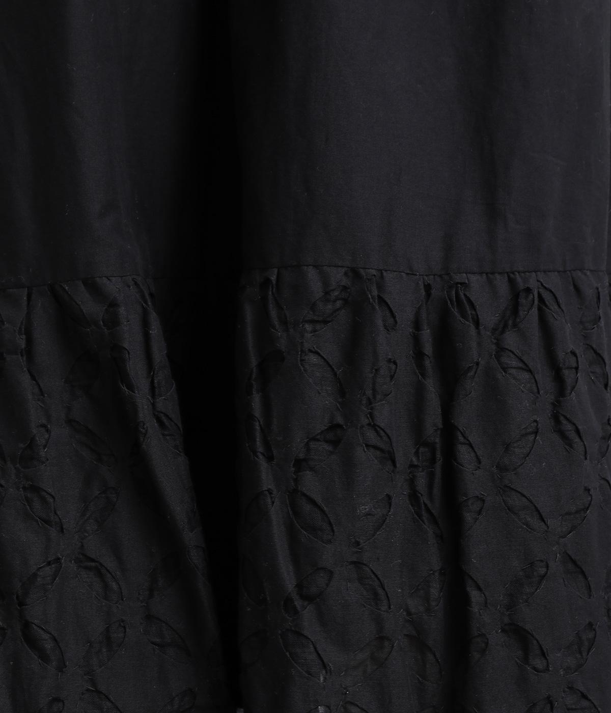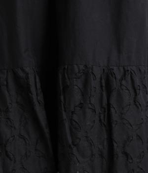 インド西部の伝統技法「リバースアップリケ」によって生まれる繊細なモチーフが、装いに奥行きを添えます。透け感のある柄が軽やかな表情を生み、ふんわり広がるシルエットが女性らしいやわらかさを演出。裏地つきなので、裾の透け感をたのしみながら安心して着こなせます。