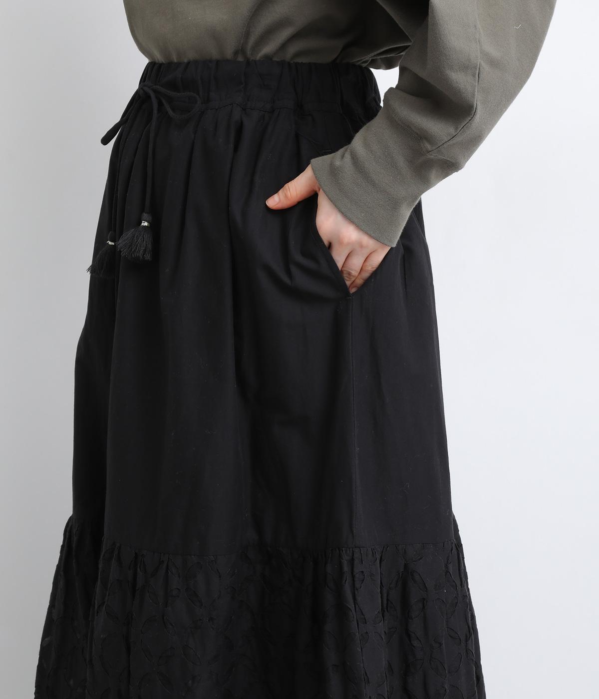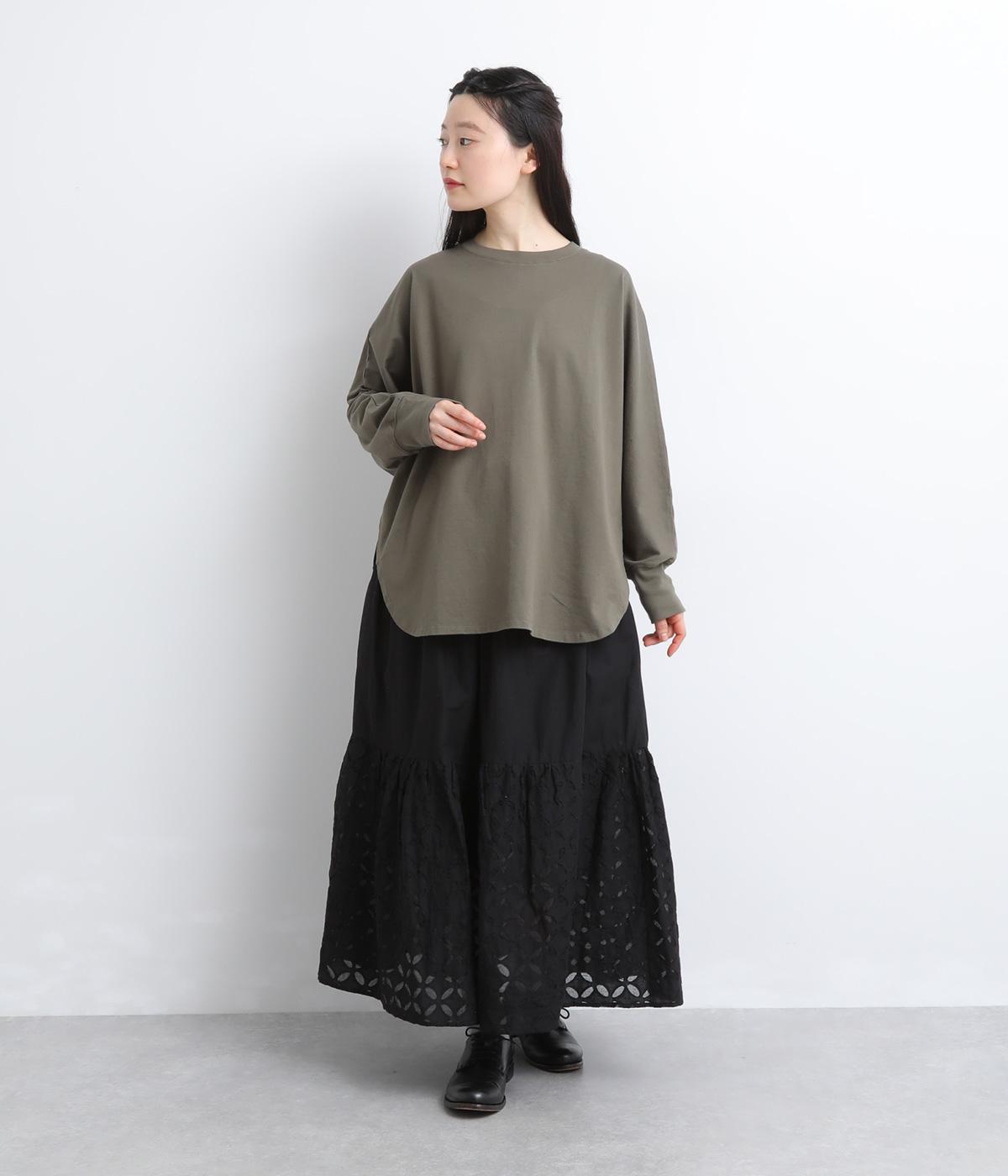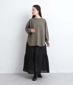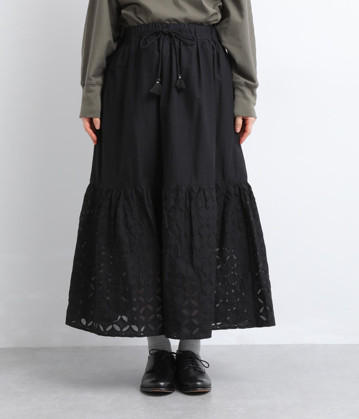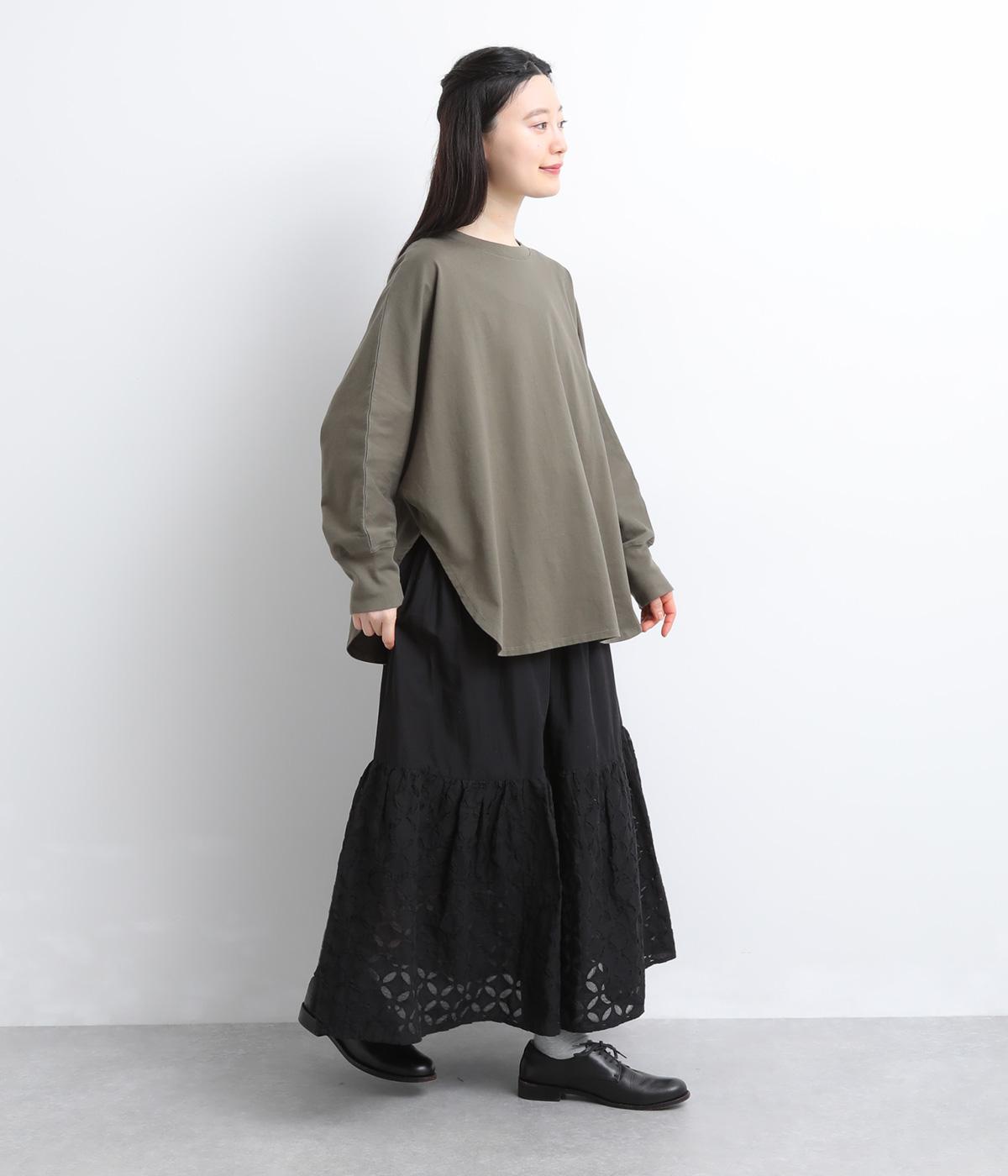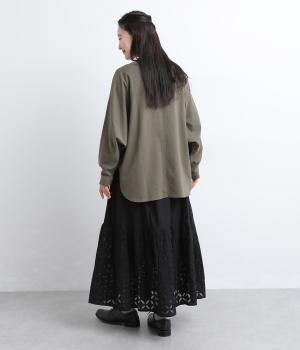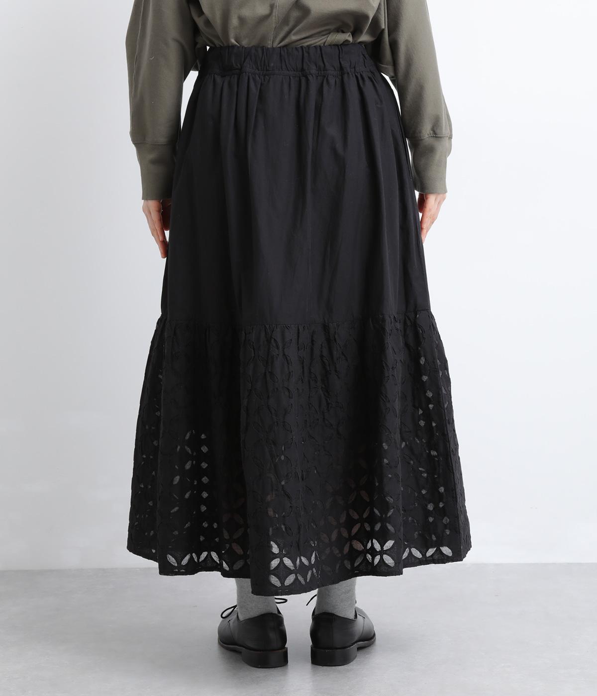 インド西部の伝統技法「リバースアップリケ」によって生まれる繊細なモチーフが、装いに奥行きを添えます。透け感のある柄が軽やかな表情を生み、ふんわり広がるシルエットが女性らしいやわらかさを演出。裏地つきなので、裾の透け感をたのしみながら安心して着こなせます。