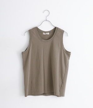 詰まりすぎず開きすぎずの絶妙な襟や袖ぐりにこだわった、使い勝手抜群のタンクトップです。毛羽立ちの少ないきれいな目面のカットソーが、滑らかに肌を包み込みます。ほどよいゆとりのある着心地ながらも、すっきりと見えるシルエットが秀逸。トップスとしてもインナーとしても着まわし自在の優れもので、シーズンレスで頼りになります。