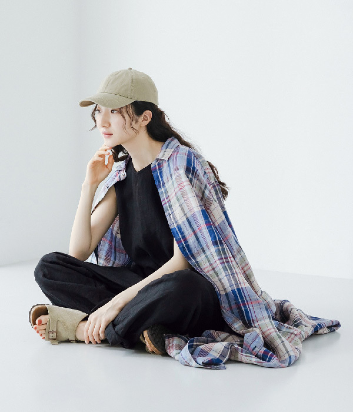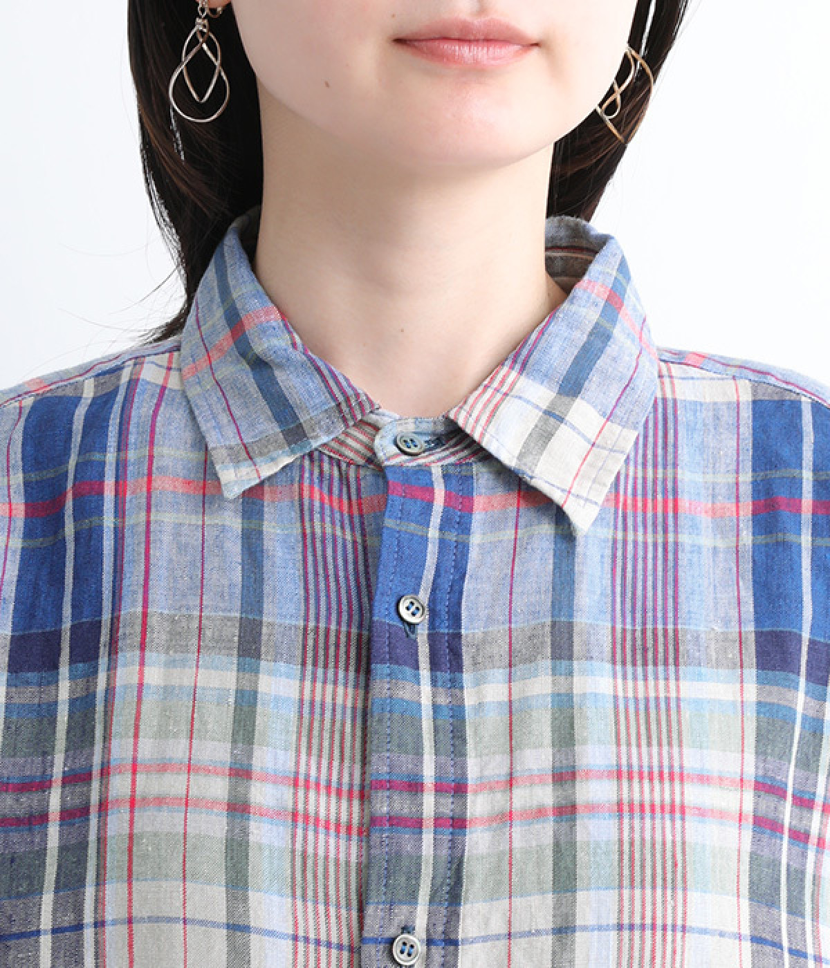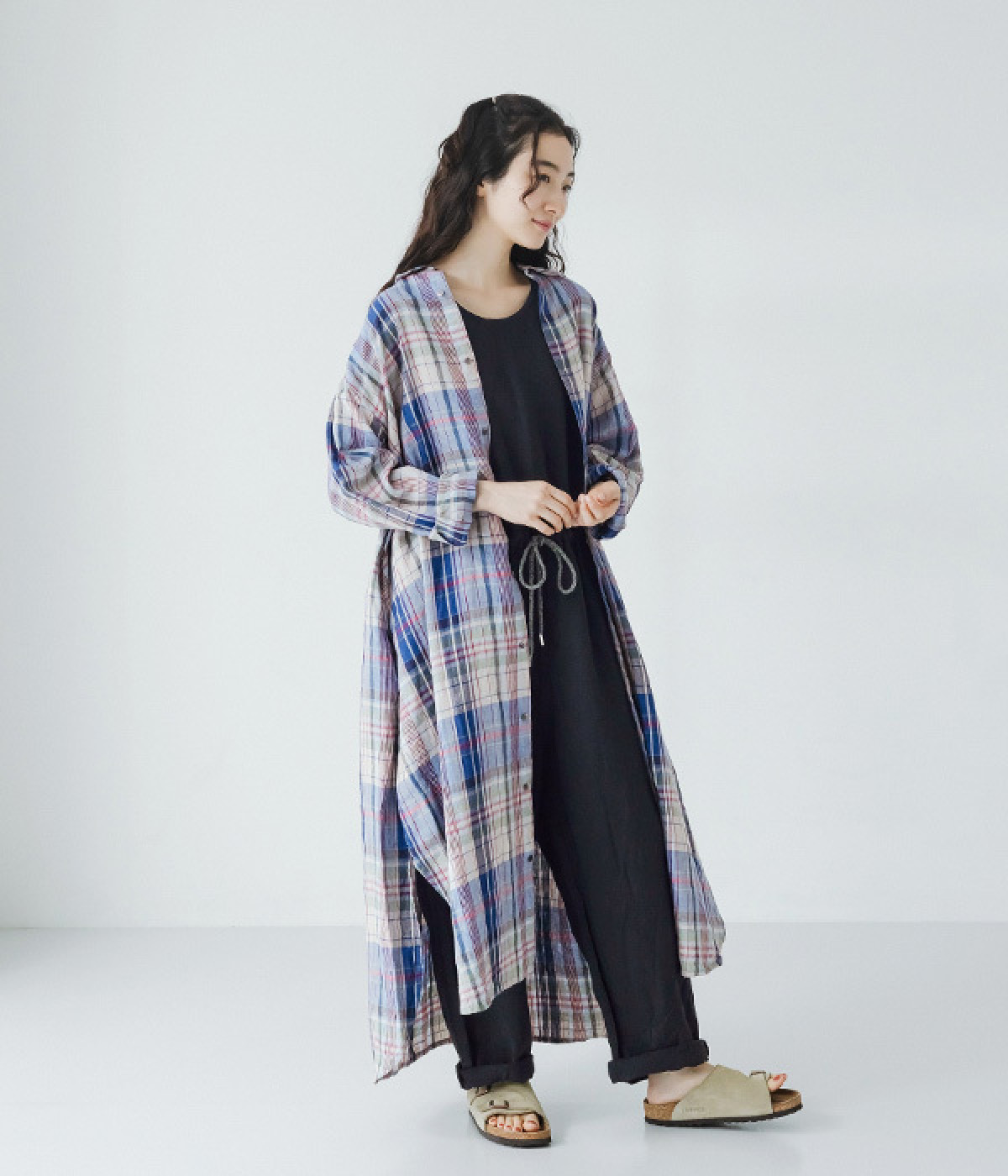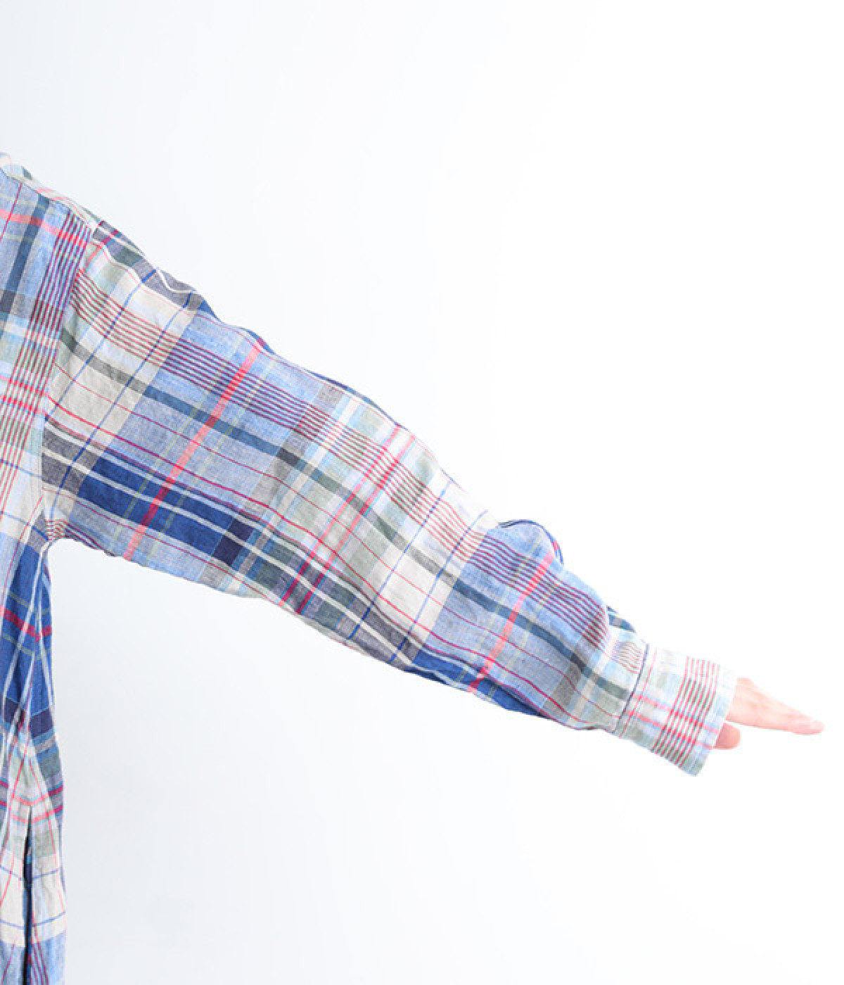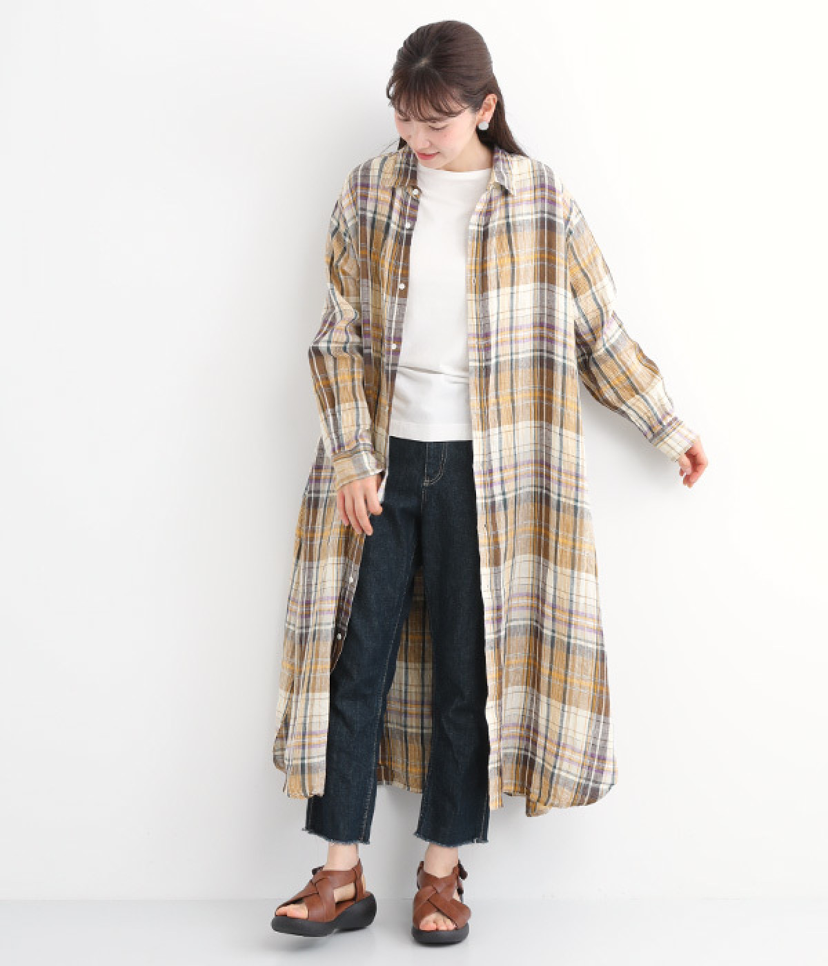 多色を使用して自然と目を惹くチェックを描いたシャツドレス。洗いざらしそのままのような、たっぷりのシワとリネンのナチュラルな手ざわりを味わえる一枚です。サイド裾の大胆なラウンドカットは、重ねたボトムをしっかりとのぞかせて開放感たっぷり。インナーを重ねるゆとりのあるビッグシルエットは、羽織りとしての着用にも向いています。一枚で着るだけでなく、ニットベストやトレーナーと合わせればシーズンをまたいでのスタイリングも可能です。