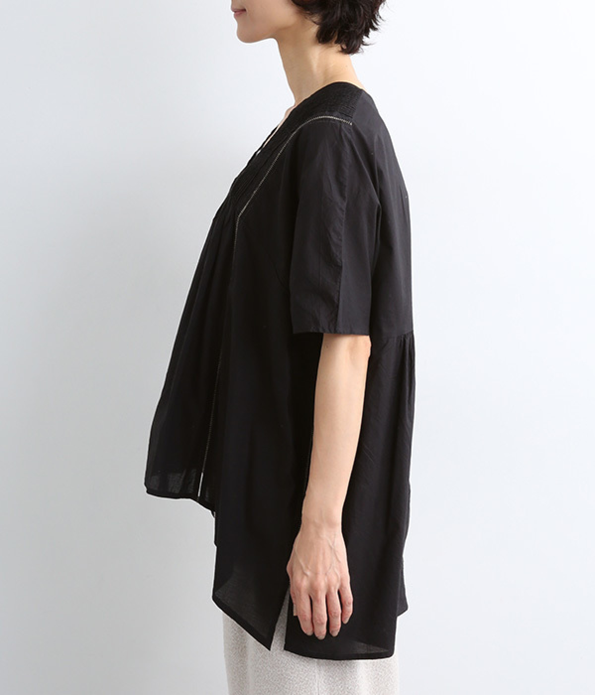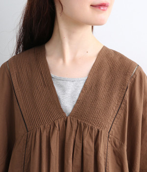 ピンタックやはしごレース、切り替えギャザーがフェミニン