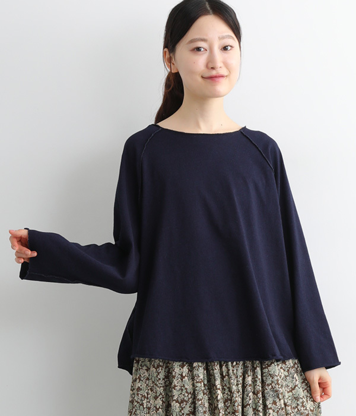 窮屈さを感じにくく、腕まわりが動かしやすいラグランスリーブ