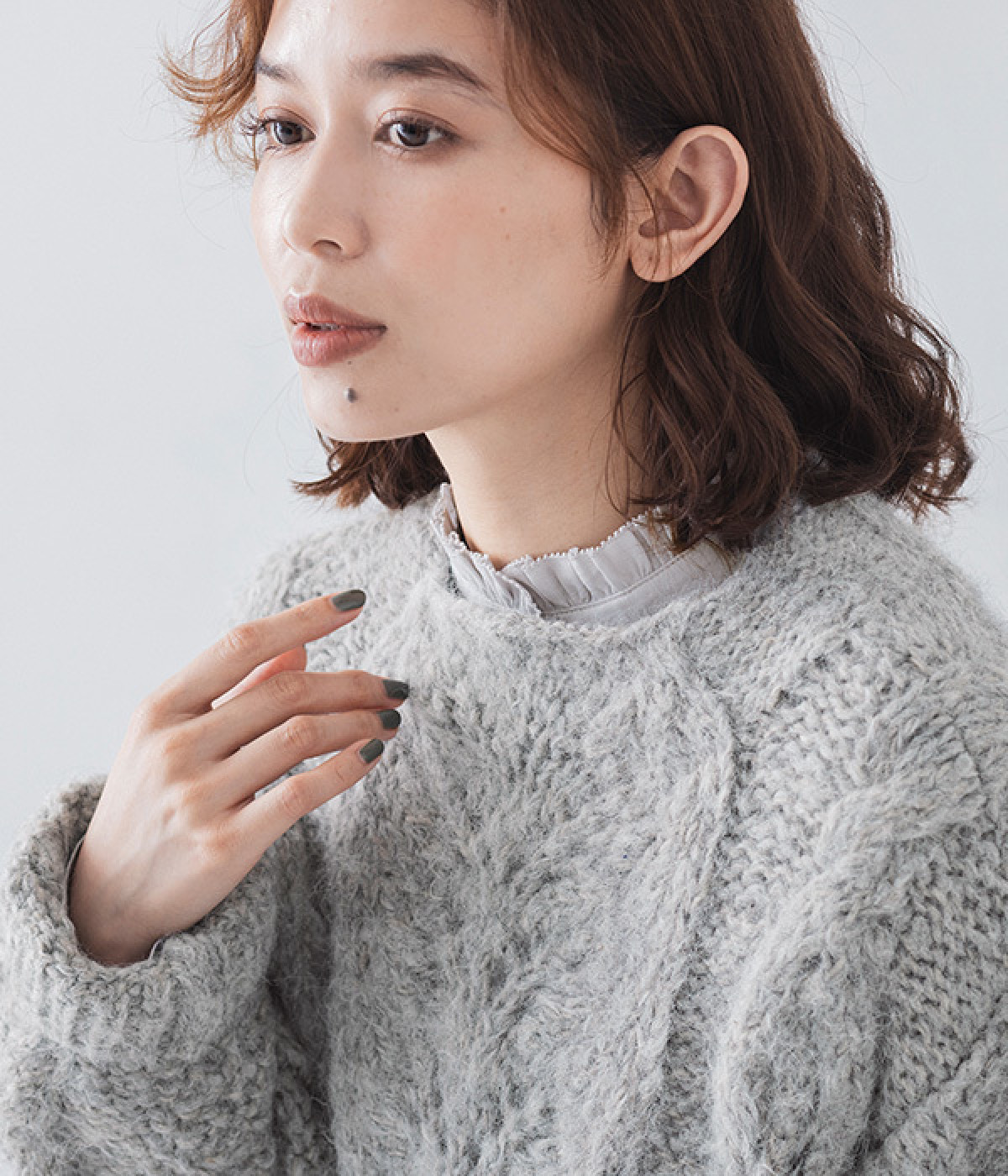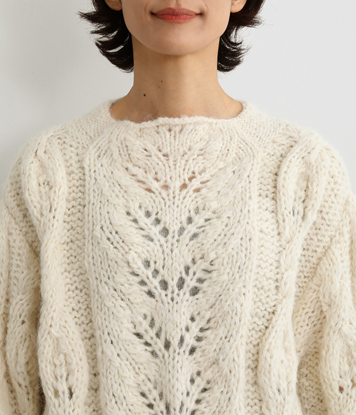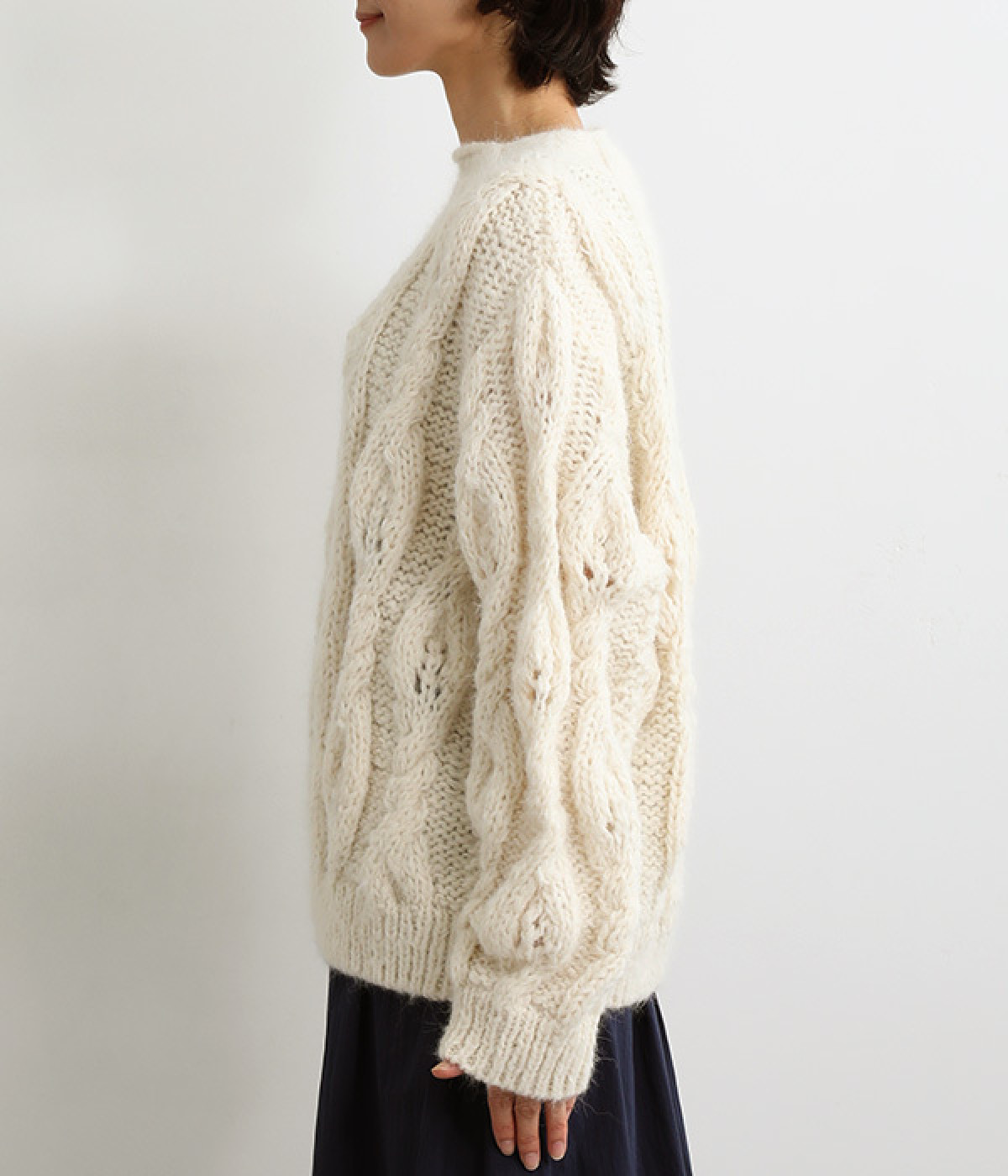 編みの豊かな表情がよく見える甘編みのケーブル