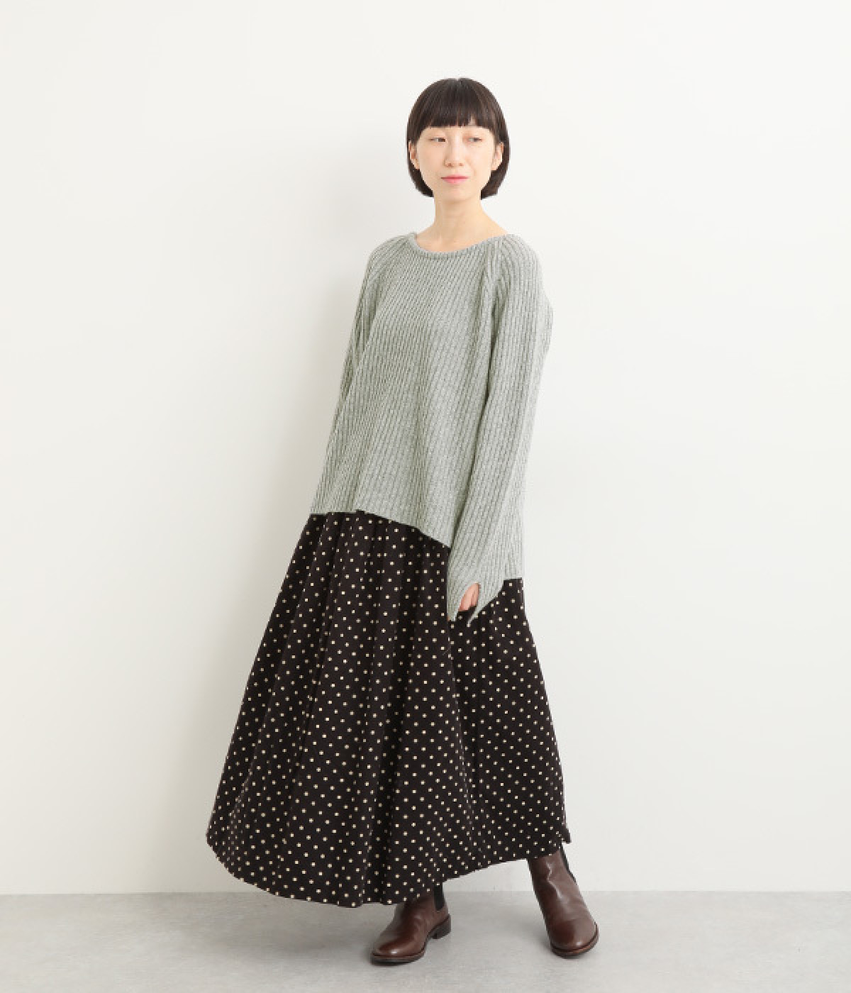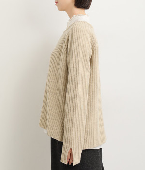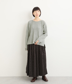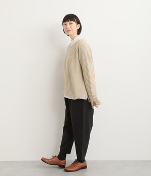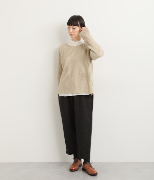 ネックラインがやや広めにあいているので、インナーとの重ね着も◎