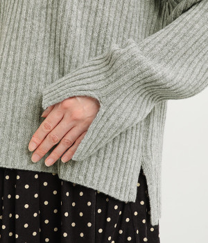 リブニット特有の伸縮性があり、ストレスフリーな着心地