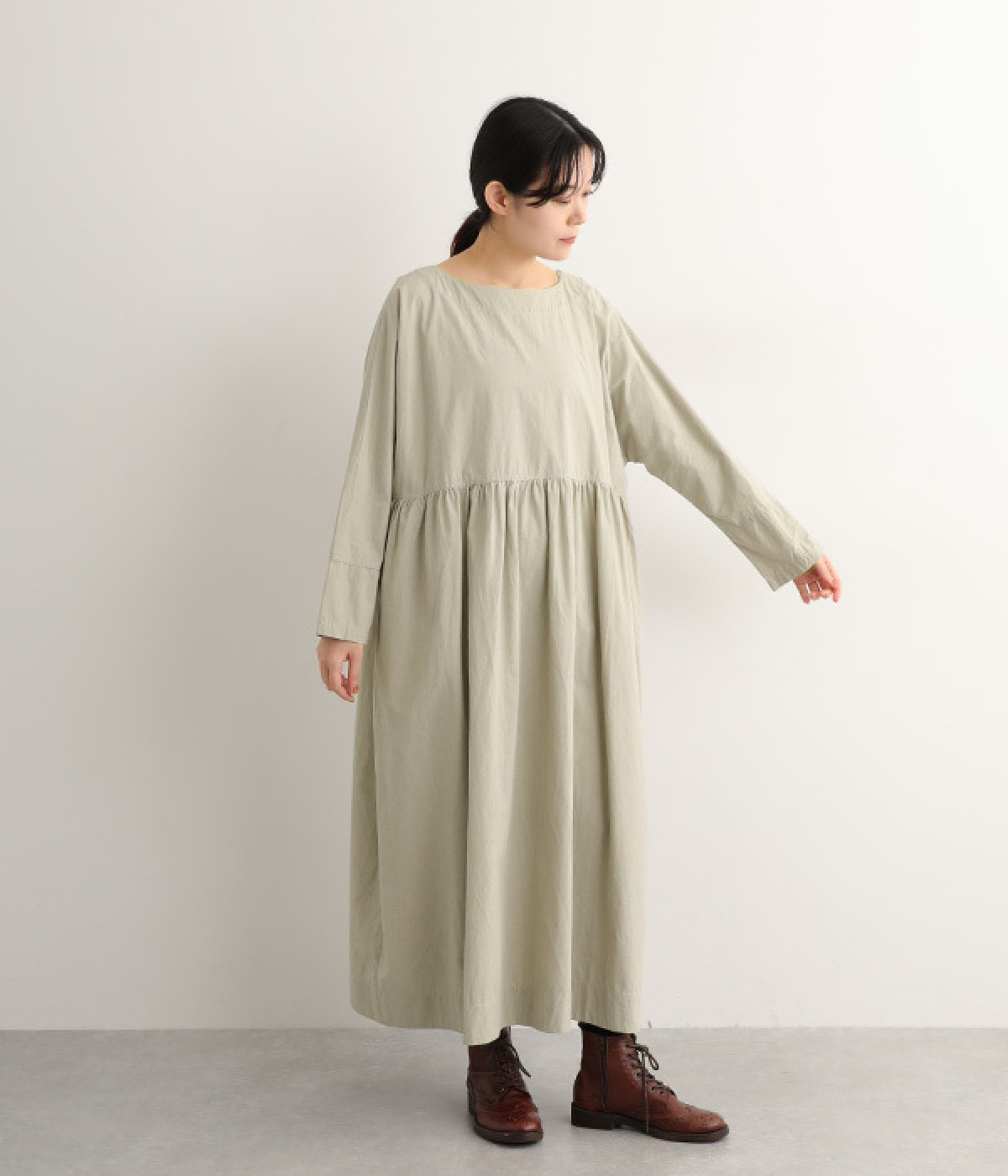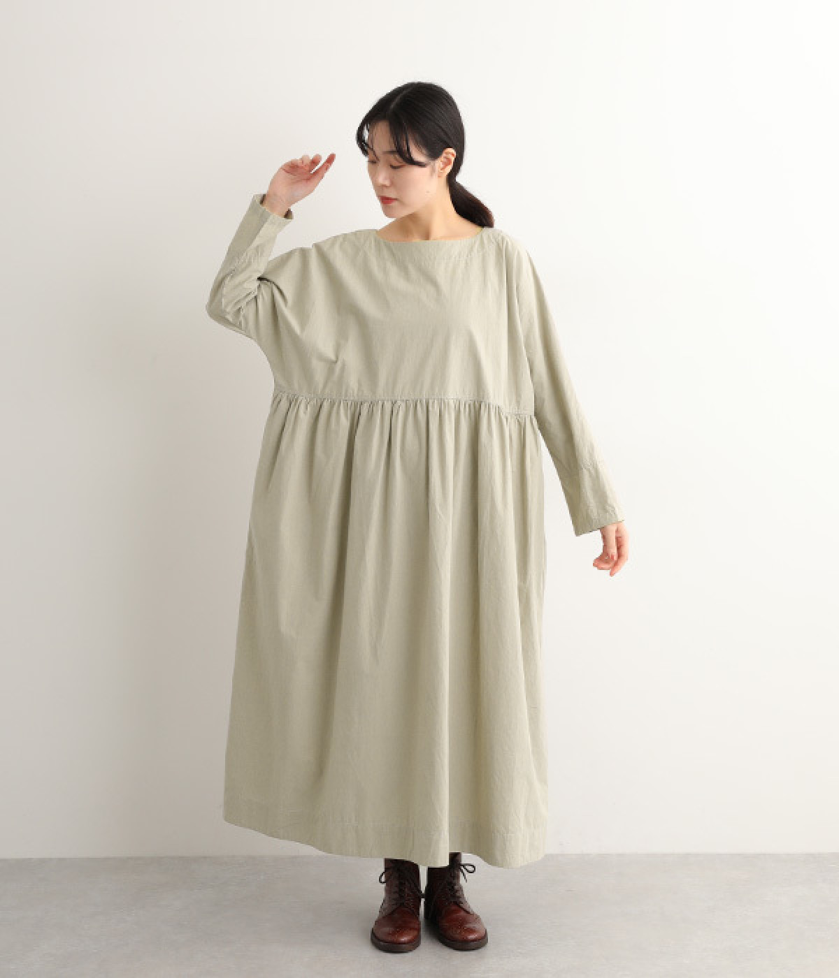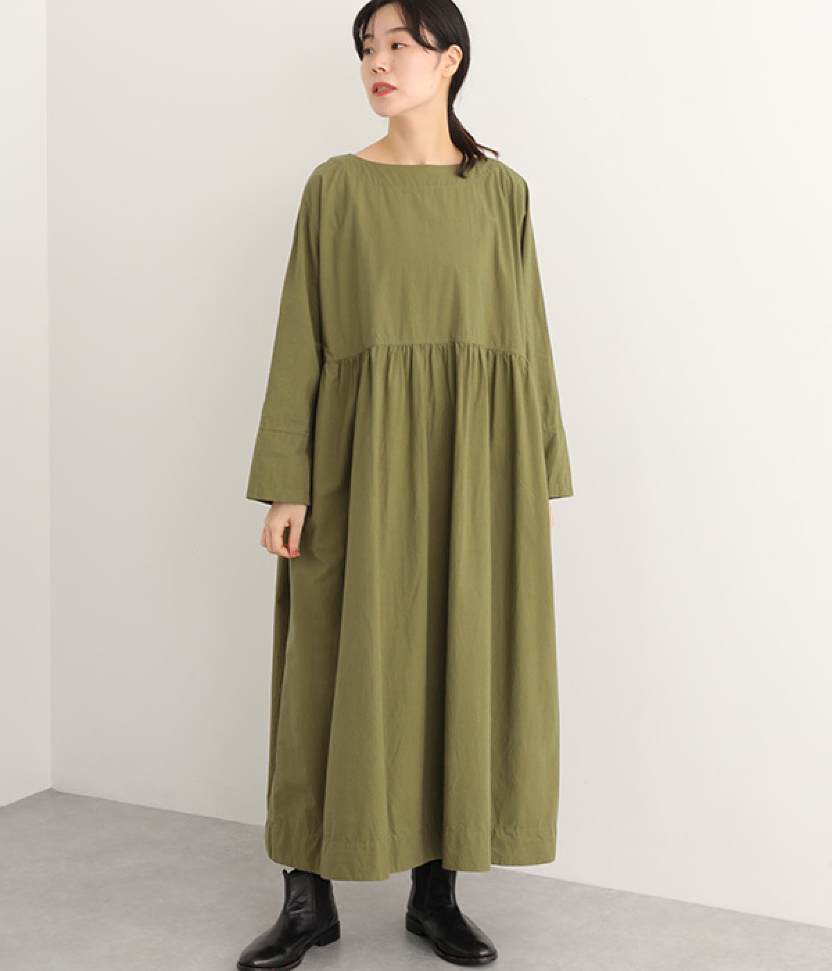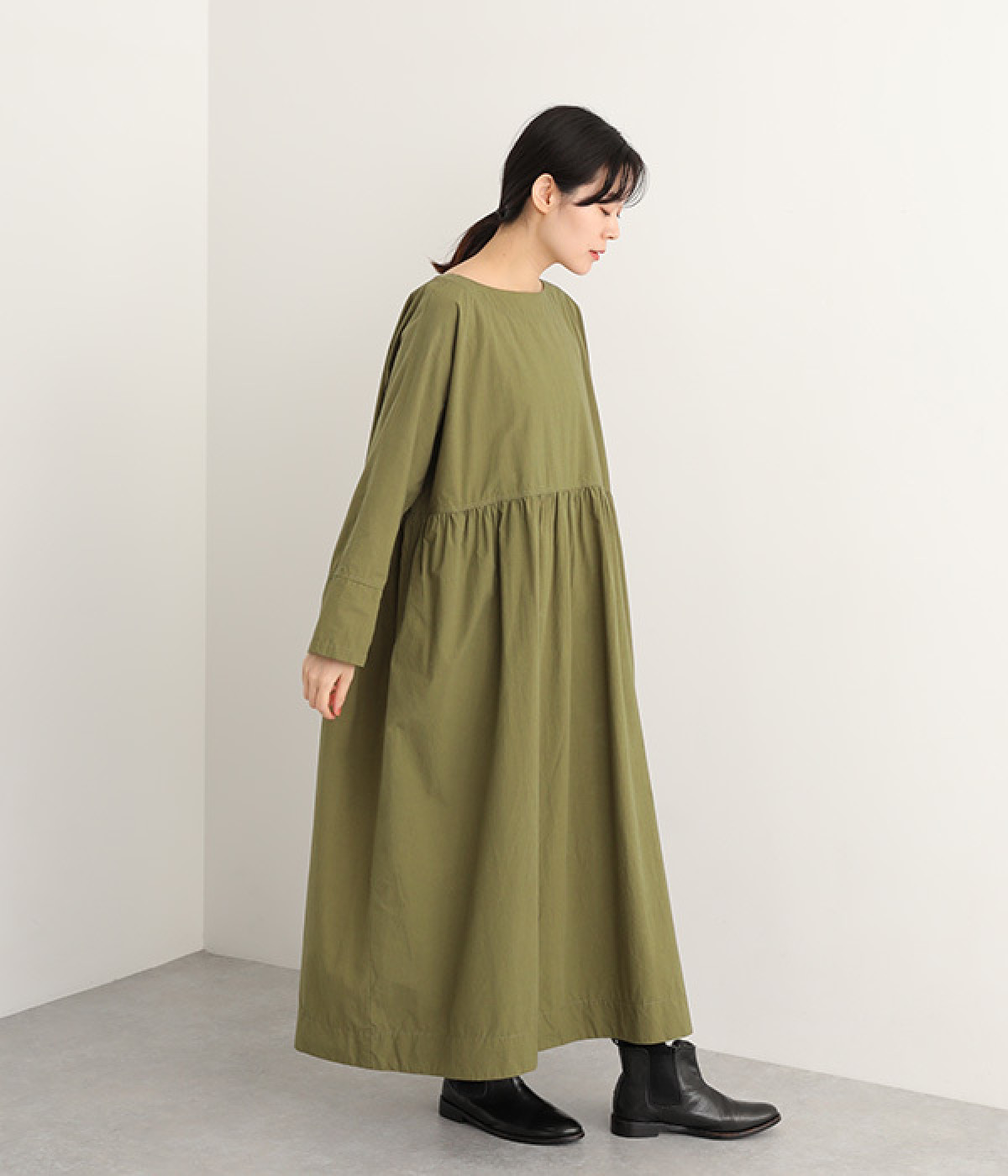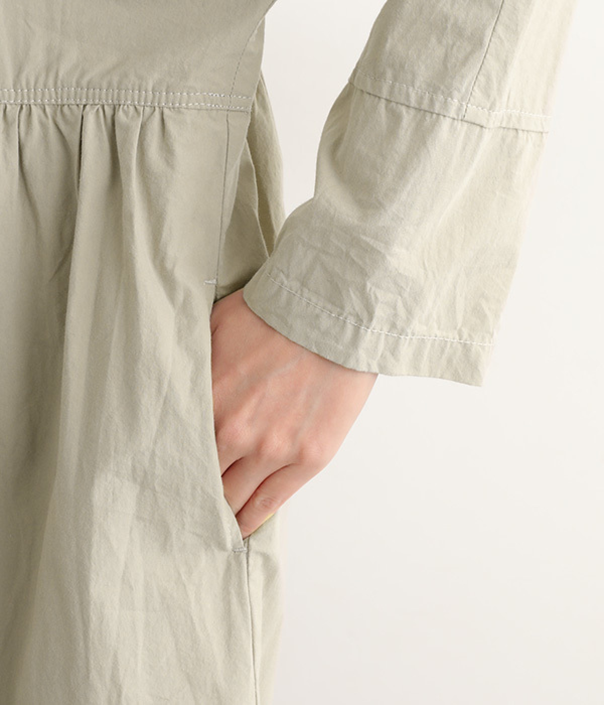 シルエットに膨らみを作るウエストギャザーの切り替え