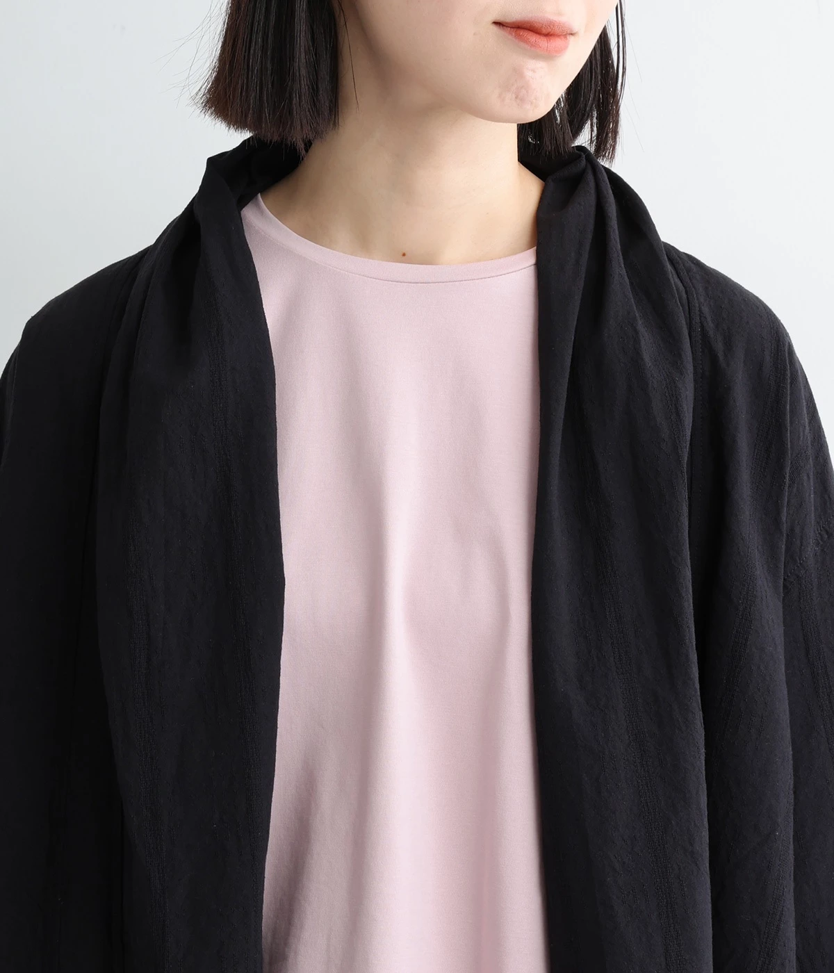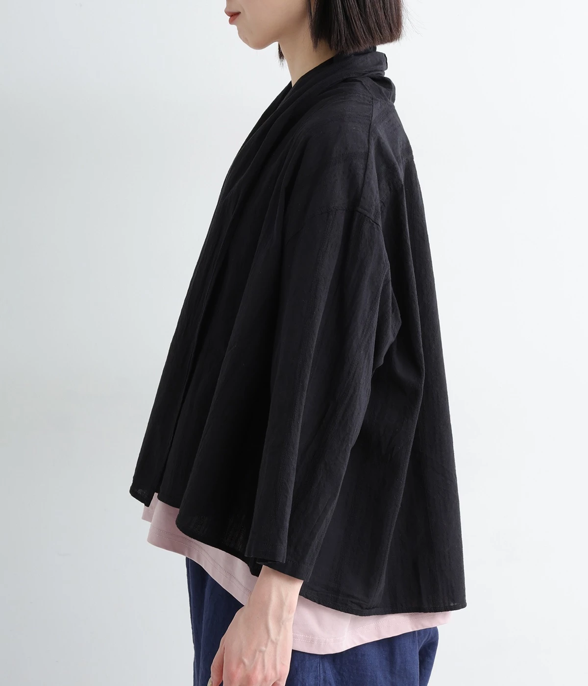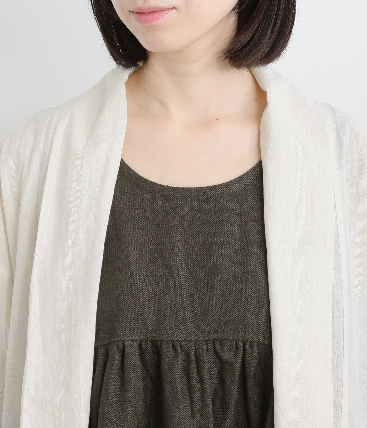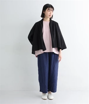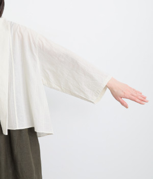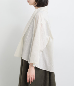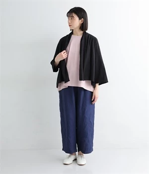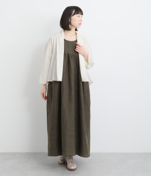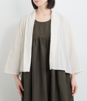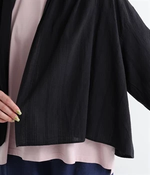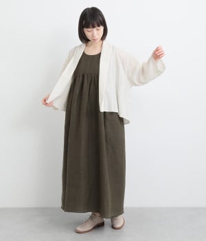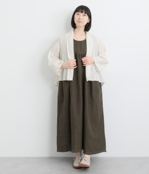 シンプルながらこなれ感あるニュアンスを与えてくれる、ローブタイプの羽織りです。ゆったりとしたつくりで、ワンピースなどボリュームのあるアイテム合わせもスムーズ。汗ばむ季節の冷房対策としても重宝します。
