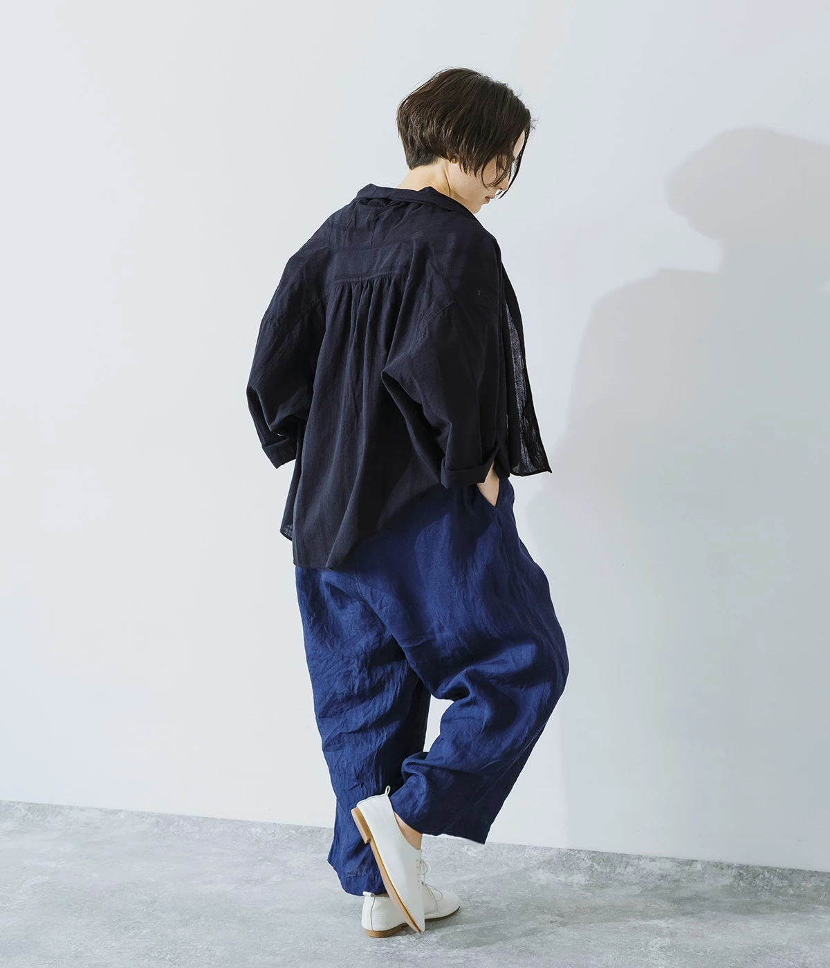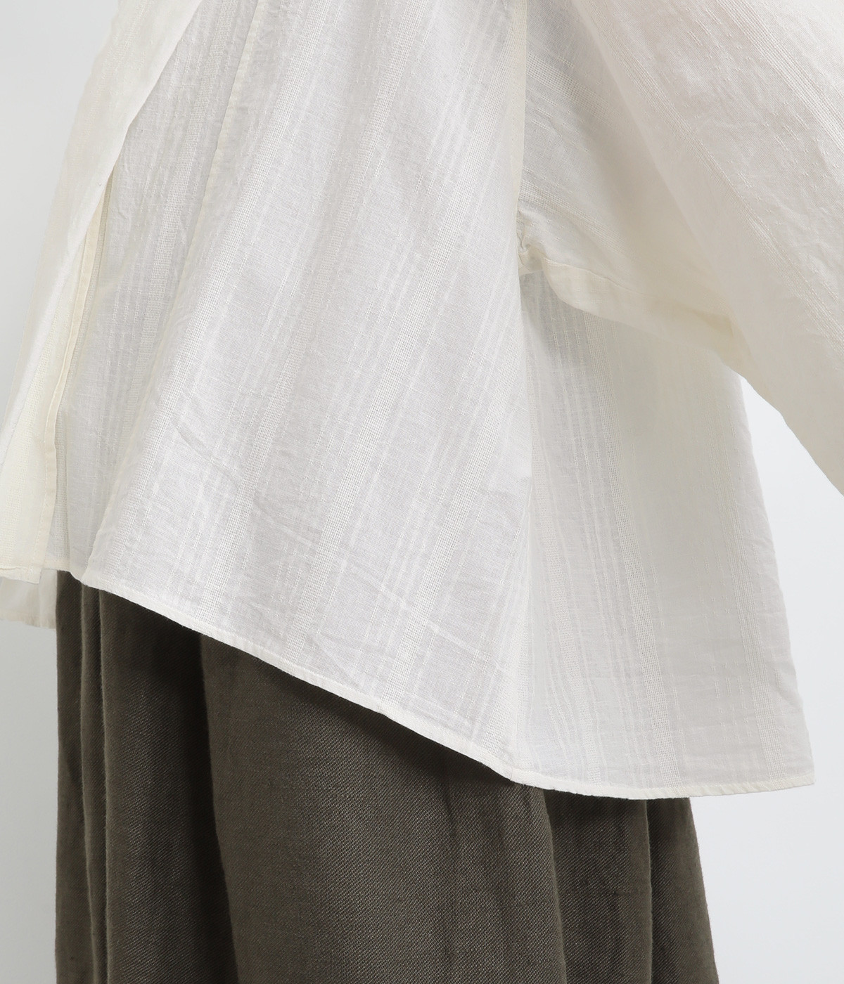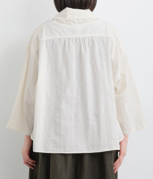 コットンにリネンをすこしだけブレンドさせてナチュラルな風合いを際立たせました。ドビーストライプ柄がナチュラルスタイルにほんのり表情をもたらしてくれます。