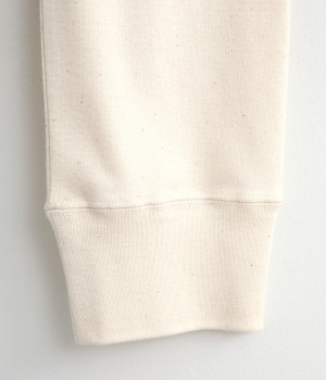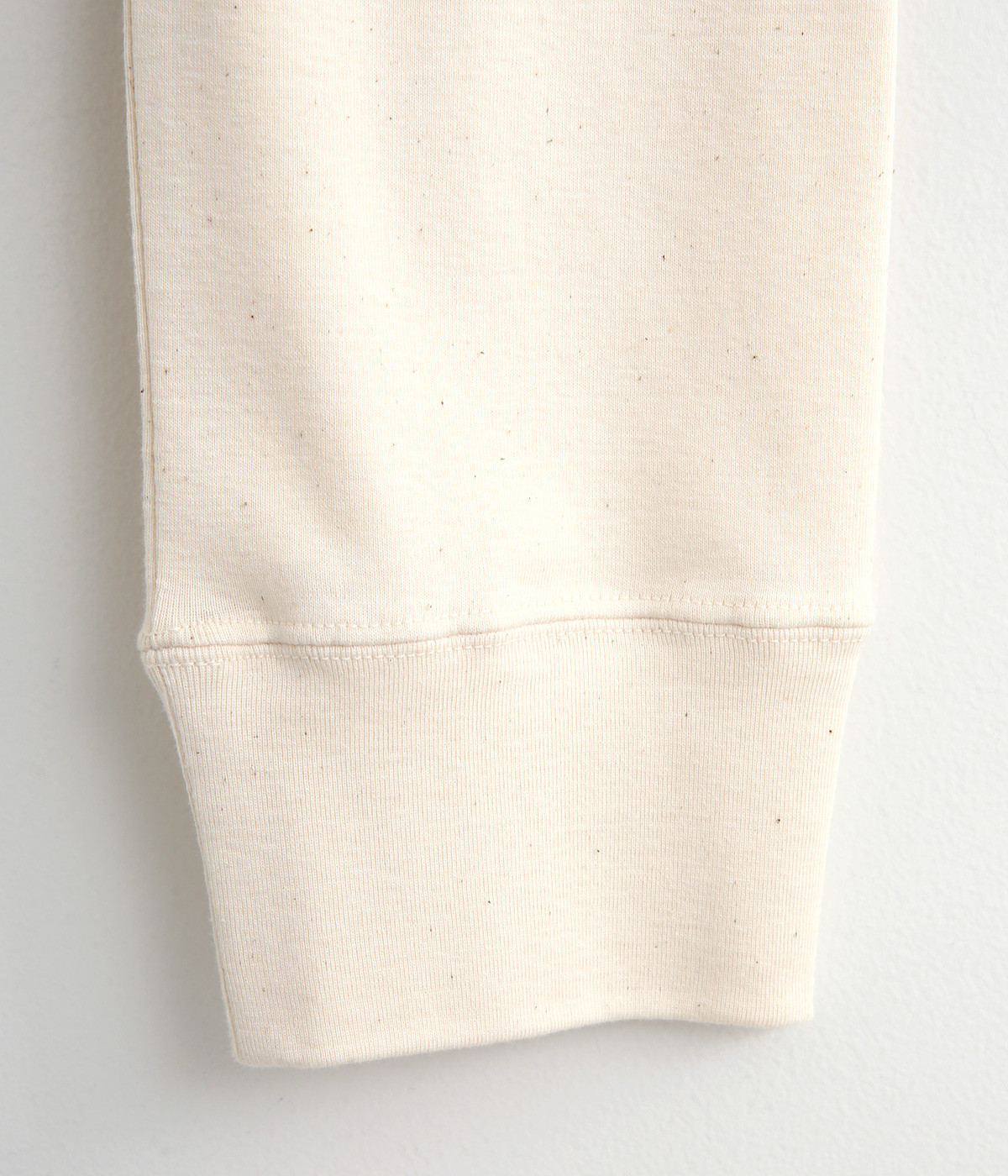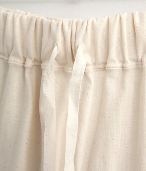 やわらかな肌触りが気持ちいいコットン素材。粒々としたネップの表情が豊かで、無地ながらも味わいのある生地です。軽やかで伸縮にも優れた、ストレスフリーのはき心地。