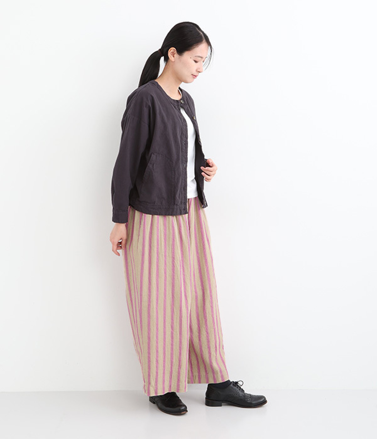 さらっとドライタッチで軽やかなコットン×リネン生地を使用。ふっくらとしたハリと、洗いざらしたような自然なシワが風合い豊かな素材です。