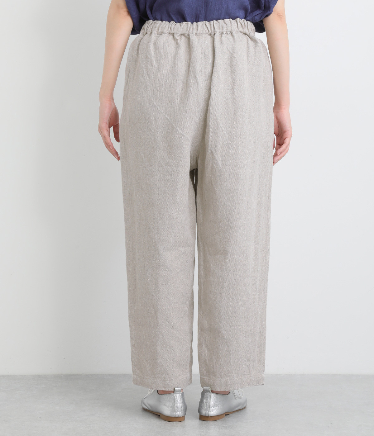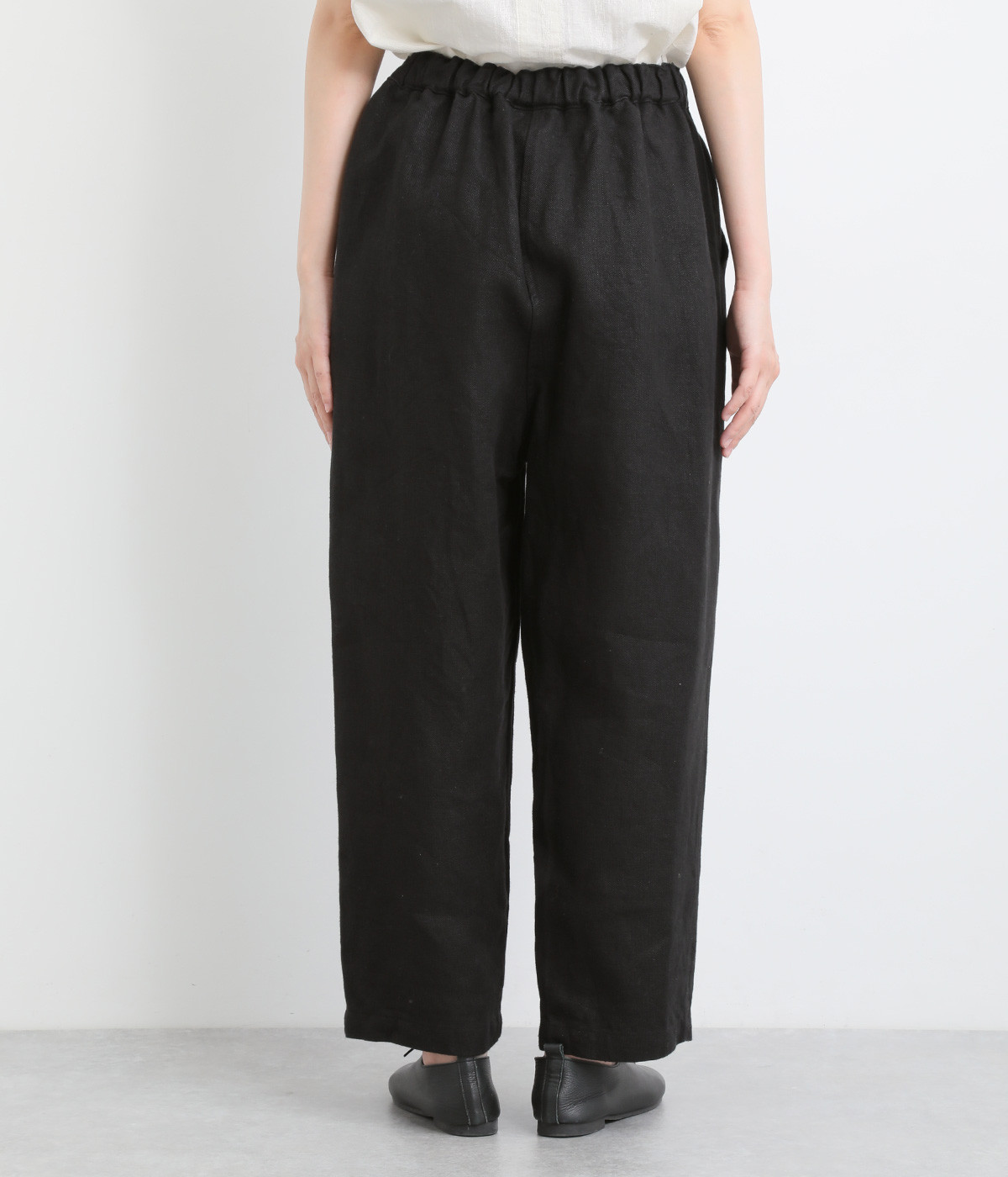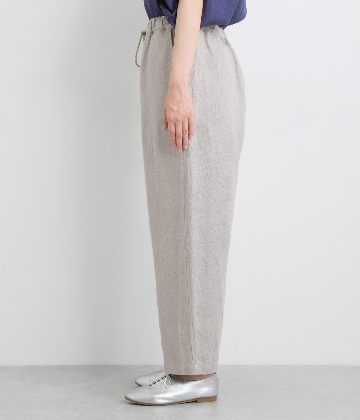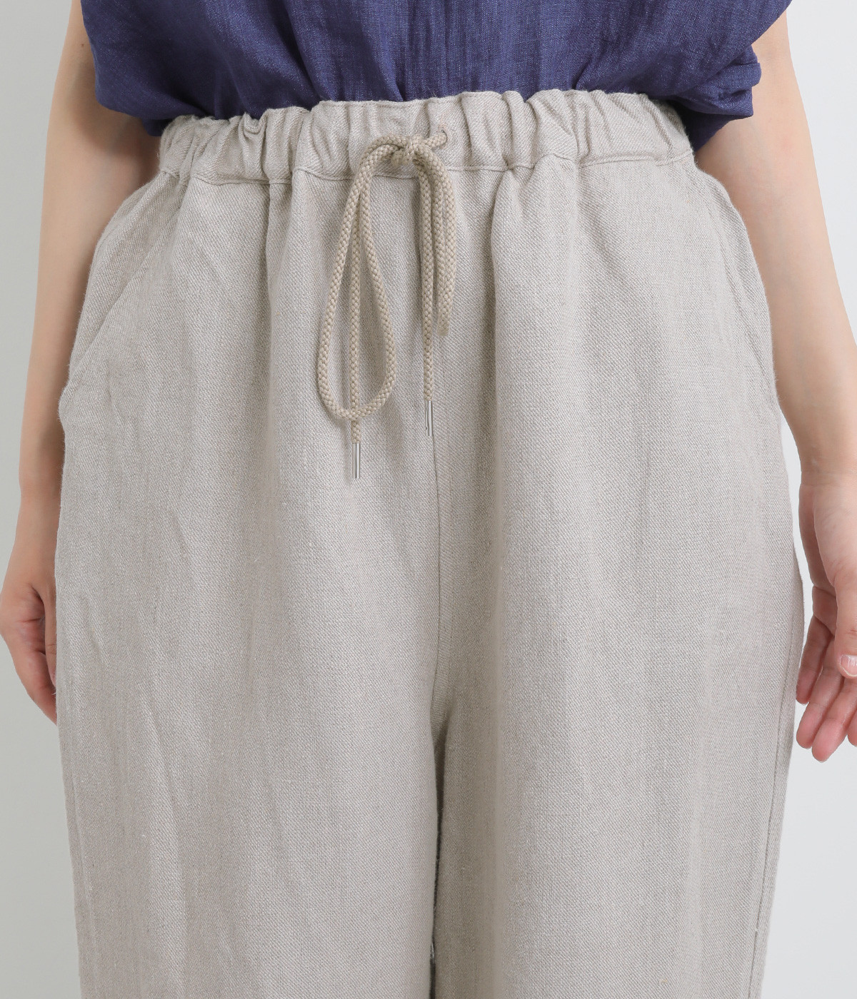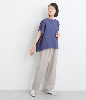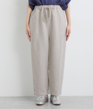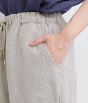しっかりとした厚手のツイル生地を採用しています。リネン特有のナチュラルな風合いも豊かで、はくほどにやわらかくなじんでいくエイジングが楽しみになる仕上がりです。