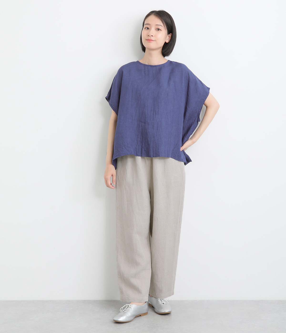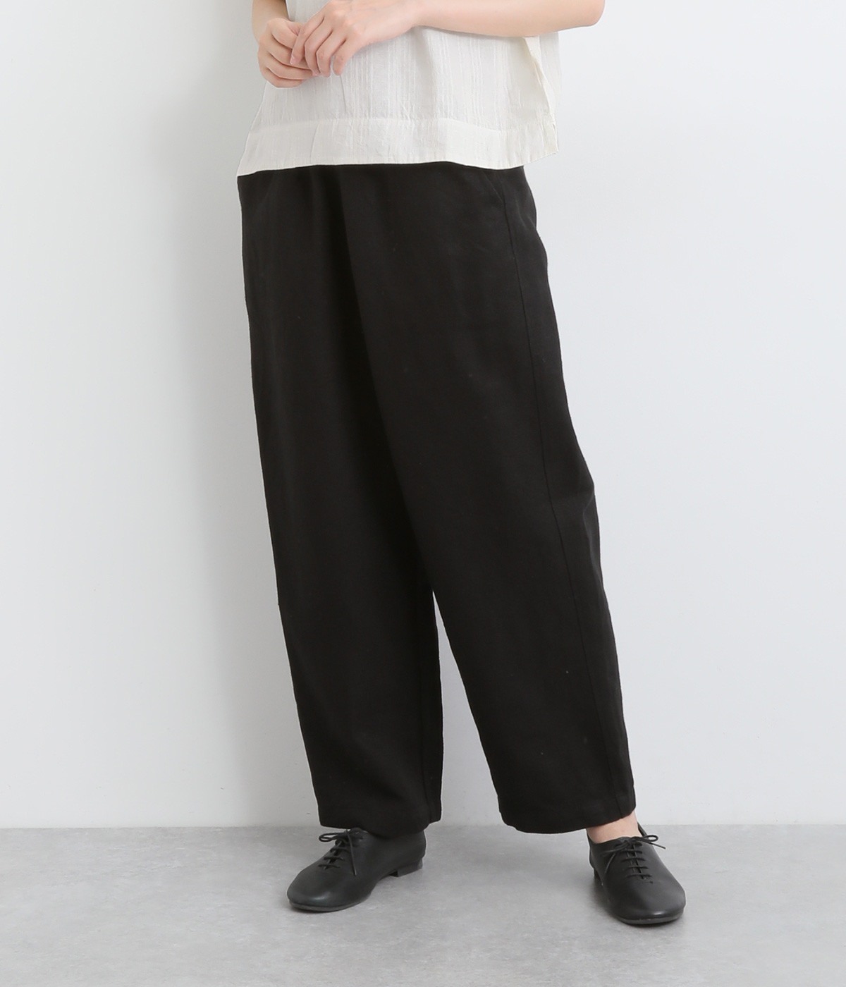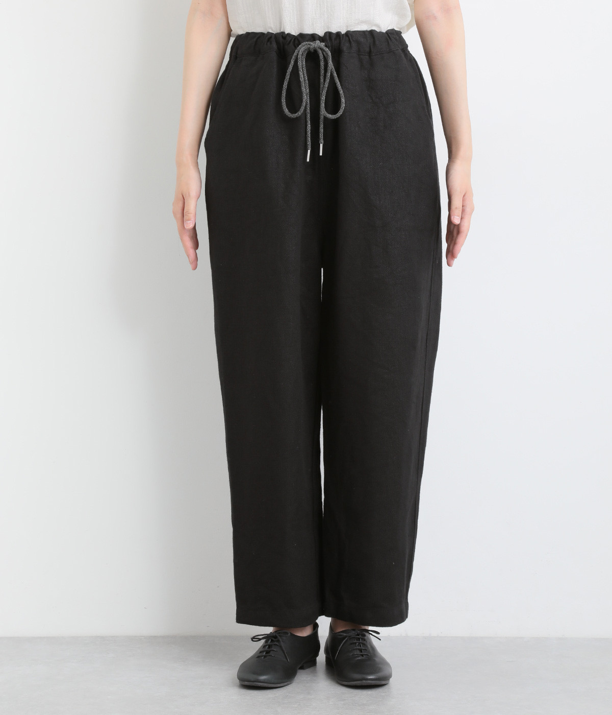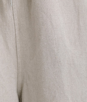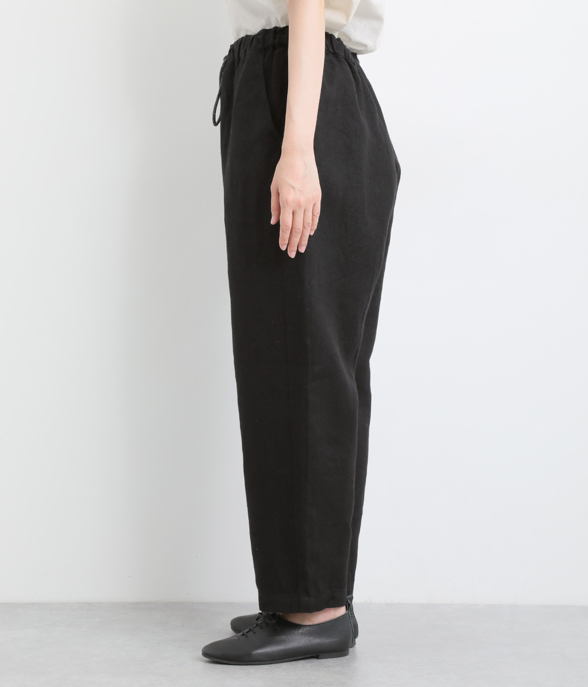 しっかりとした厚手のツイル生地を採用しています。リネン特有のナチュラルな風合いも豊かで、はくほどにやわらかくなじんでいくエイジングが楽しみになる仕上がりです。