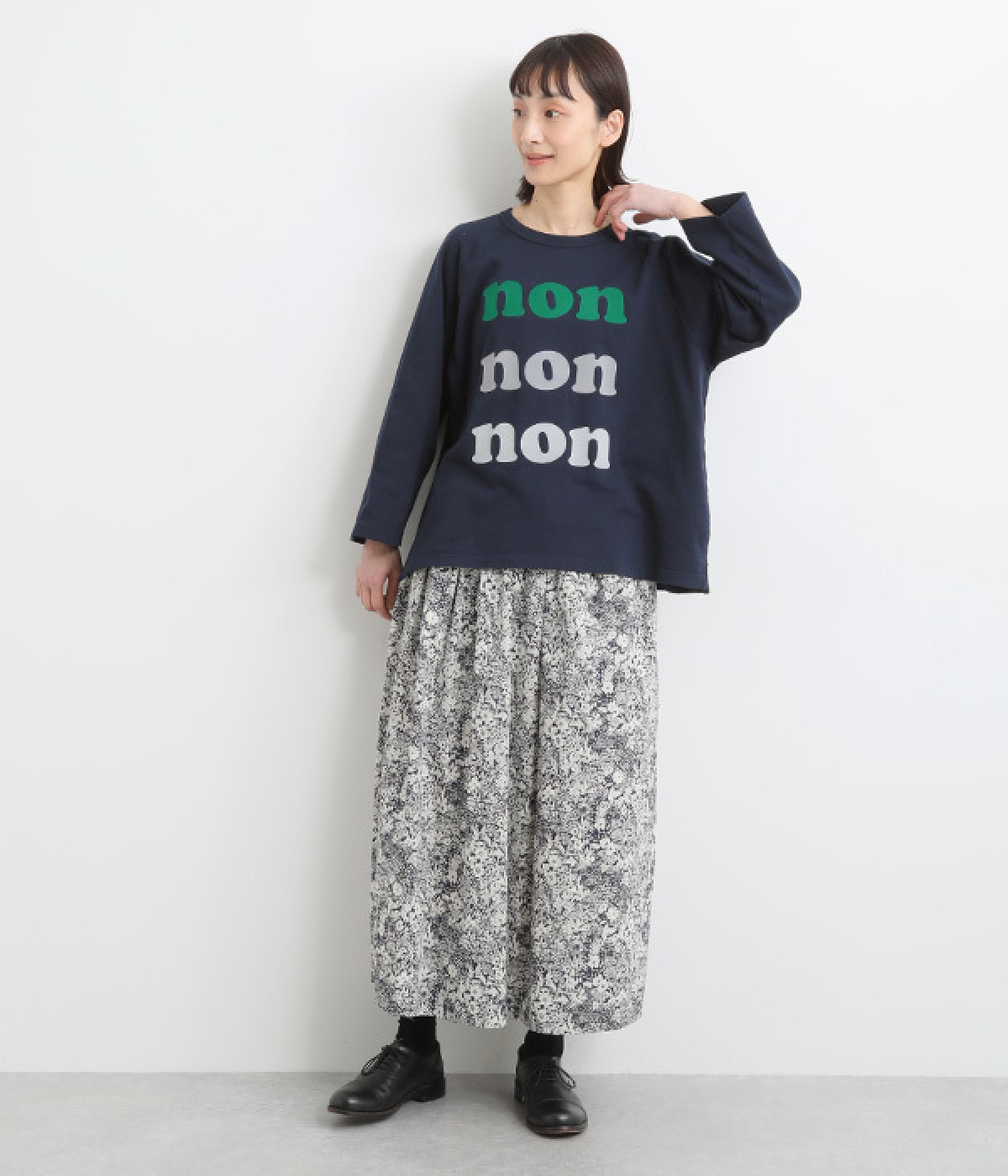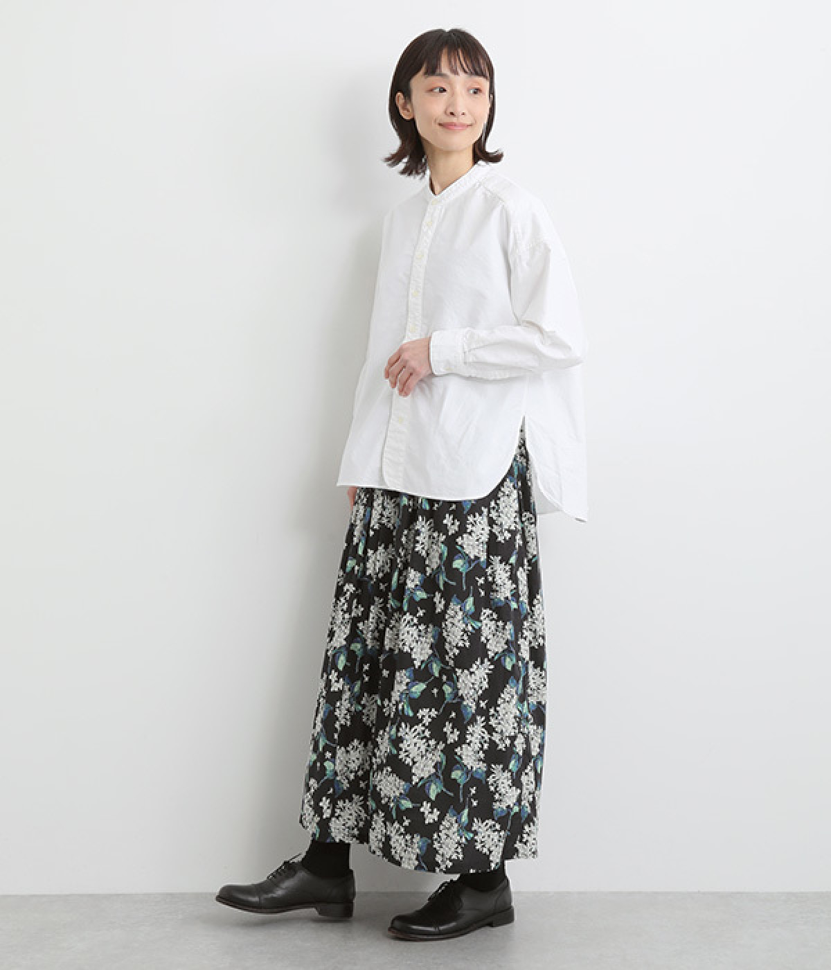 ほどよくハリのある、さらりとした肌ざわりのコットン生地。透け感が気になりにくく、オールシーズン着まわせるのが魅力です。