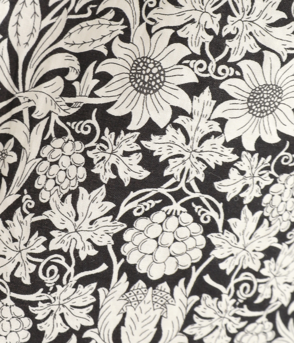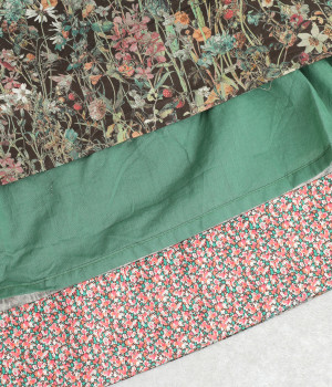 なめらかな肌触りにきれいな表面感が品のいいコットン生地に、華やかなリバティプリントをのせました。薄手で軽い綿生地を裏地につけています。