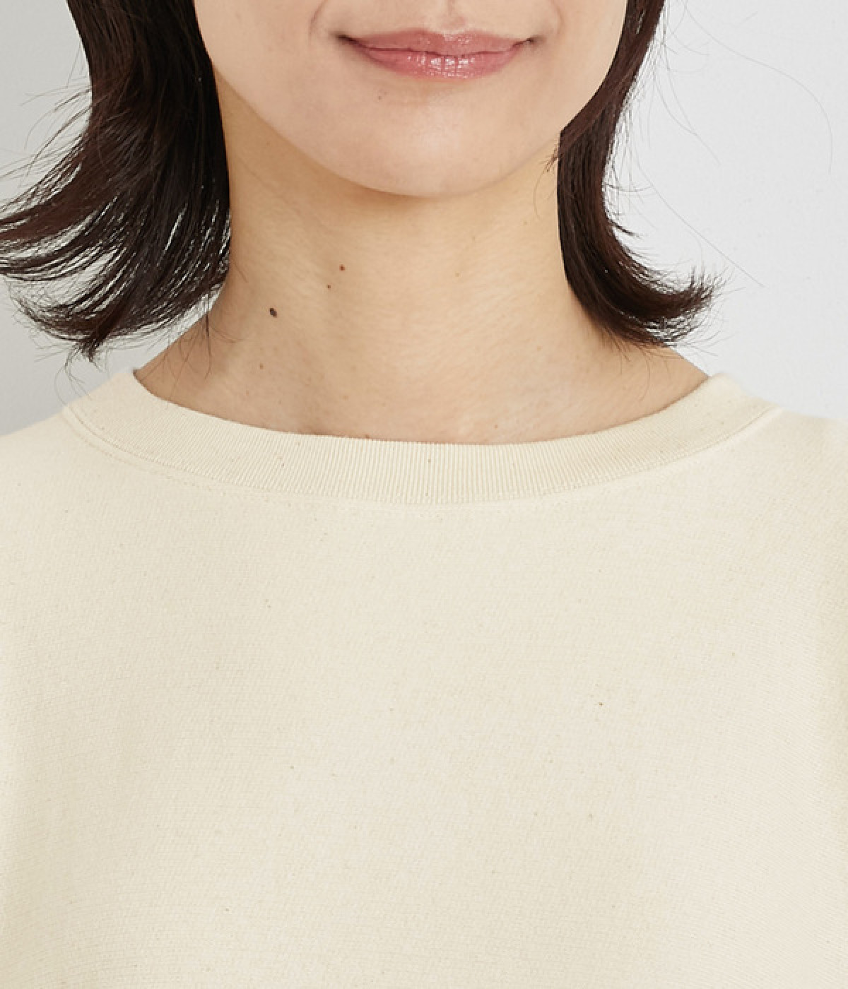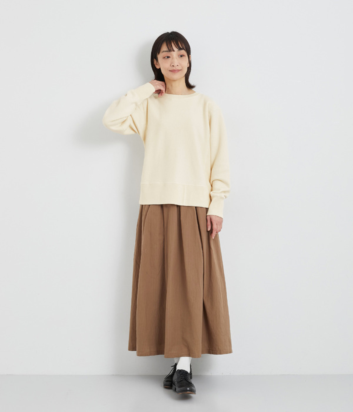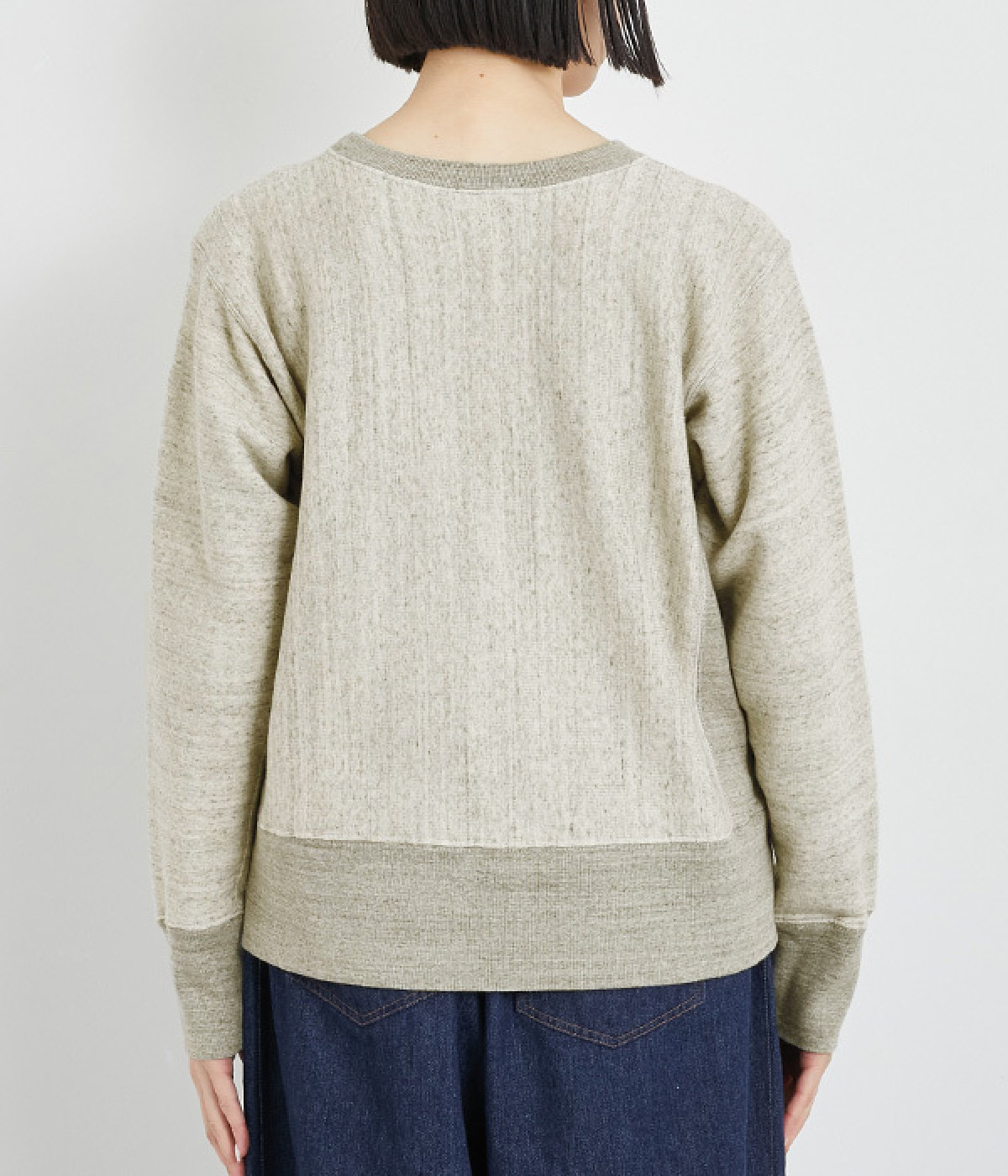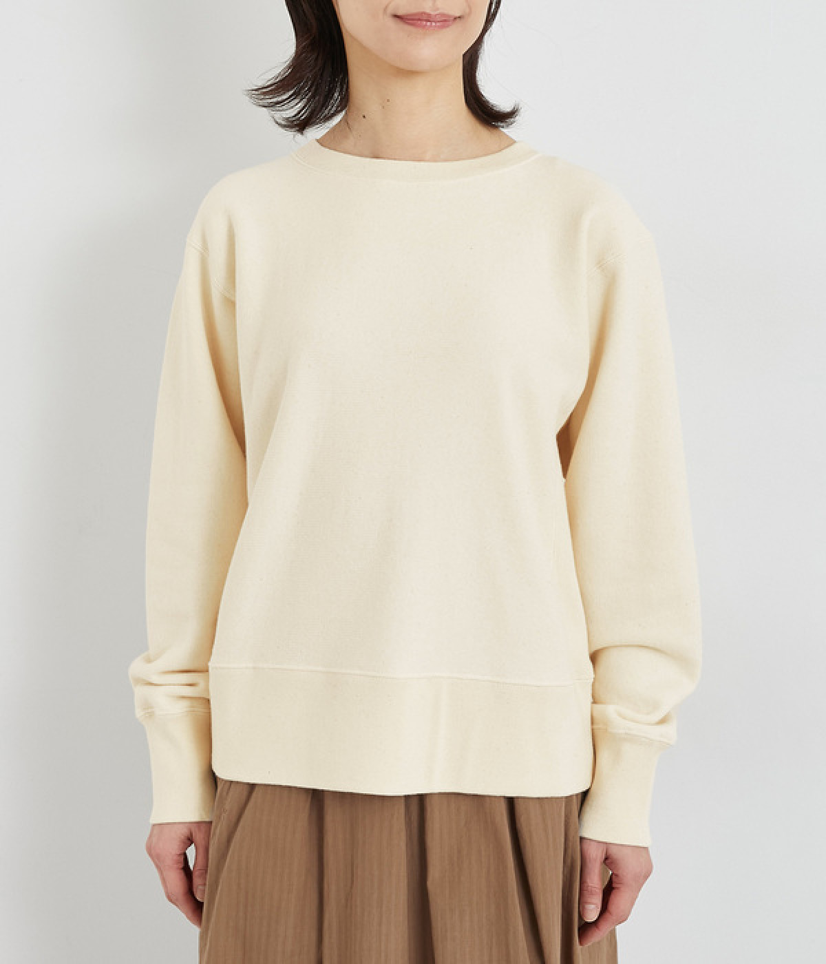 素材の良さを引き立てたシンプルなつくりに、太めのリブ切り替えがちょうどいいアクセントになっています。ラフだけど手抜きじゃないこなれ感が魅力で、大人のリラックススタイルに欠かせない一枚になりそう。