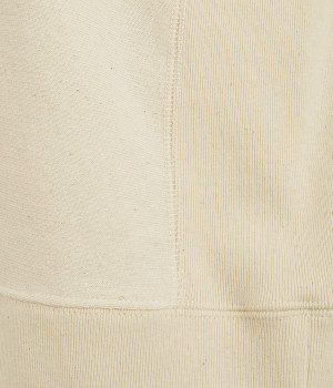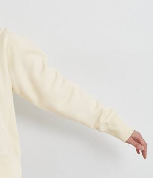 自然界の持つ本来の深い色みや心地よさ、やわらかさが楽しめるUNDYEDコットンを採用。安心感を与えてくれる肉感のある厚地です。天然原料による色の不均一さも愛着がわきます。