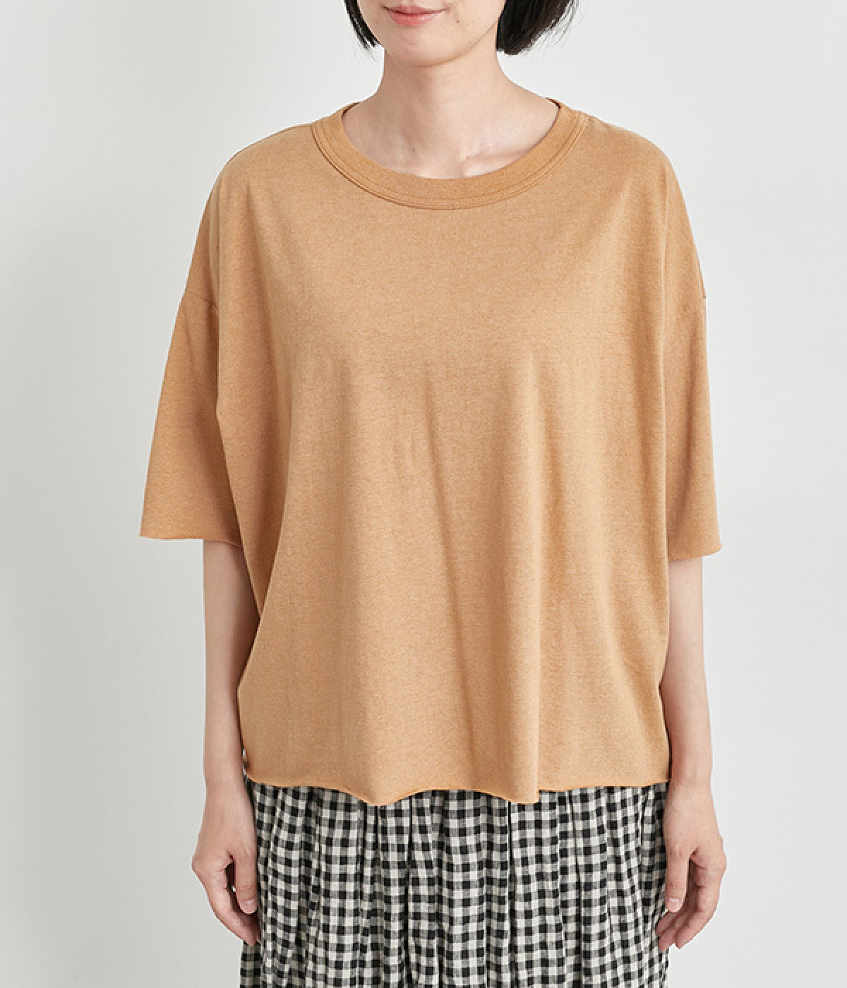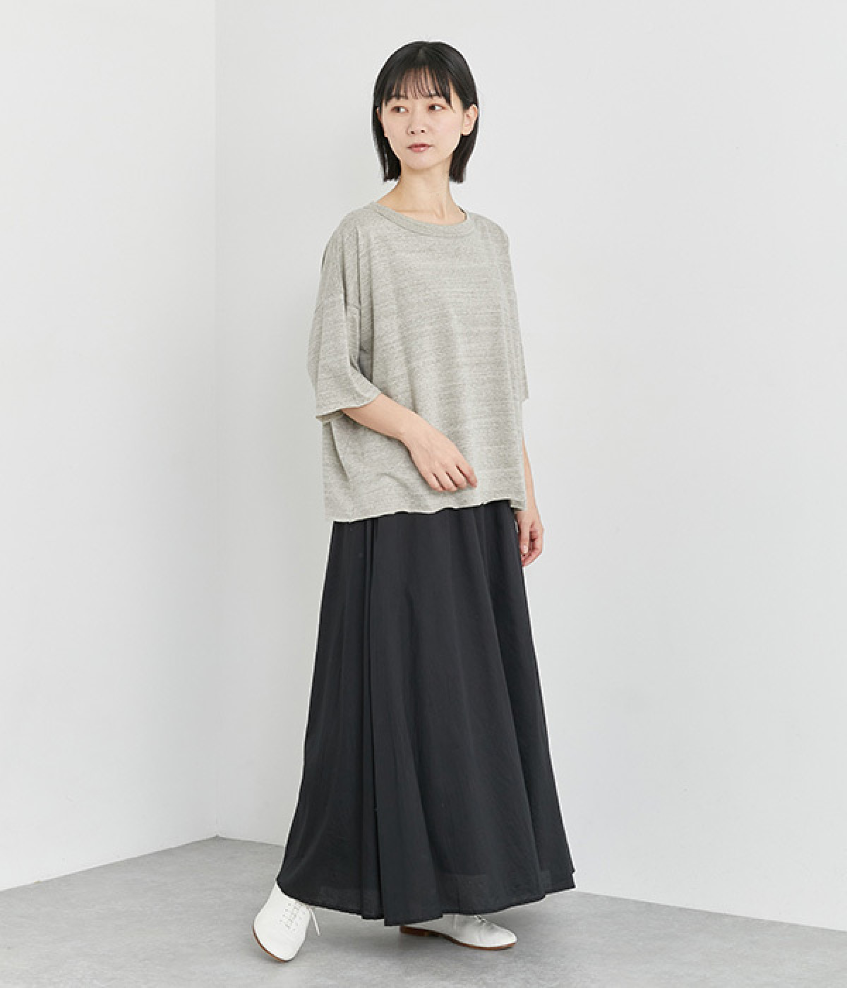 自然な風合いを活かしたUNDYEDのコットンを使用しています。薄手でやわらかくなめらかに落ちる質感で、ナチュラルな風合いと気負いのないこなれ感が魅力です。