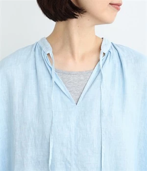 シャリ感のあるさらっとしたリネン素材をインディゴで染め上げました。年月とともに変化していく風合いや色合いも魅力の一つです。