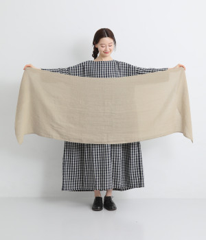 幅広いコーディネートに合わせられるシンプルな無地仕立て。大判サイズなのでサッとラフに巻くだけでボリュームたっぷりに。肩からかけるのもおすすめです。ブランドロゴをあしらったタグをつけ、さり気ないアクセントを取り入れました。