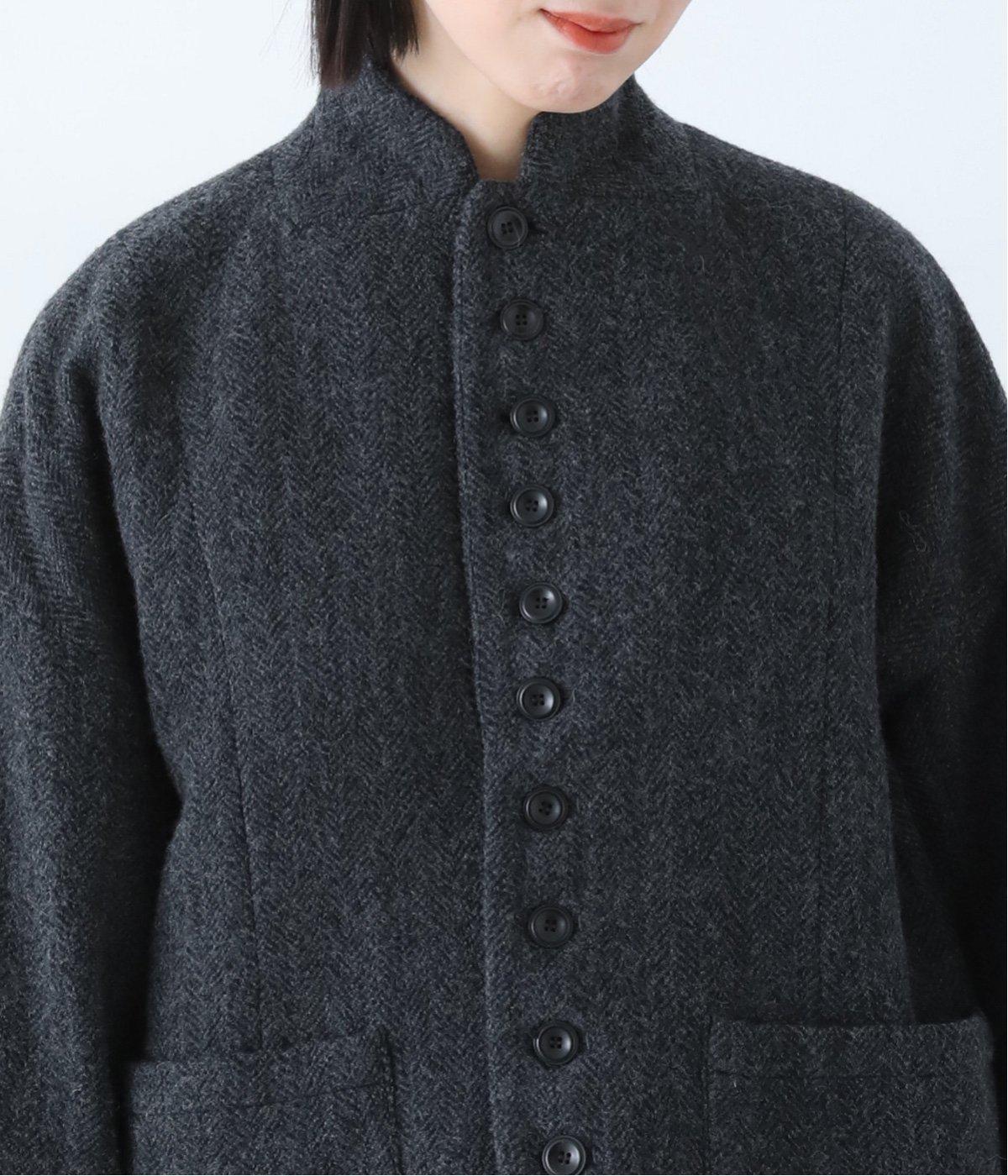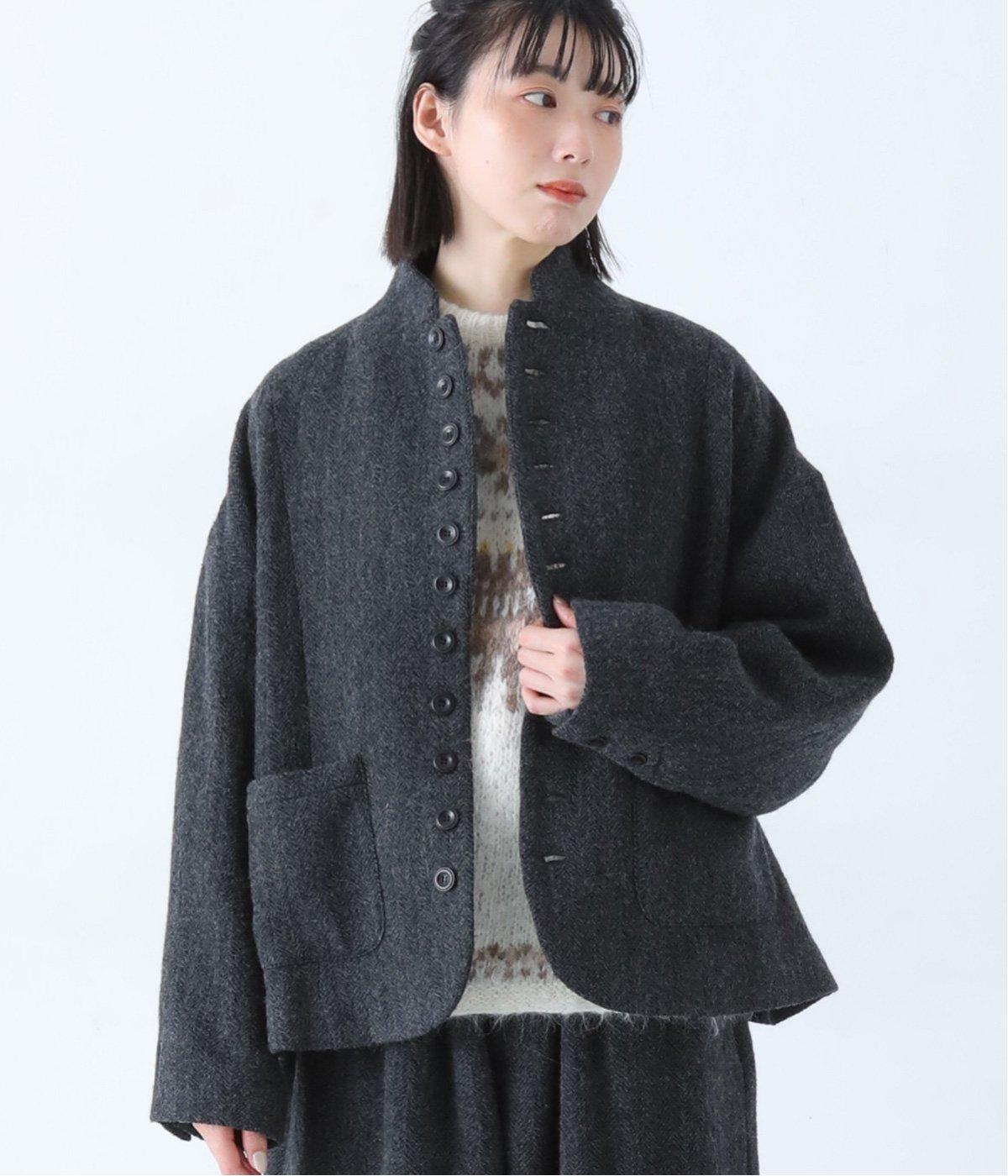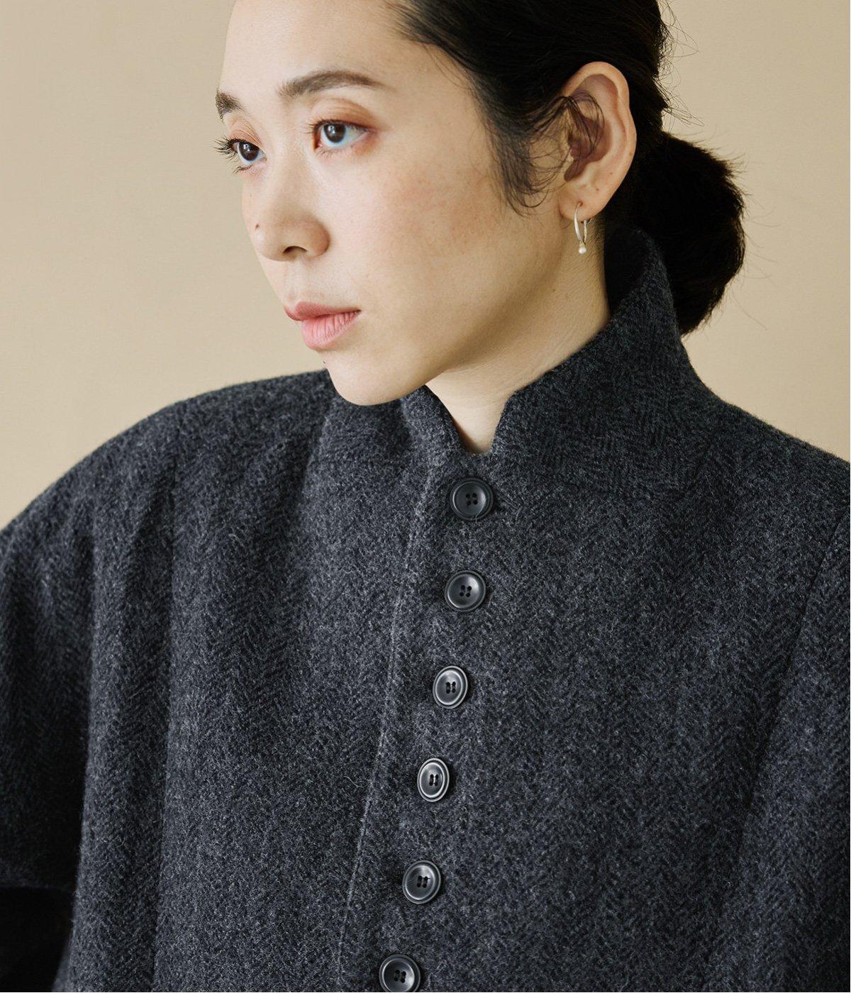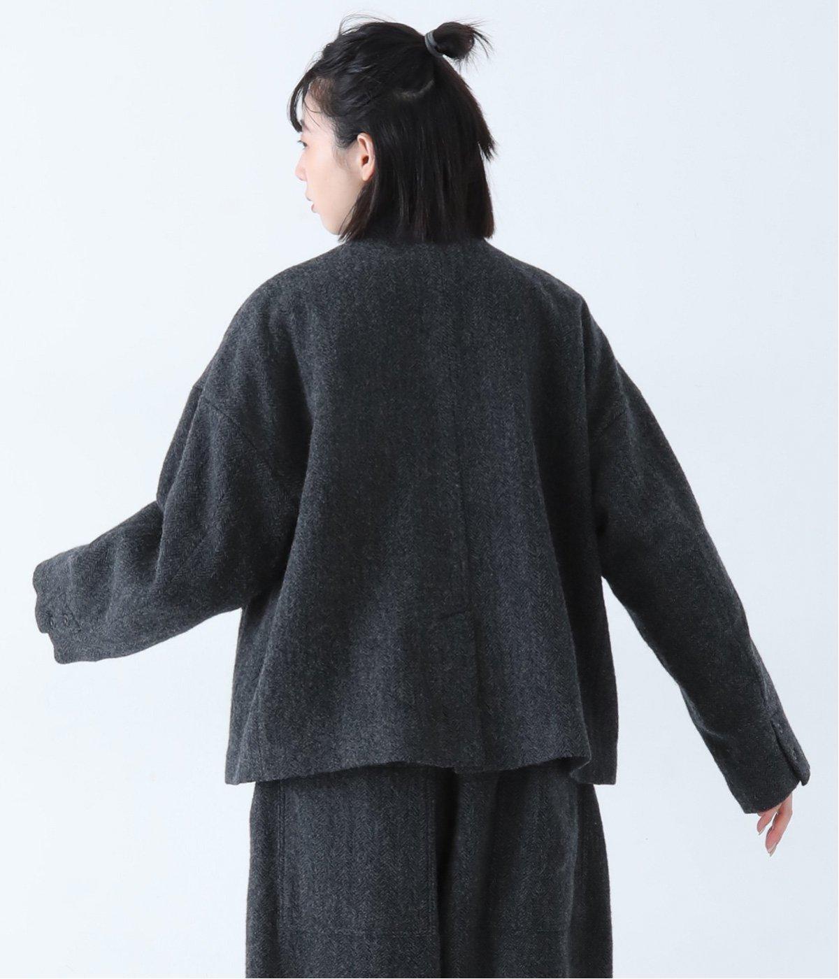 繊細なヘリンボーン柄が装いに奥行きを添えるウールジャケット。ほどよい立ち襟ときれいに並んだボタンが印象的で、シンプルながら存在感のある一着です。