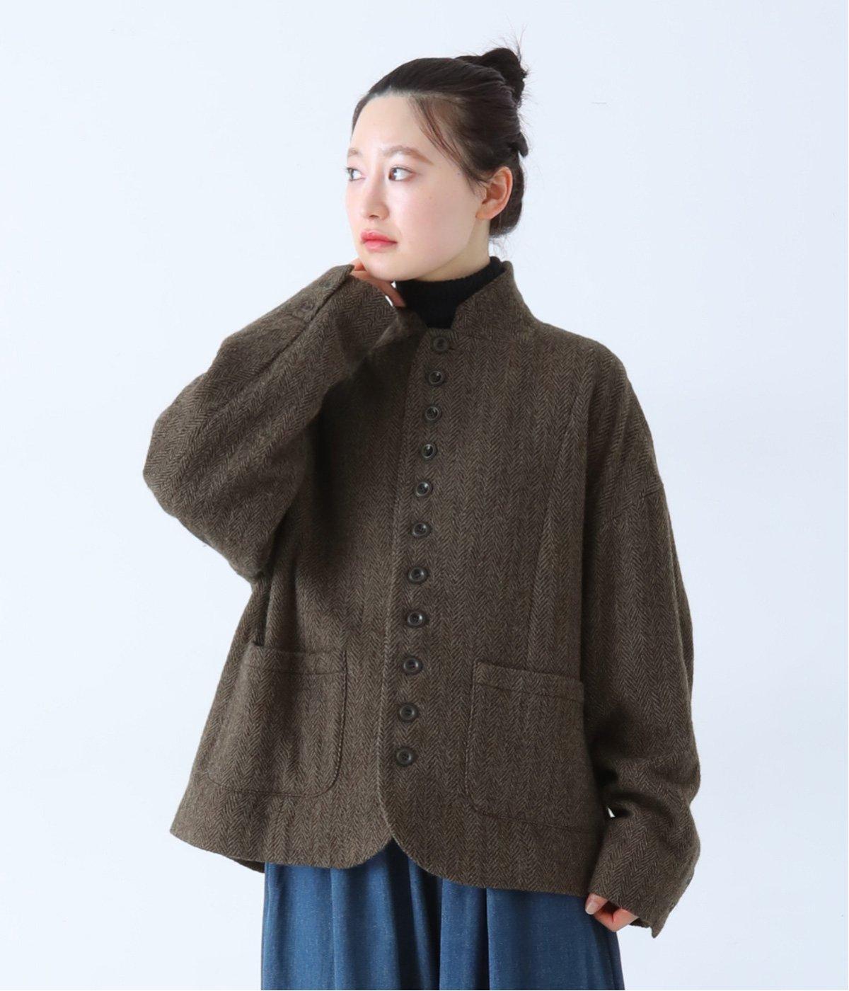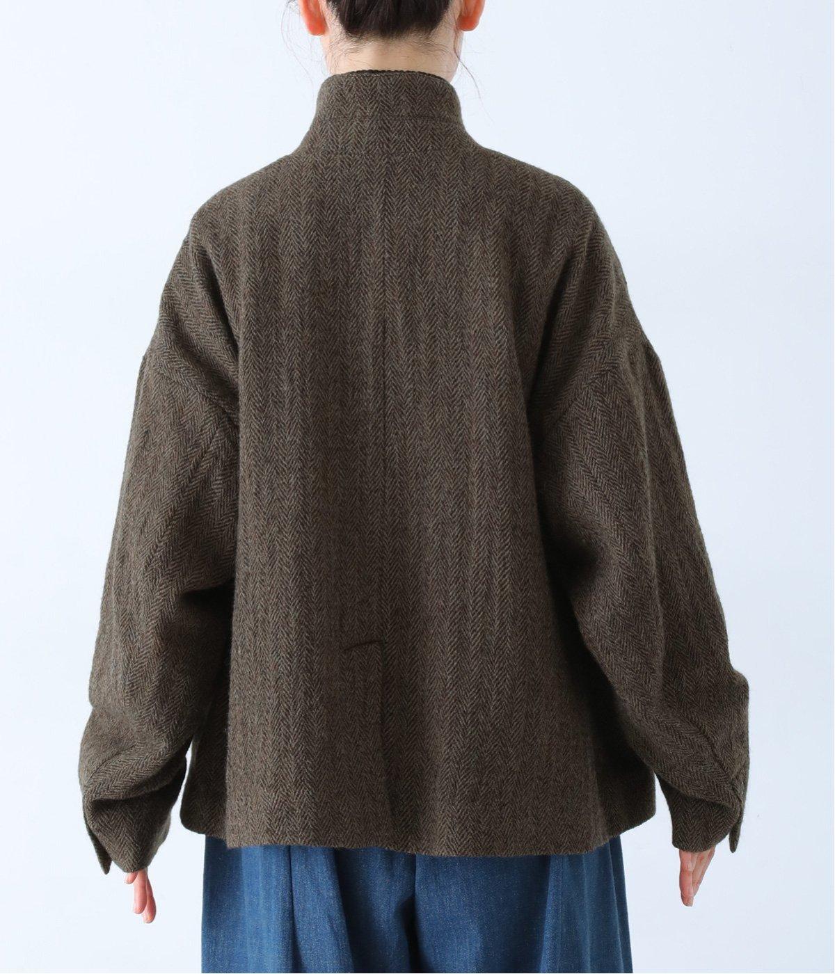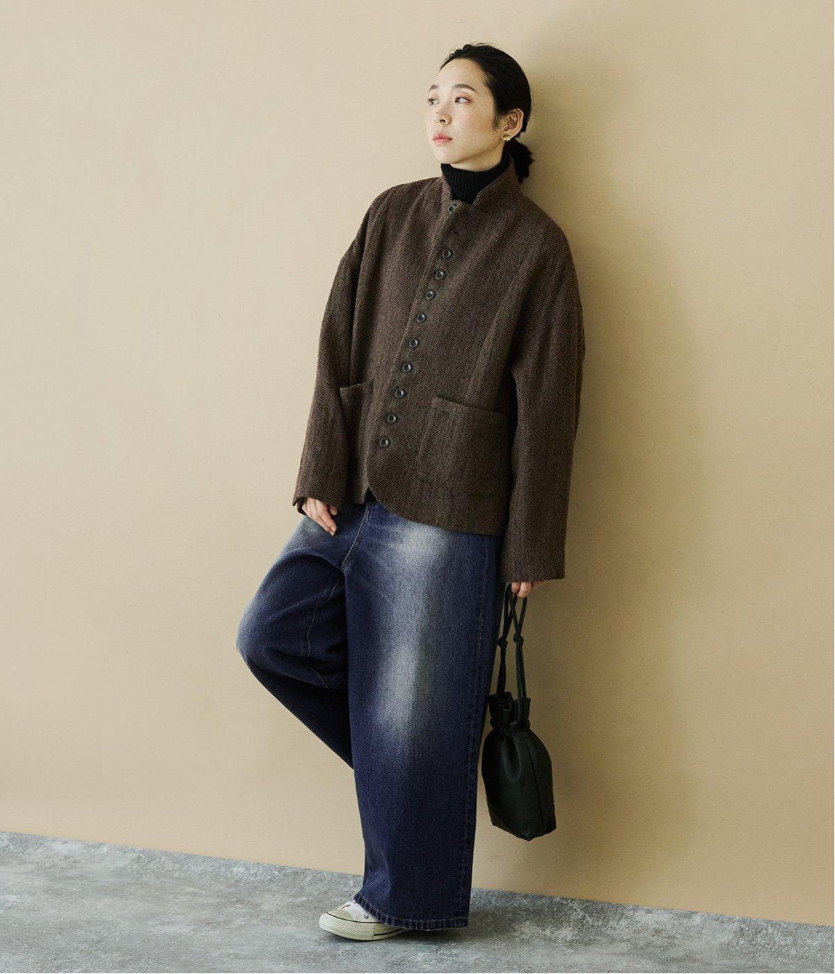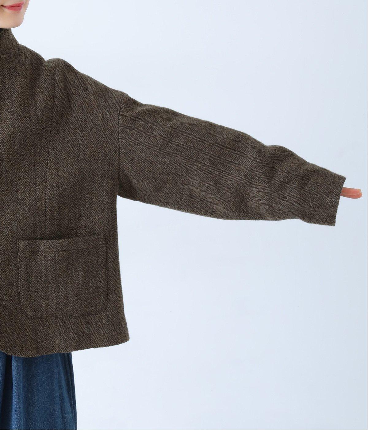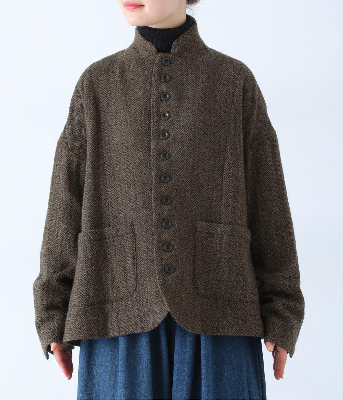 繊細なヘリンボーン柄が装いに奥行きを添えるウールジャケット。ほどよい立ち襟ときれいに並んだボタンが印象的で、シンプルながら存在感のある一着です。