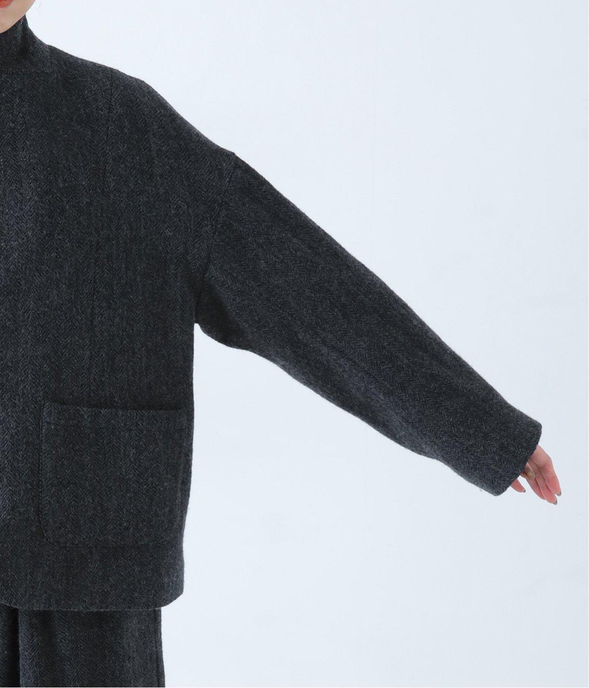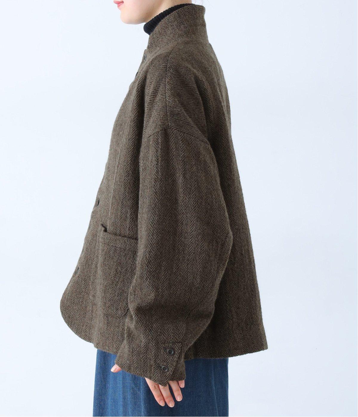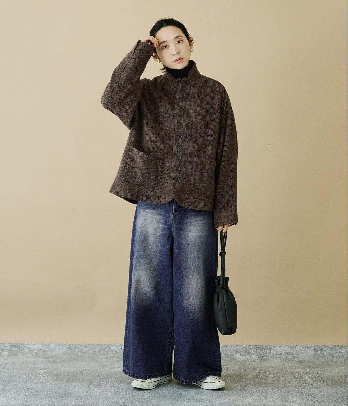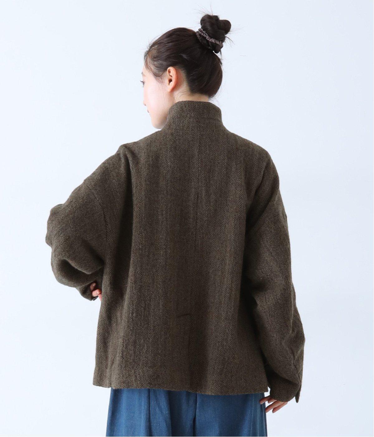 繊細なヘリンボーン柄が装いに奥行きを添えるウールジャケット。ほどよい立ち襟ときれいに並んだボタンが印象的で、シンプルながら存在感のある一着です。
