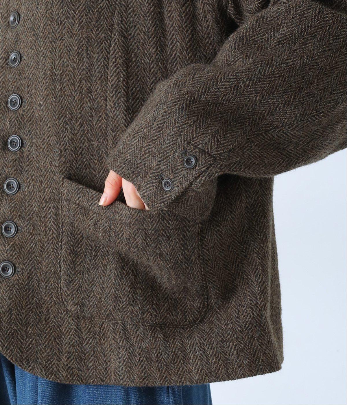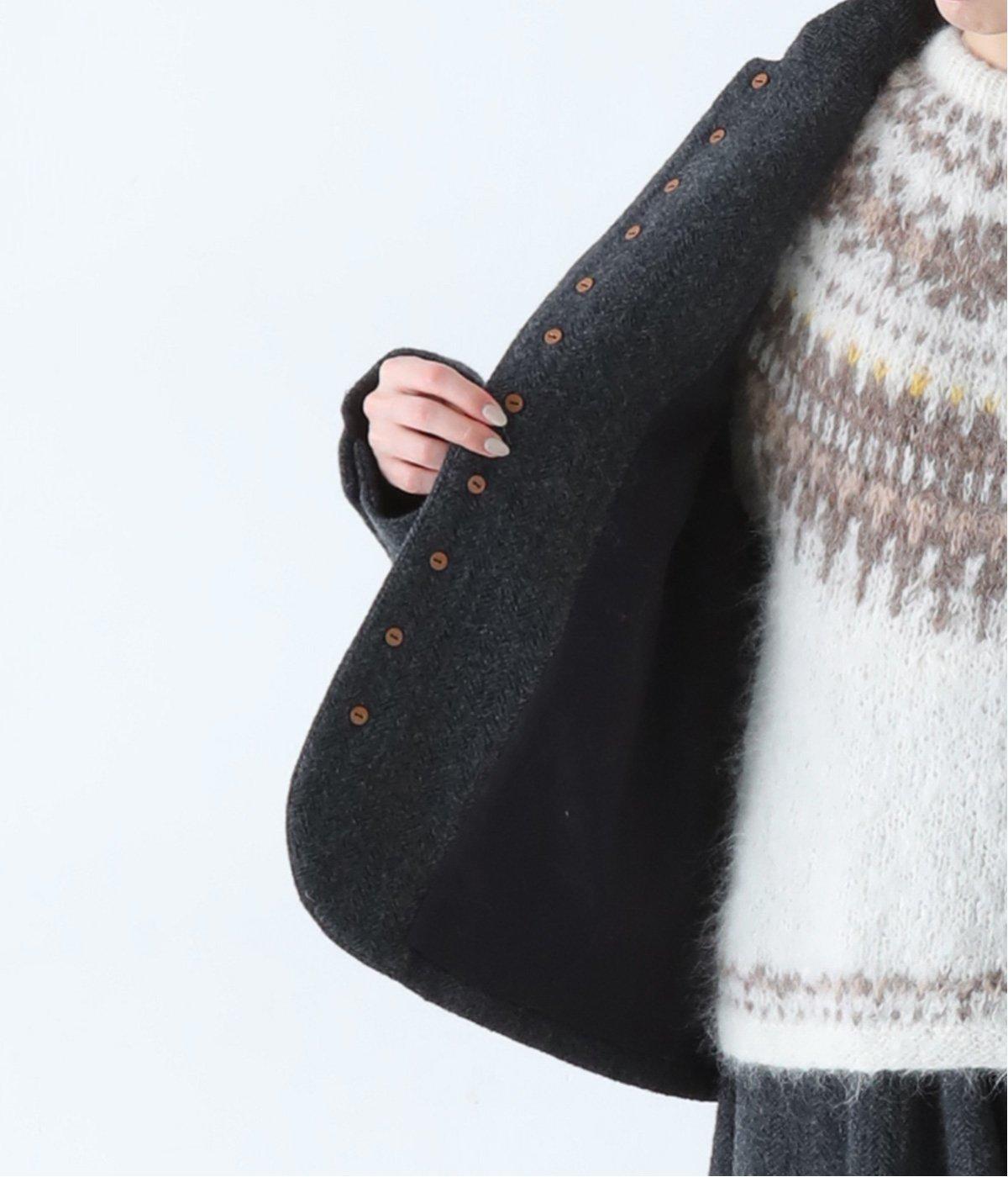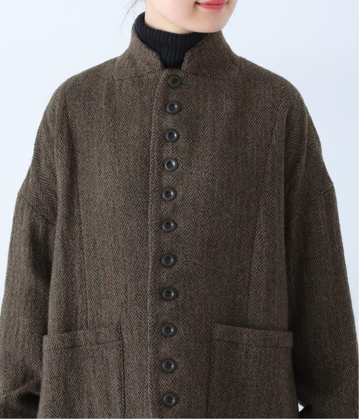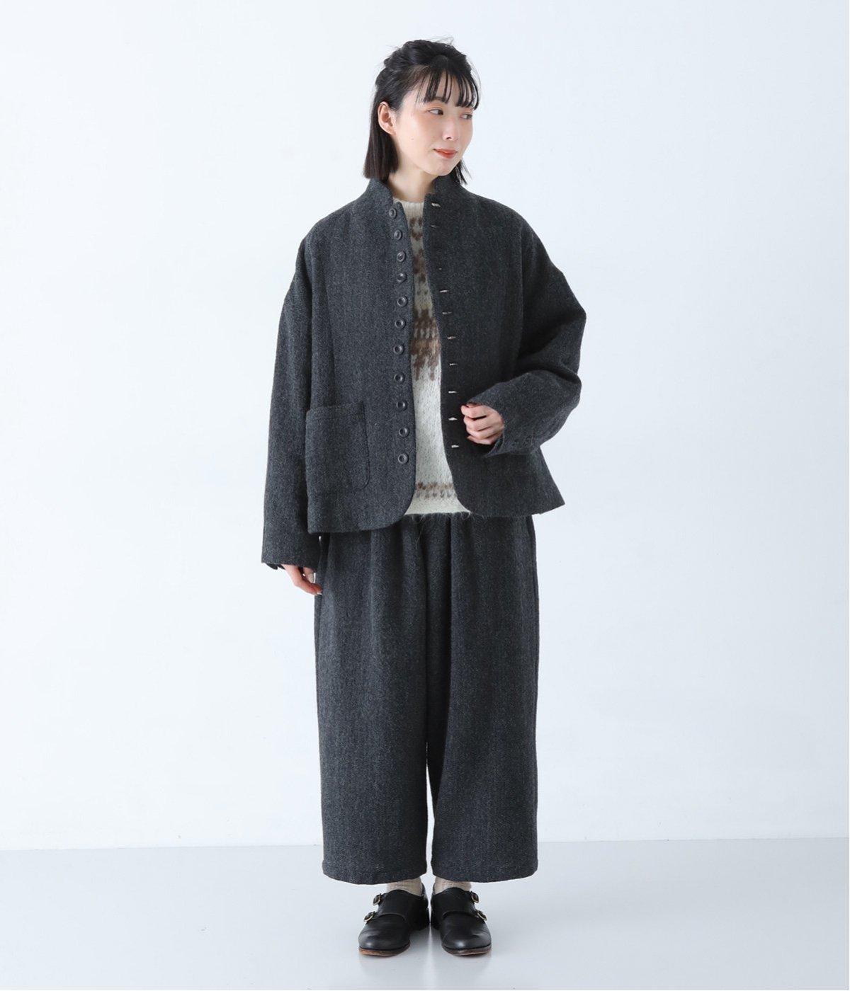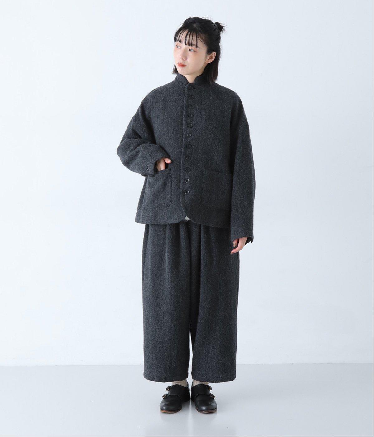 繊細なヘリンボーン柄が装いに奥行きを添えるウールジャケット。ほどよい立ち襟ときれいに並んだボタンが印象的で、シンプルながら存在感のある一着です。