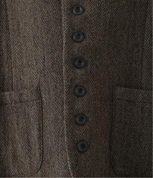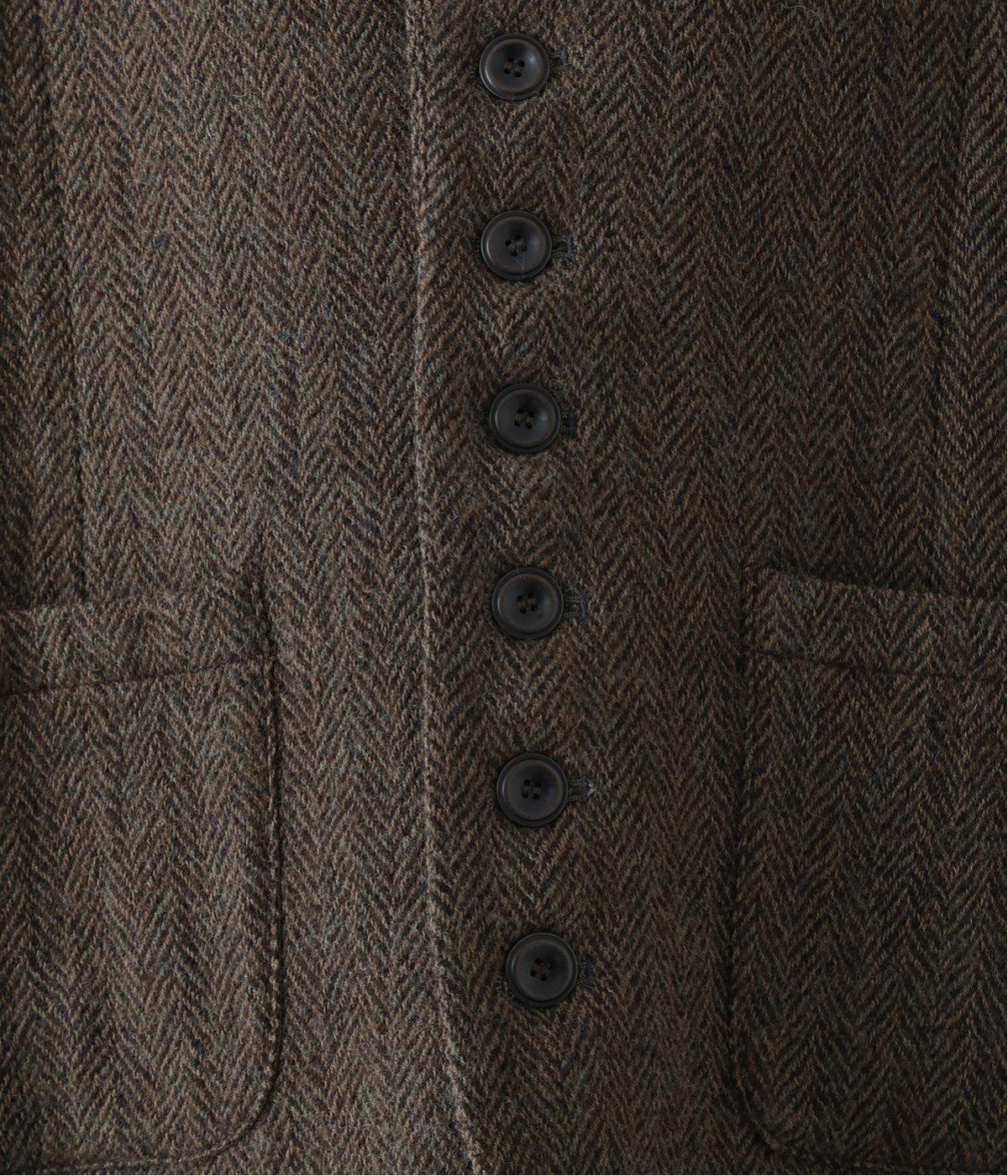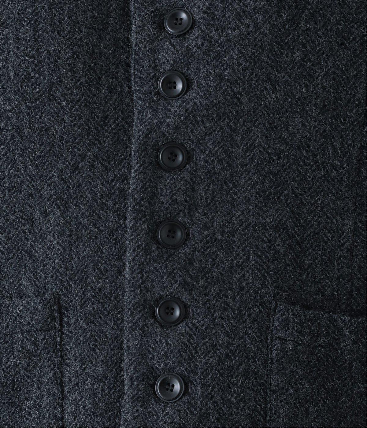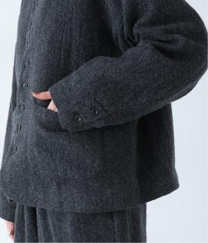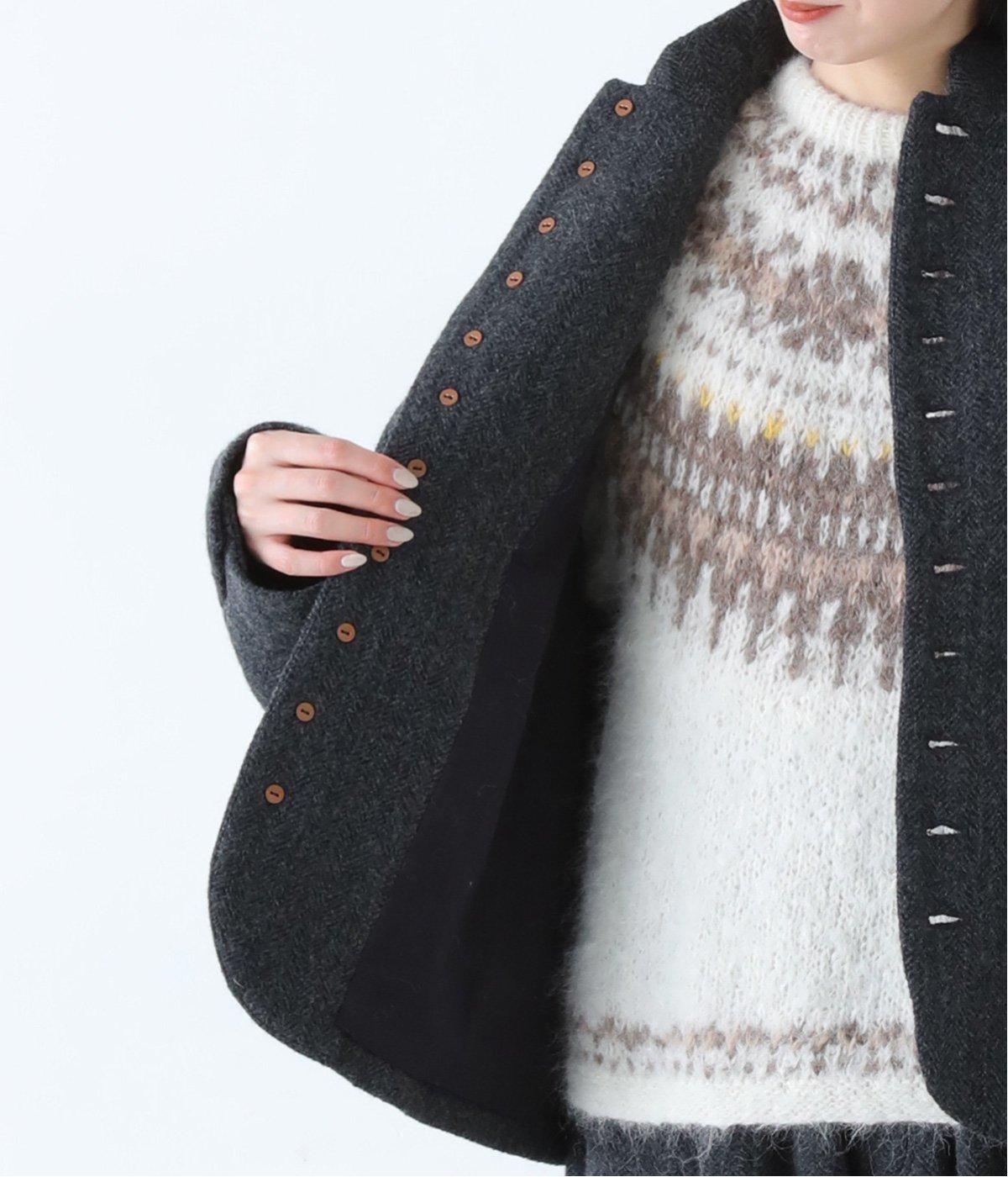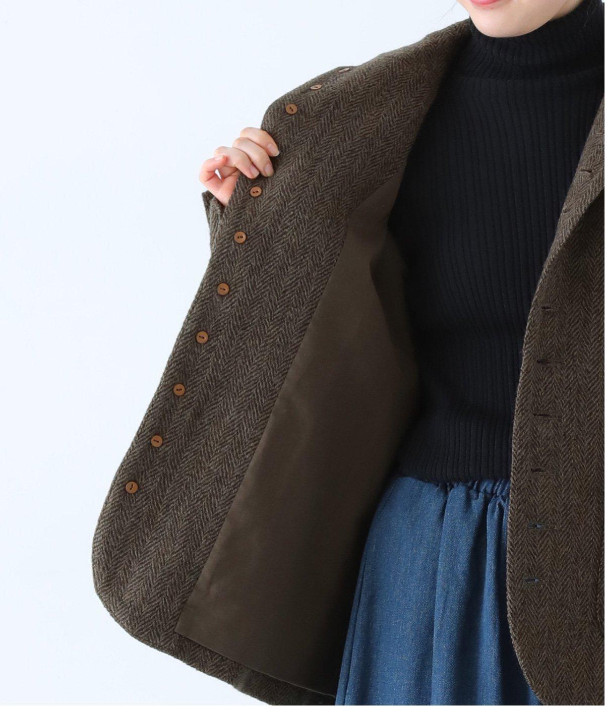 繊細なヘリンボーン柄が装いに奥行きを添えるウールジャケット。ほどよい立ち襟ときれいに並んだボタンが印象的で、シンプルながら存在感のある一着です。