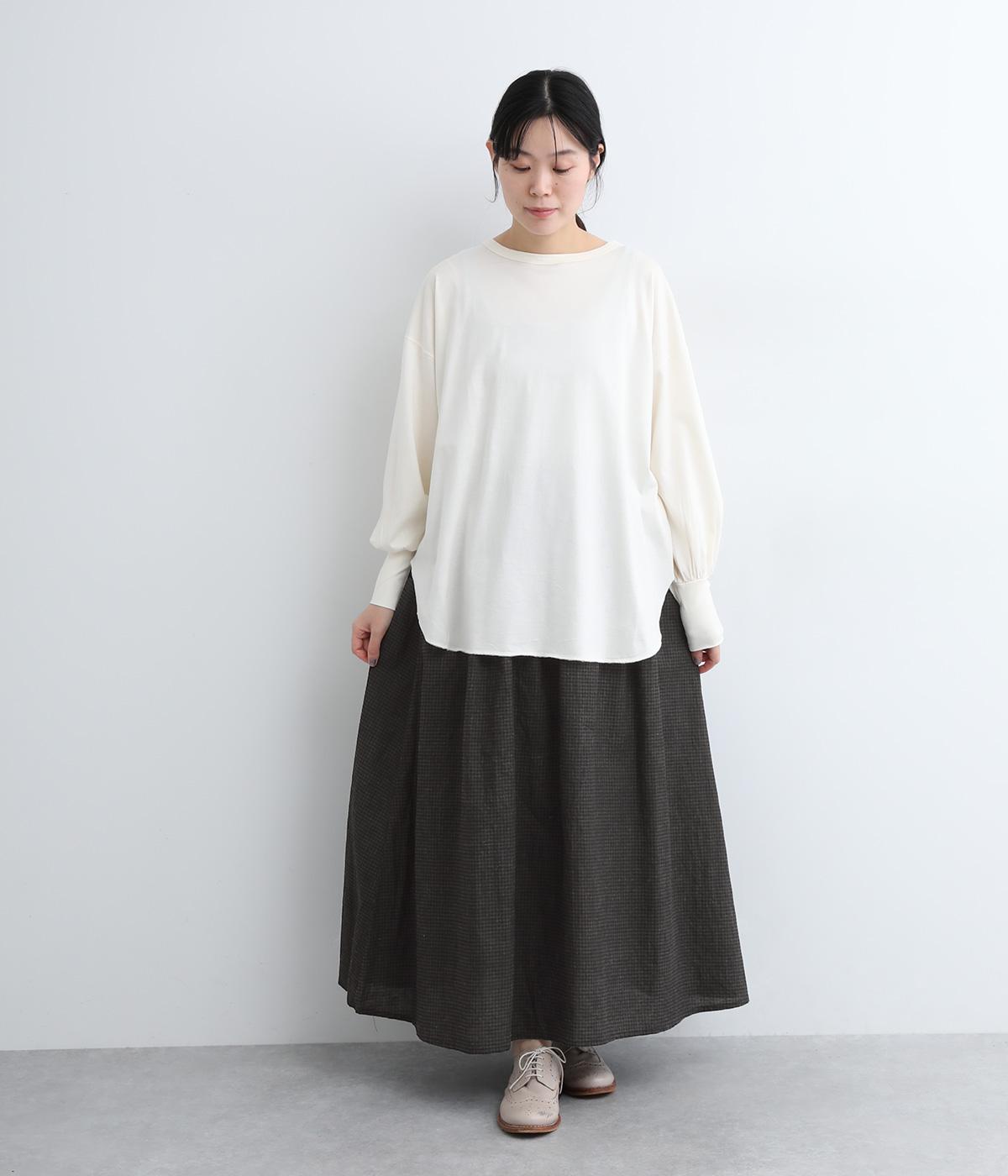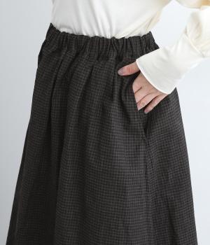 リネンとコットンをブレンドしたしなやかな肌ざわりの素材を使用。落ち着いた配色のチェック柄がカジュアルすぎず、スタイリングのほどよいアクセントになります。