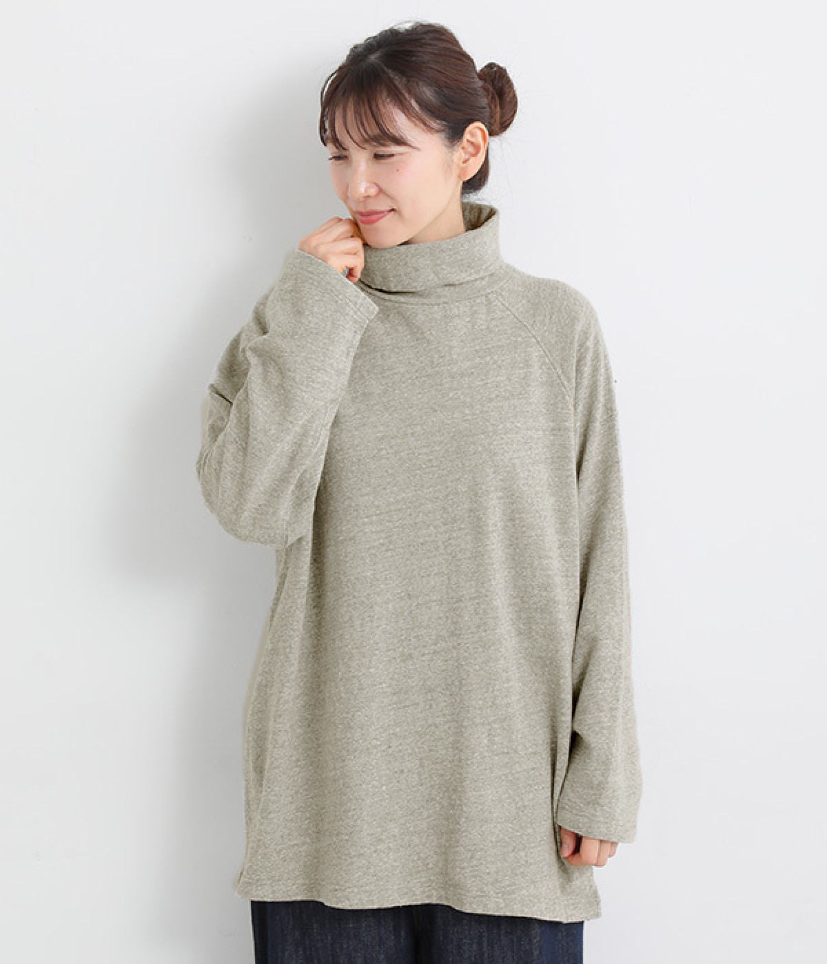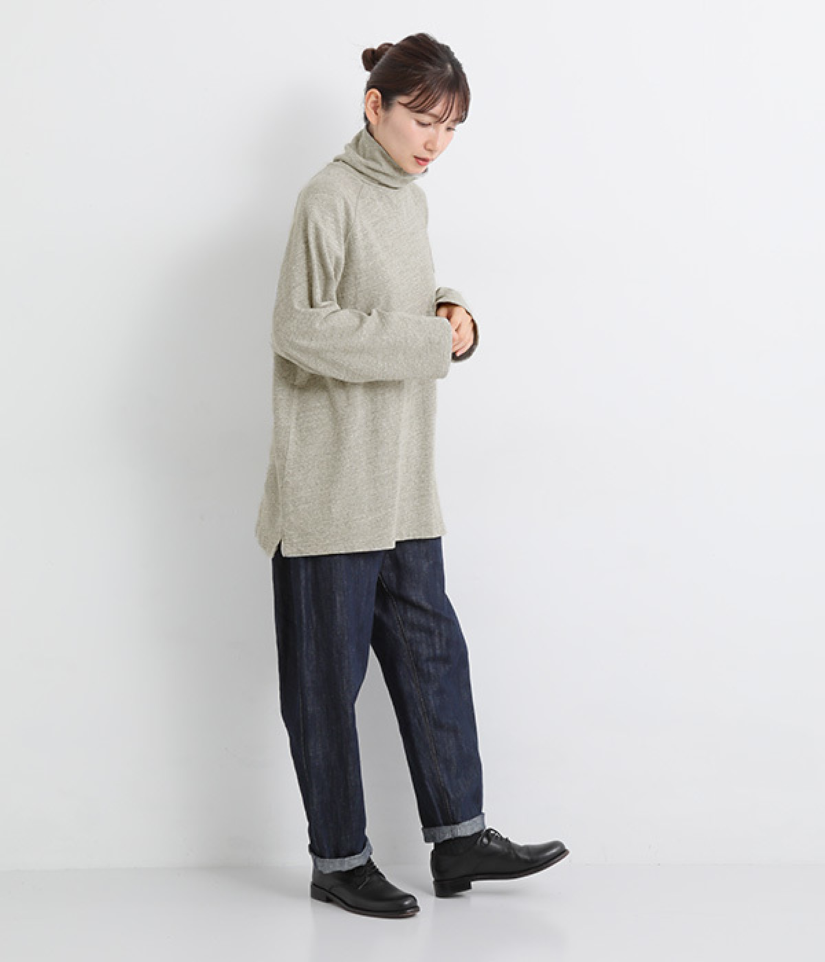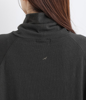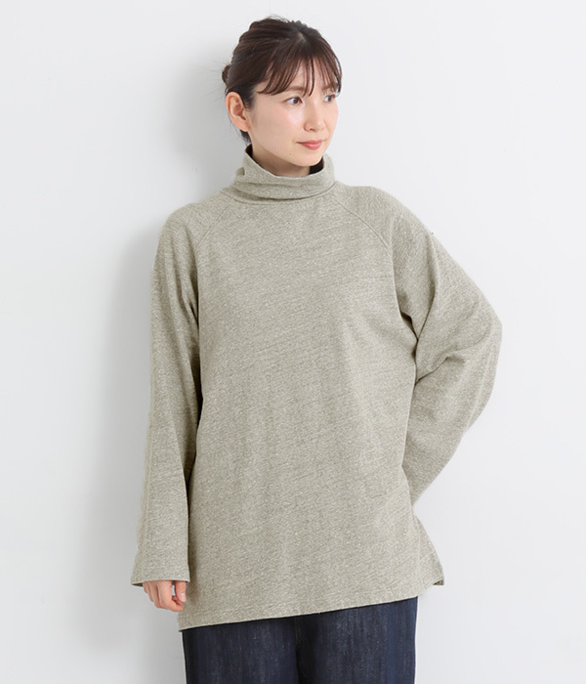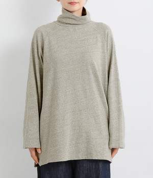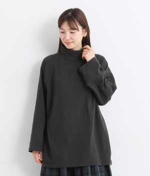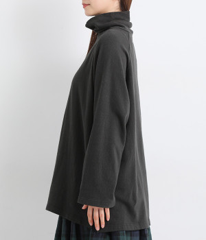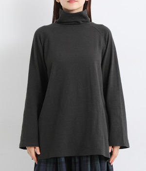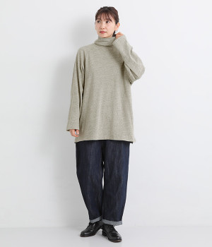 すっぽりと体を包む、身幅大きめ&着丈長めのリラックス感がカジュアル向き。高めのタートルネックも、開きにゆとりを持たせることで快適に着こなせます。袖の接ぎをラグラン仕様にして腕をラクに動かせるのも◎。