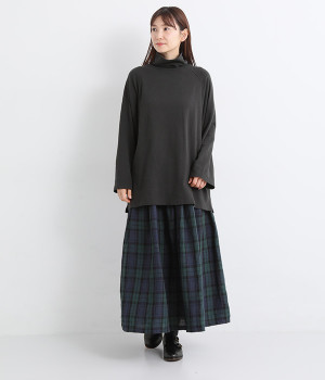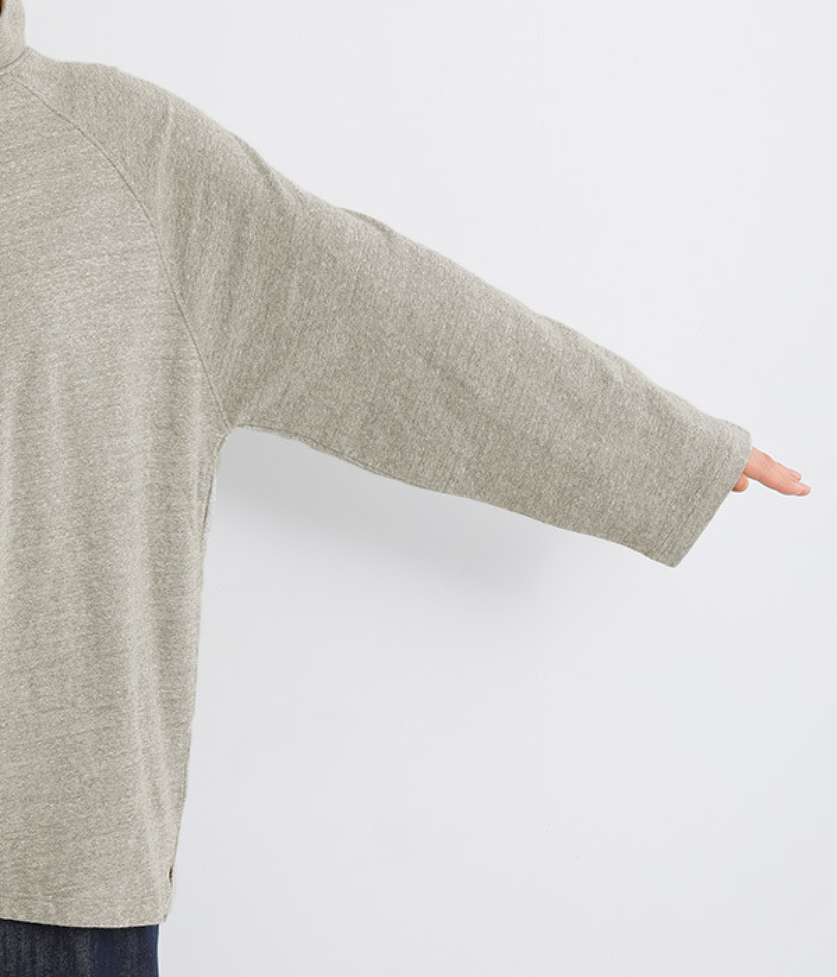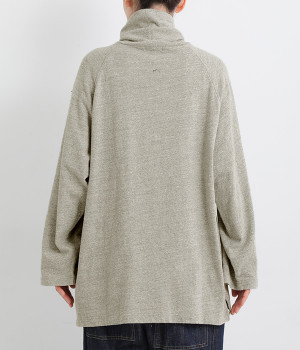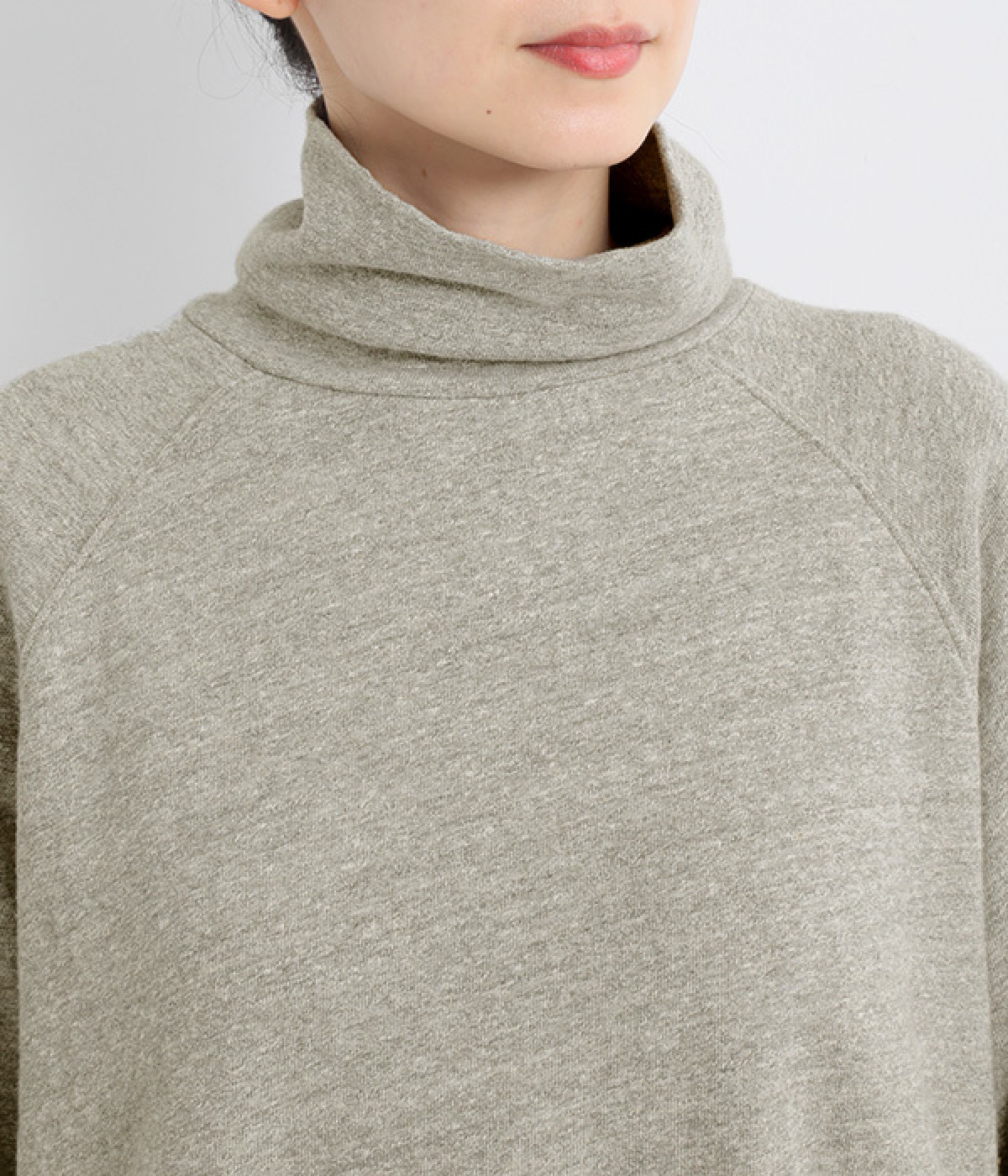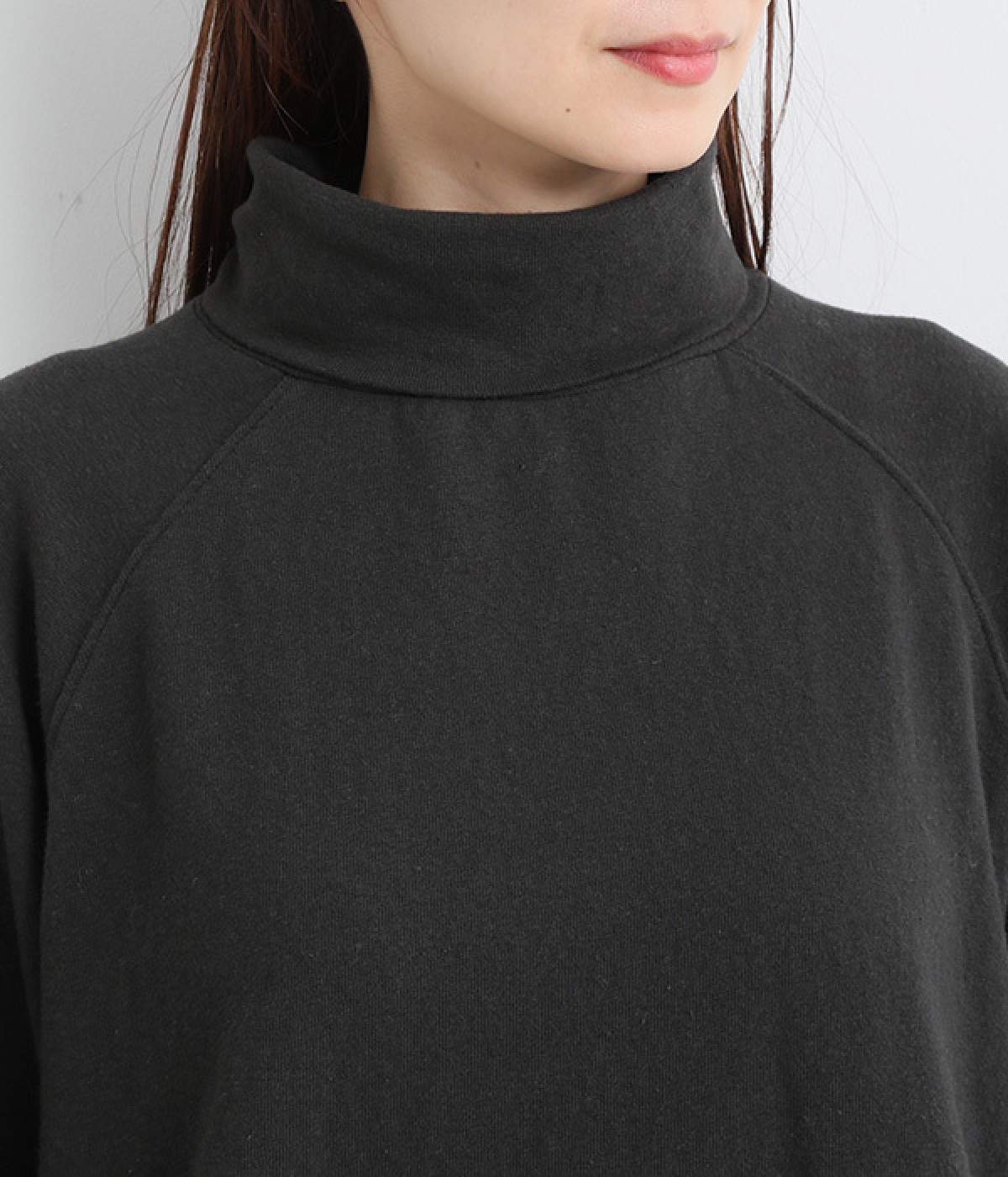 すっぽりと体を包む、身幅大きめ&着丈長めのリラックス感がカジュアル向き。高めのタートルネックも、開きにゆとりを持たせることで快適に着こなせます。袖の接ぎをラグラン仕様にして腕をラクに動かせるのも◎。
