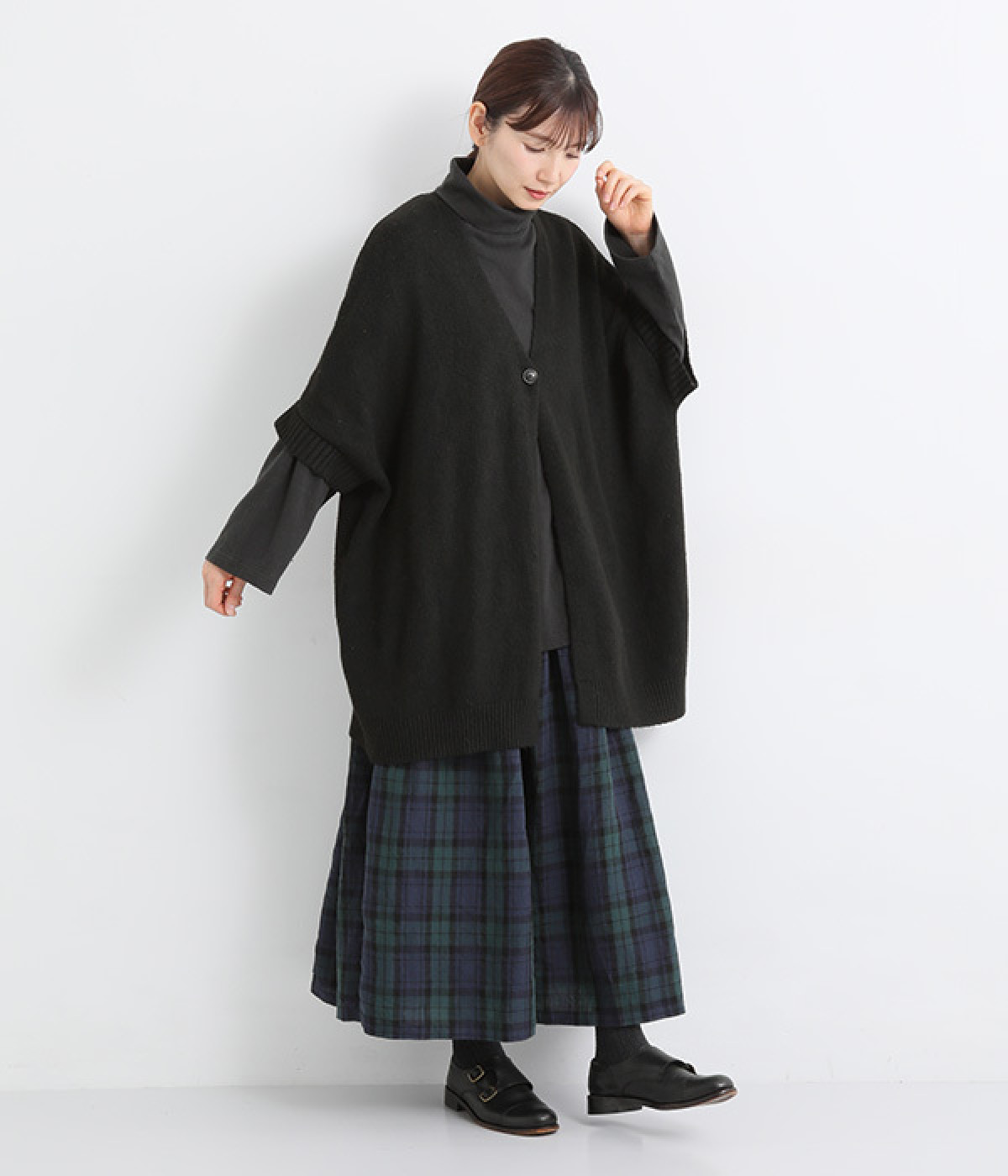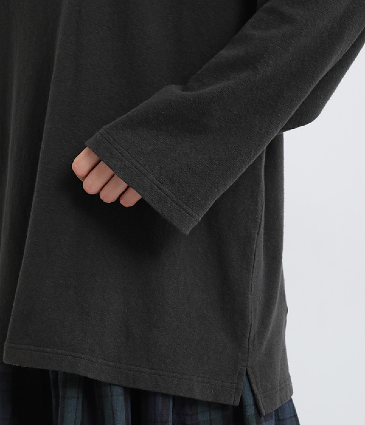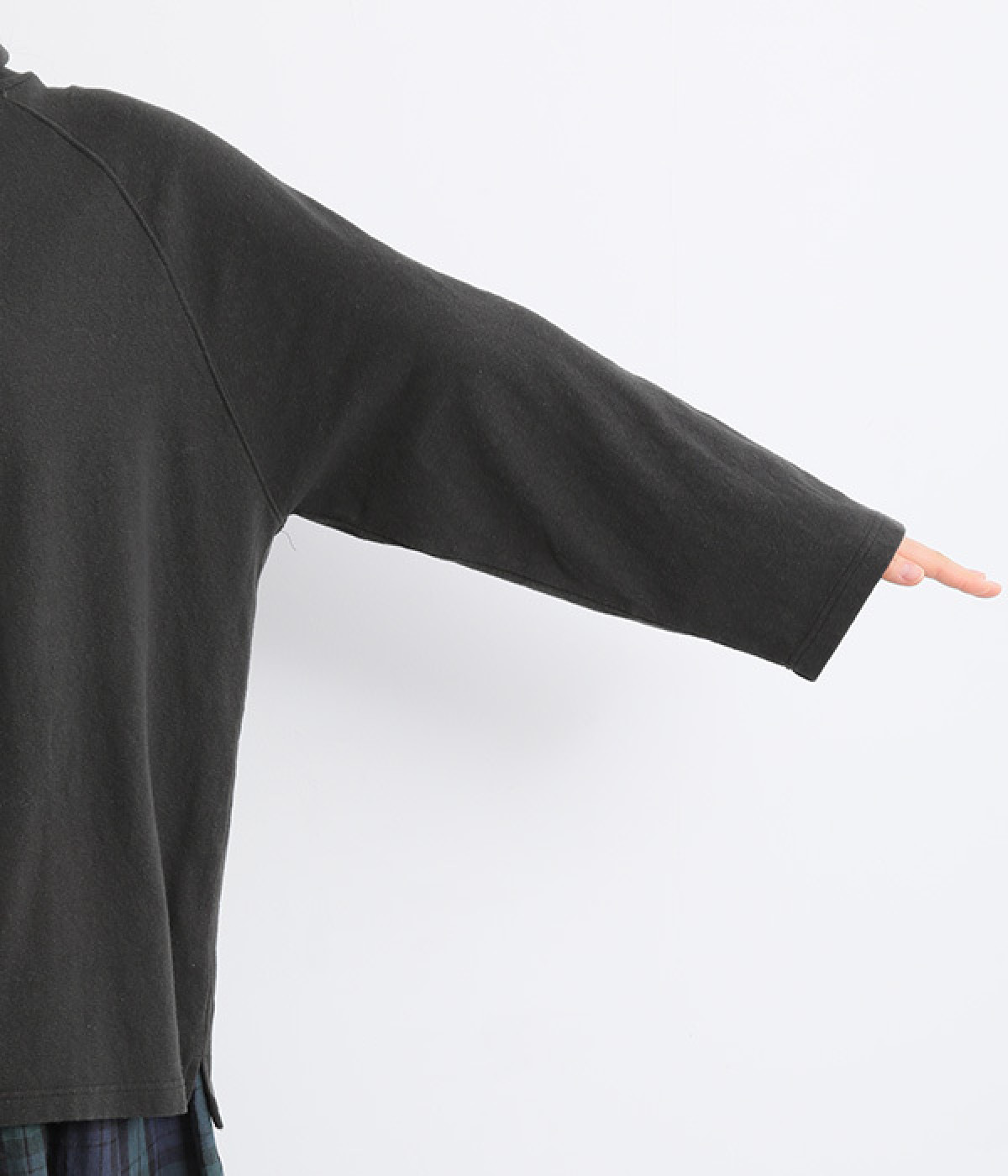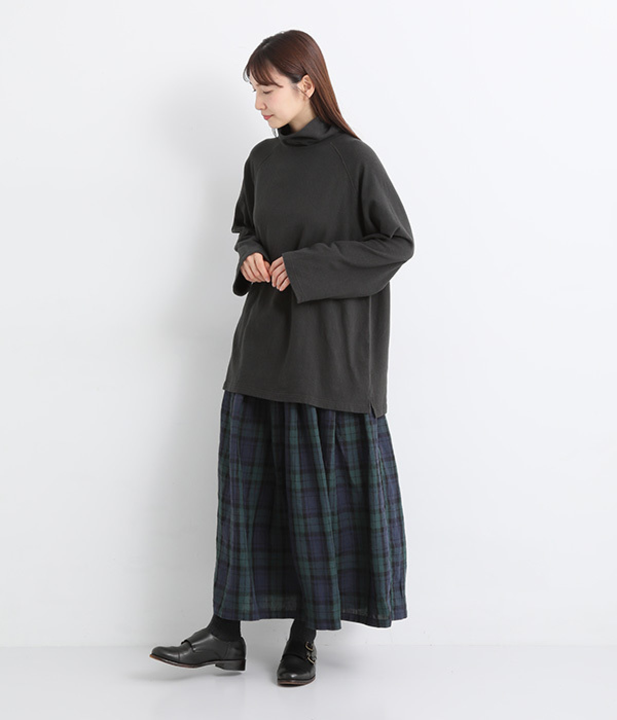 すっぽりと体を包む、身幅大きめ&着丈長めのリラックス感がカジュアル向き。高めのタートルネックも、開きにゆとりを持たせることで快適に着こなせます。袖の接ぎをラグラン仕様にして腕をラクに動かせるのも◎。