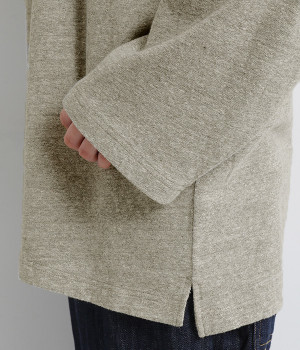 ストレッチ素材を混紡し、しなやかな伸びが着心地の良さを後押し。何度も着用を重ねたようなくったりとやわらかな肌ざわりと、ネップ感のあるヴィンテージ風の生地が特徴です。