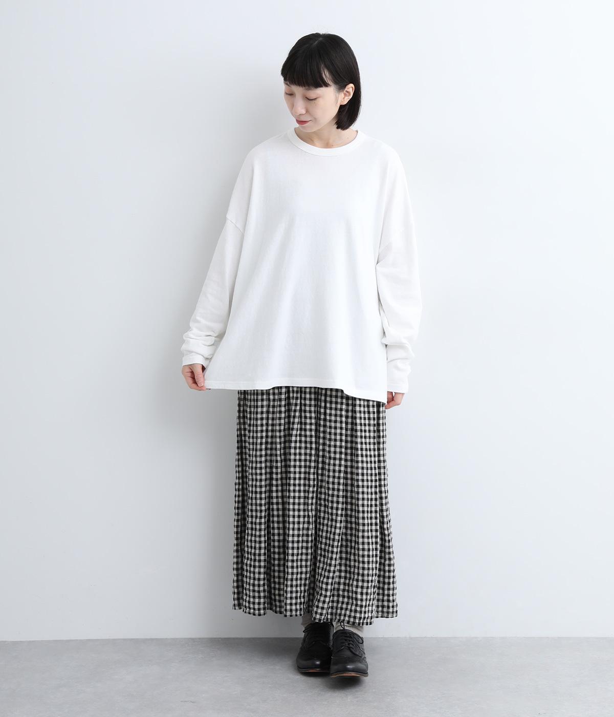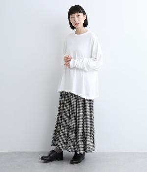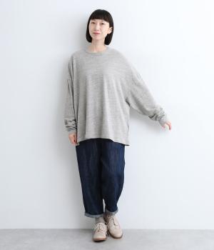 ふっくらと編み立てた、伸縮性のあるやさしい肌触りのコットン素材。薄すぎず厚すぎずの生地感で、身体にまとわりつかずふわっとした着心地が快適です。