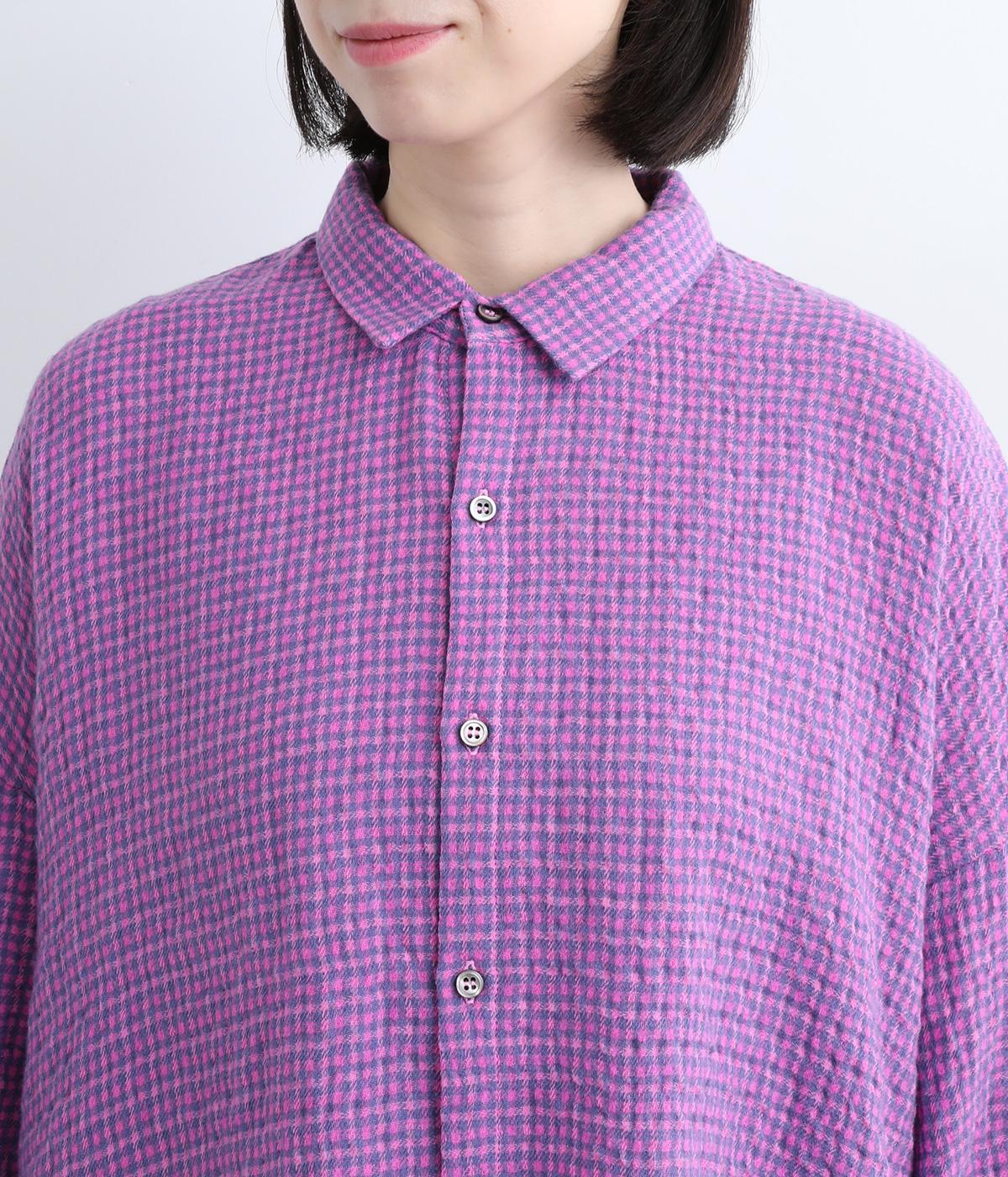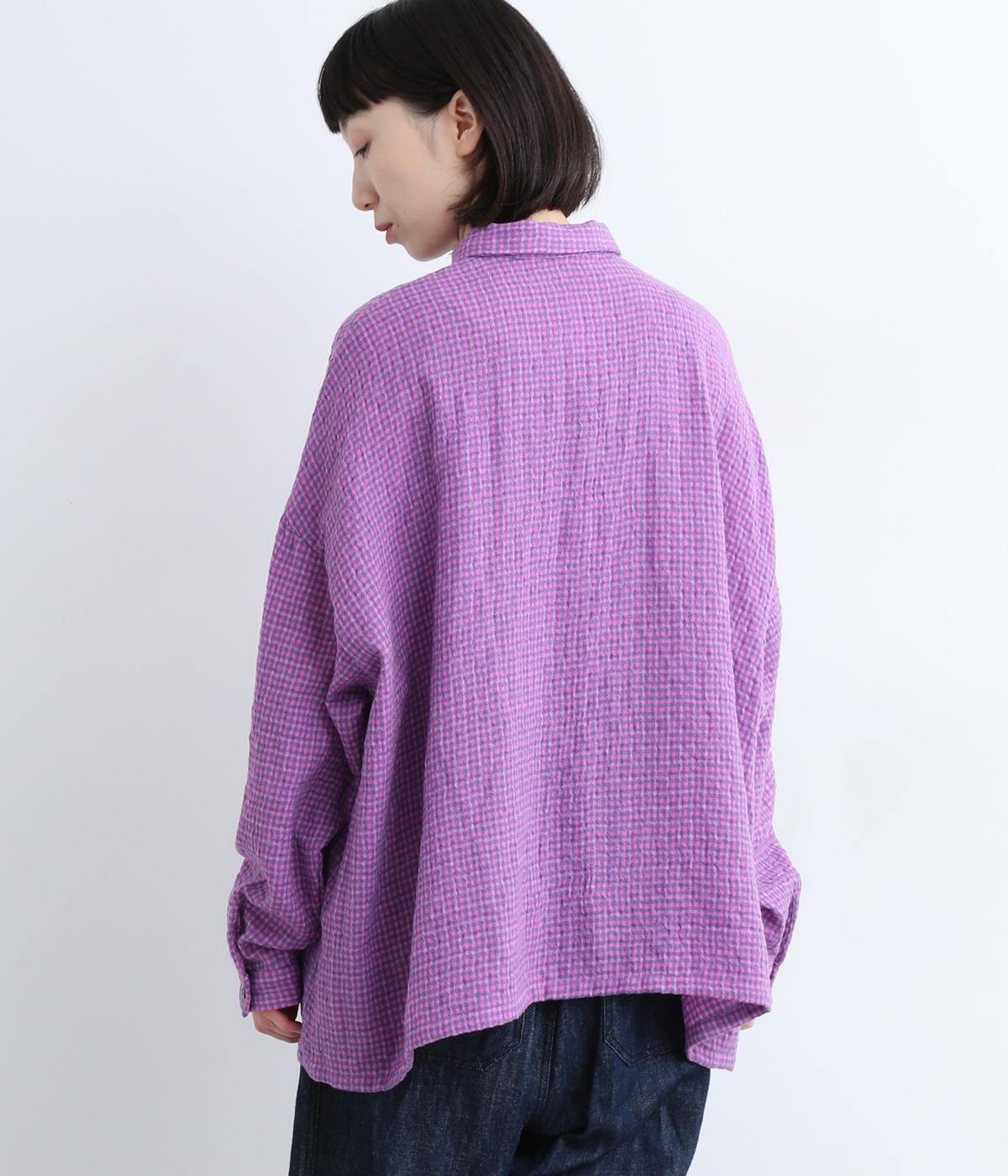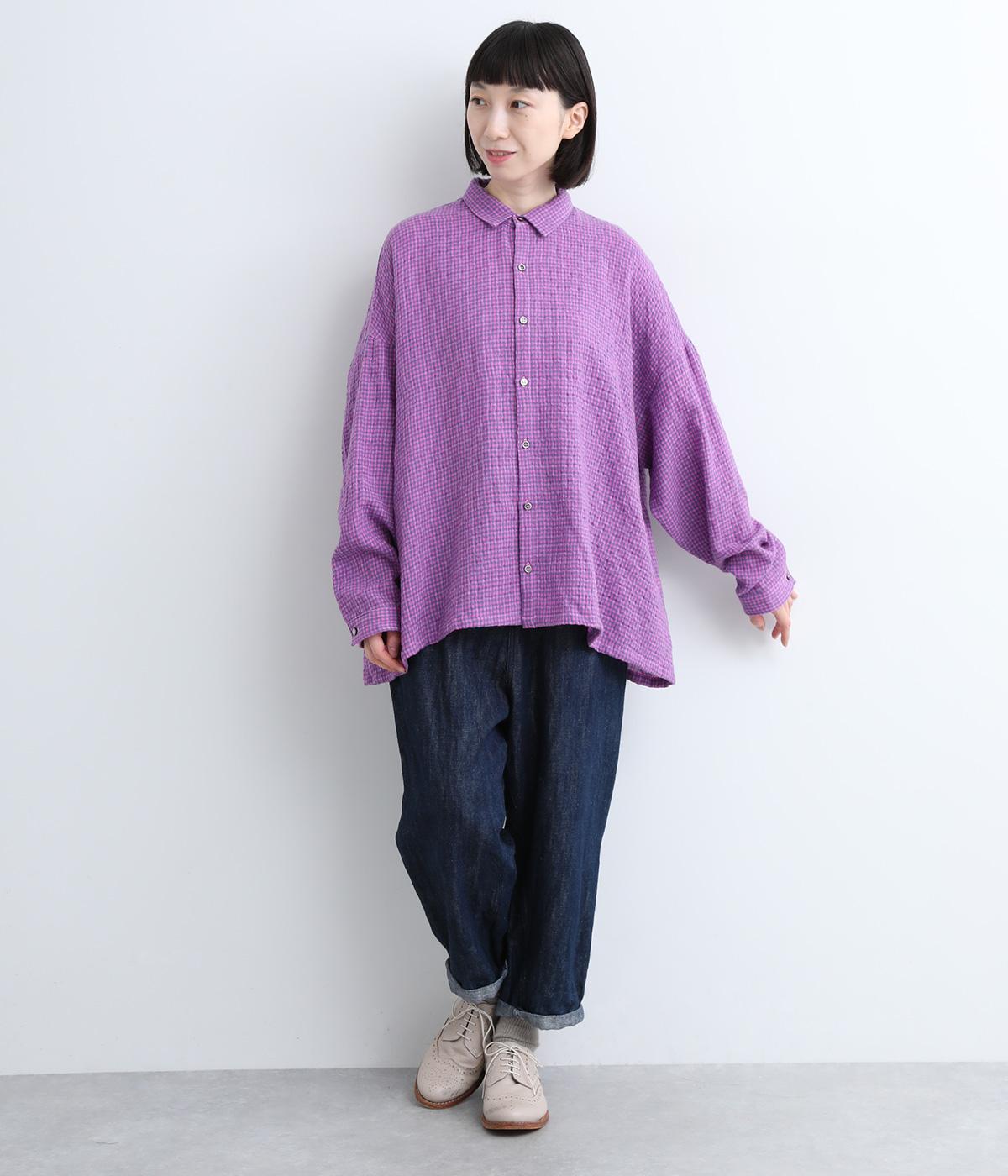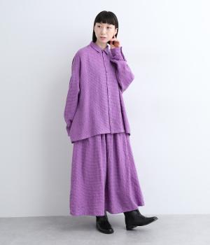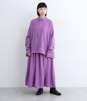 余白を持ったサイズ感でゆったりと着られるオーバーシャツ。さりげないチェック柄と特徴的な生地感が、スタイリングに奥行きを与えてくれます。一枚ではもちろん、同素材のスカートとセットアップで着用するのもおすすめです。