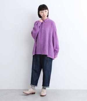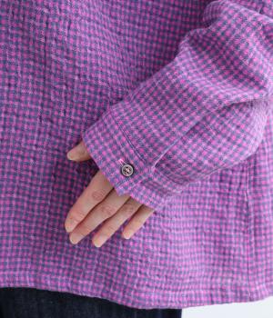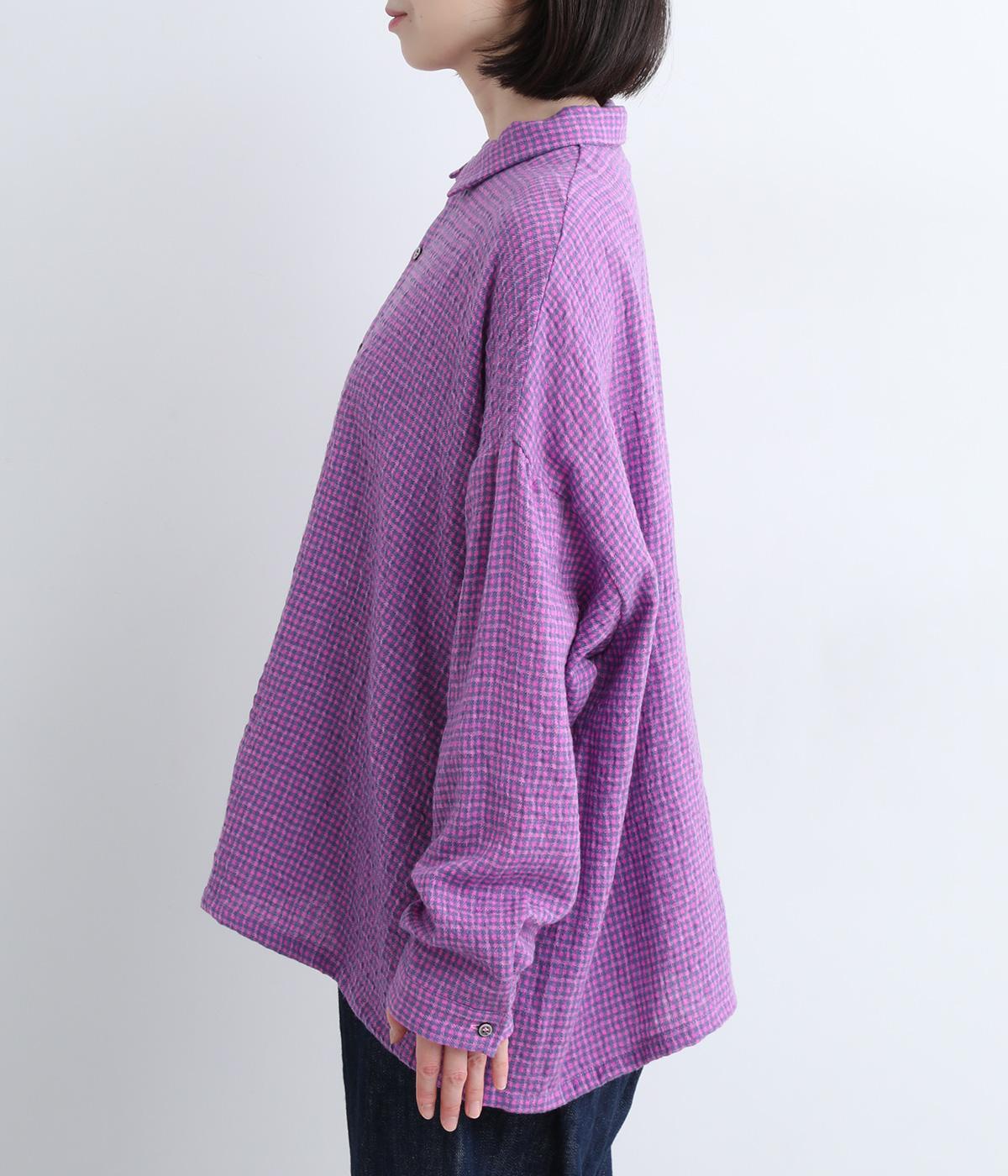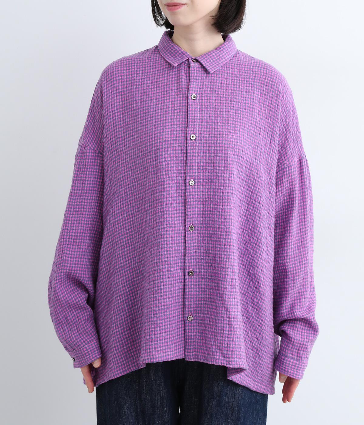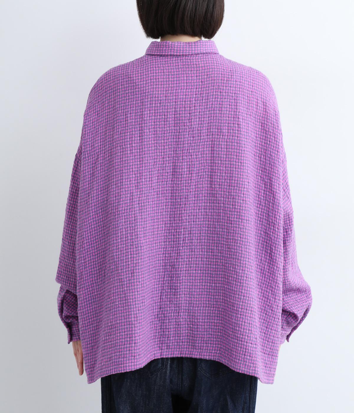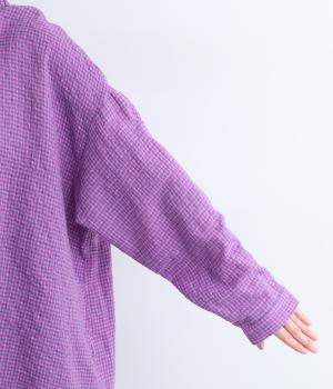 余白を持ったサイズ感でゆったりと着られるオーバーシャツ。さりげないチェック柄と特徴的な生地感が、スタイリングに奥行きを与えてくれます。一枚ではもちろん、同素材のスカートとセットアップで着用するのもおすすめです。