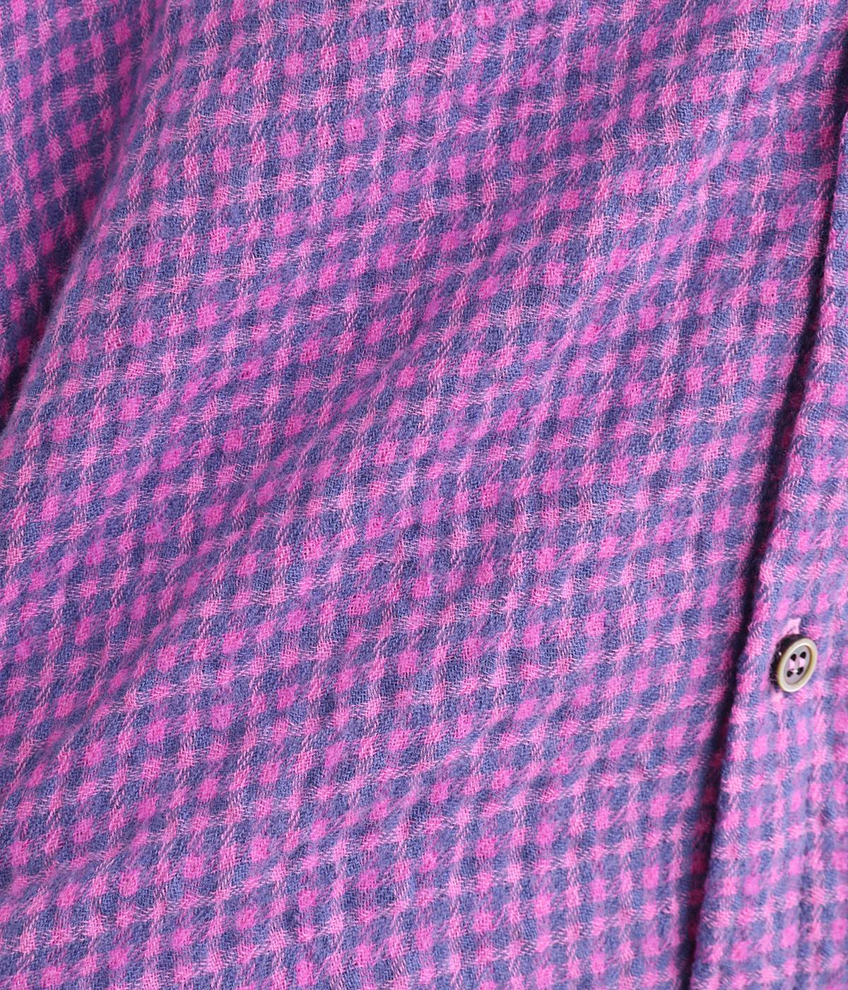 あたたかみのあるウール素材に、ふっくらとやわらかな質感をもたらすコットン素材を混紡。ブルー×ピングの印象的なギンガムチェック柄を、凹凸のある表面感がなじませてくれます。