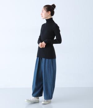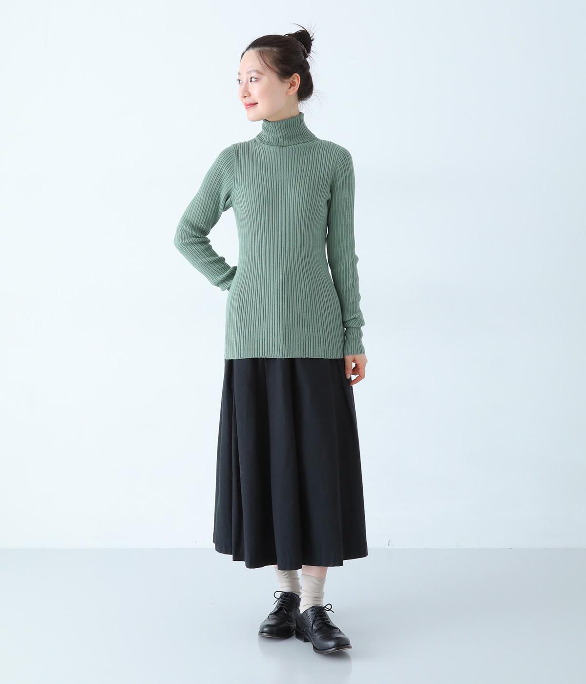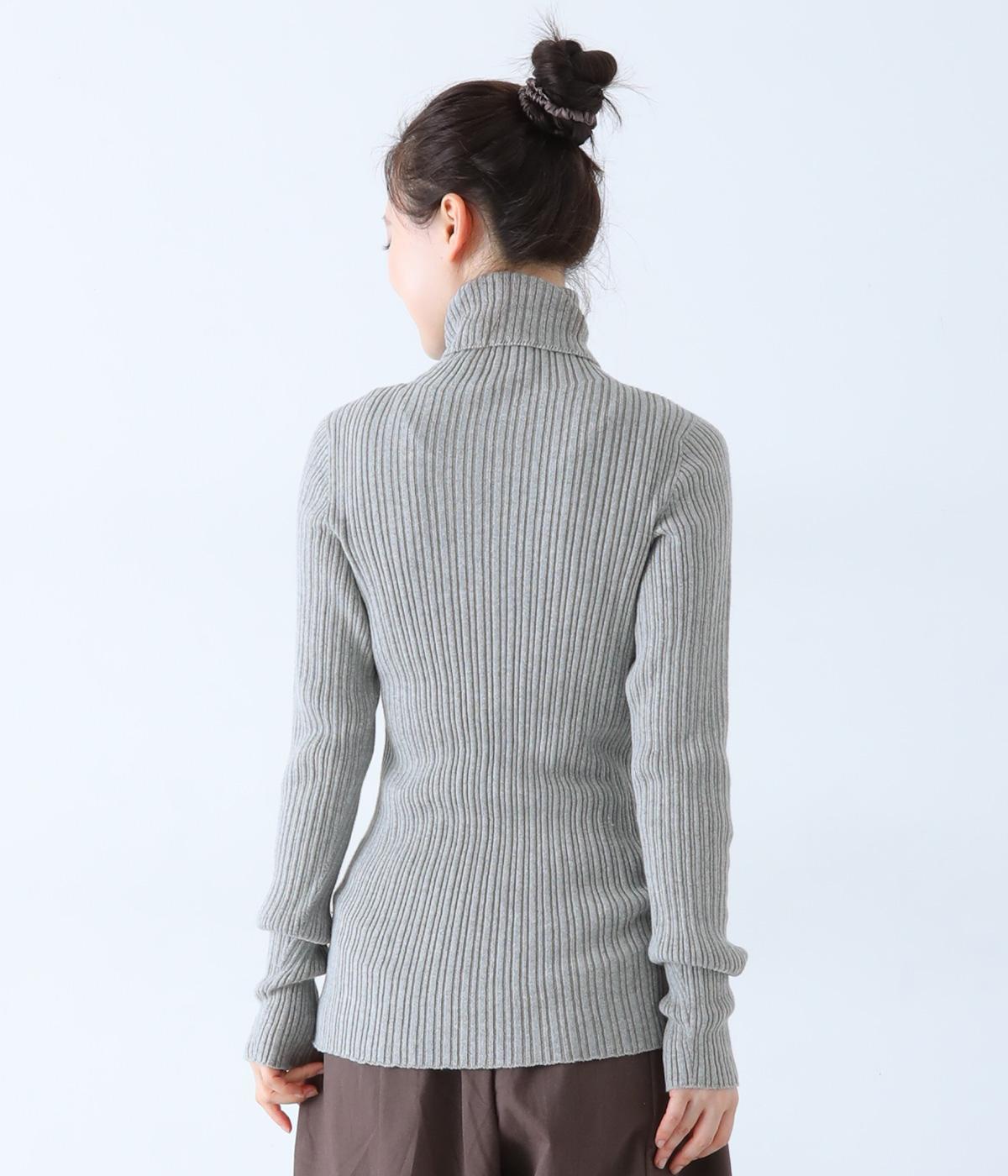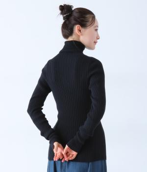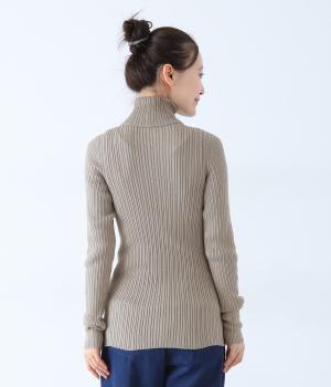 ストレスフリーな着用感にこだわったタートルネックニット。シンプルな中に映える縦方向のリブが、よりすっきりとした印象を与えてくれます。袖丈は長めに仕上げてくしゅっとしたニュアンスのある表情に。一枚ではもちろん、レイヤードもサマ見えする活用度の高いアイテムです。