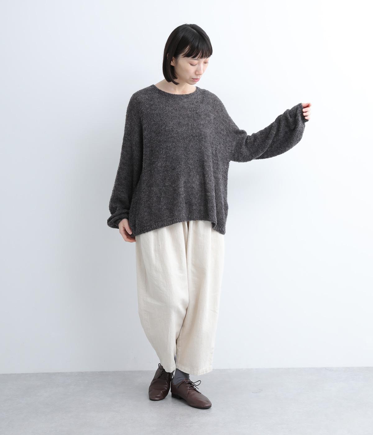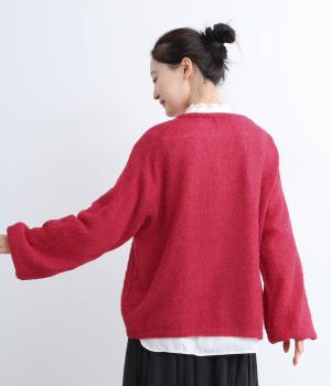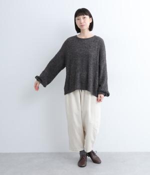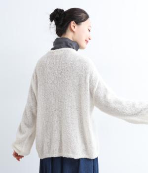 ペルーで一枚一枚丹精込めて手編みで作られたペルーニットを使用。見た目のボリュームに反してふんわりとした驚くほどの軽さも特徴。アルパカをベースにしているのでとてもやわらかく、保温性にも優れています。