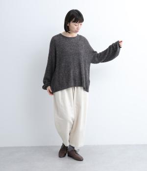 シンプルなデザインだからこそ、素材の良さが活きる一枚。袖にたぷっとボリュームを持たせてニュアンスを持たせています。身頃は全体的にゆとりのあるリラクシーな仕立てで、タートルネックなどのインナーを合わせてもすてきです。