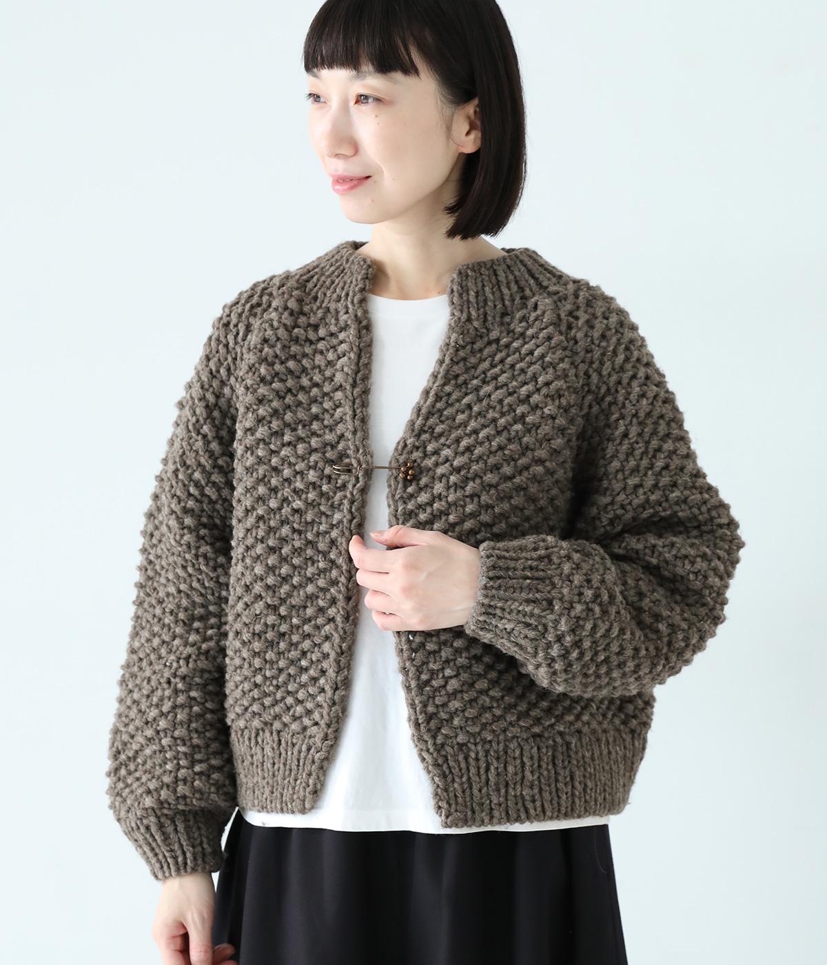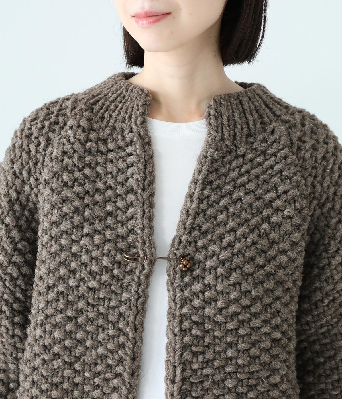 ふっくらとした丸みのあるシルエットがかわいらしいカーディガン。短めの着丈でボリューミーなフォルムを好バランスに仕上げています。さっとラフに羽織れるボタンレス仕様。付属のキルトピンで留めれば、おしゃれ感がアップします。