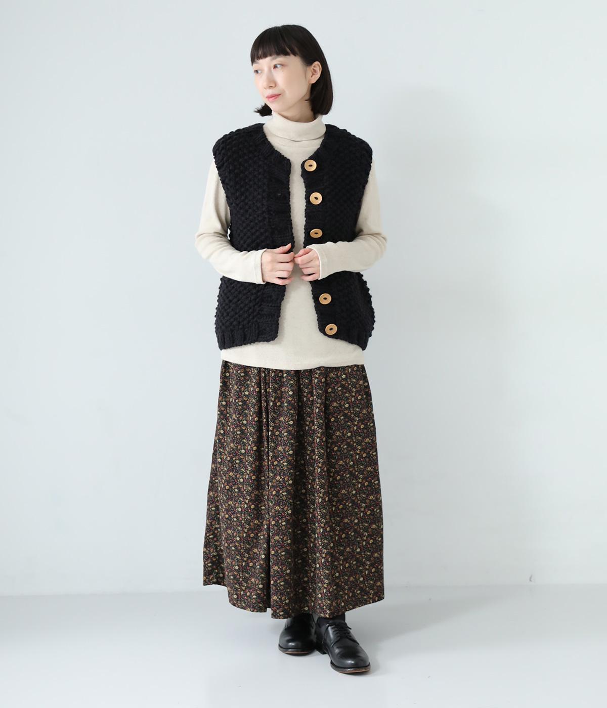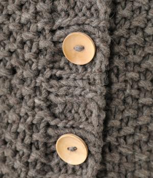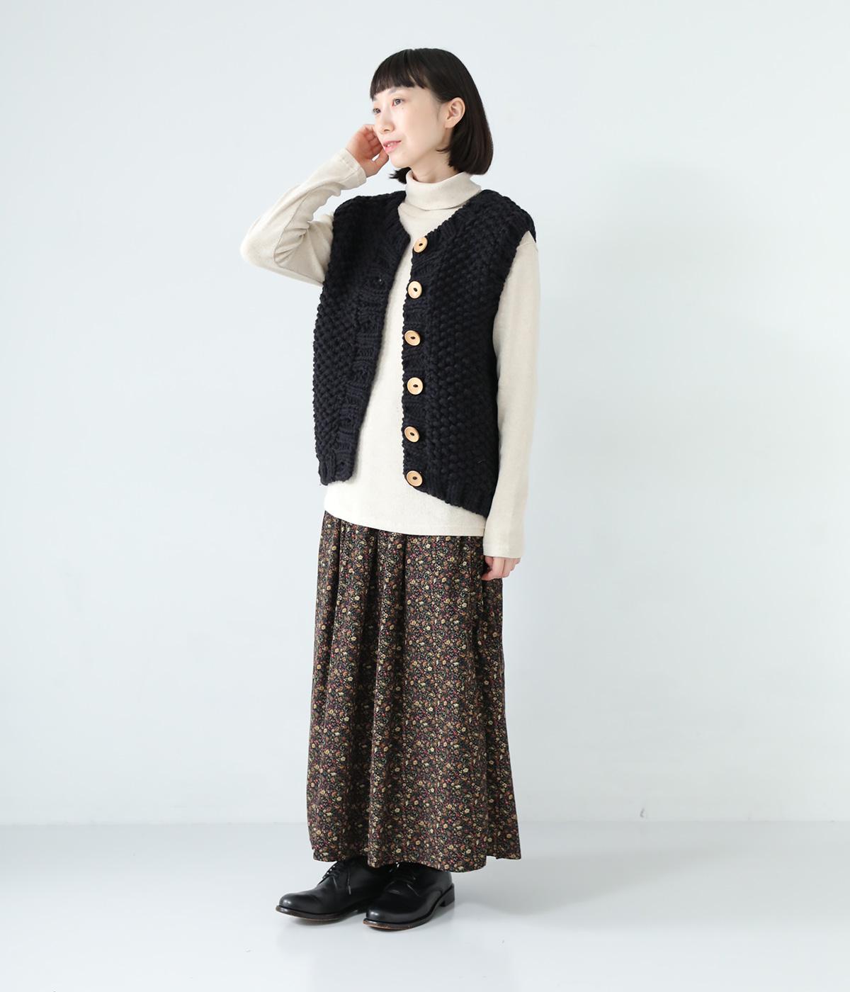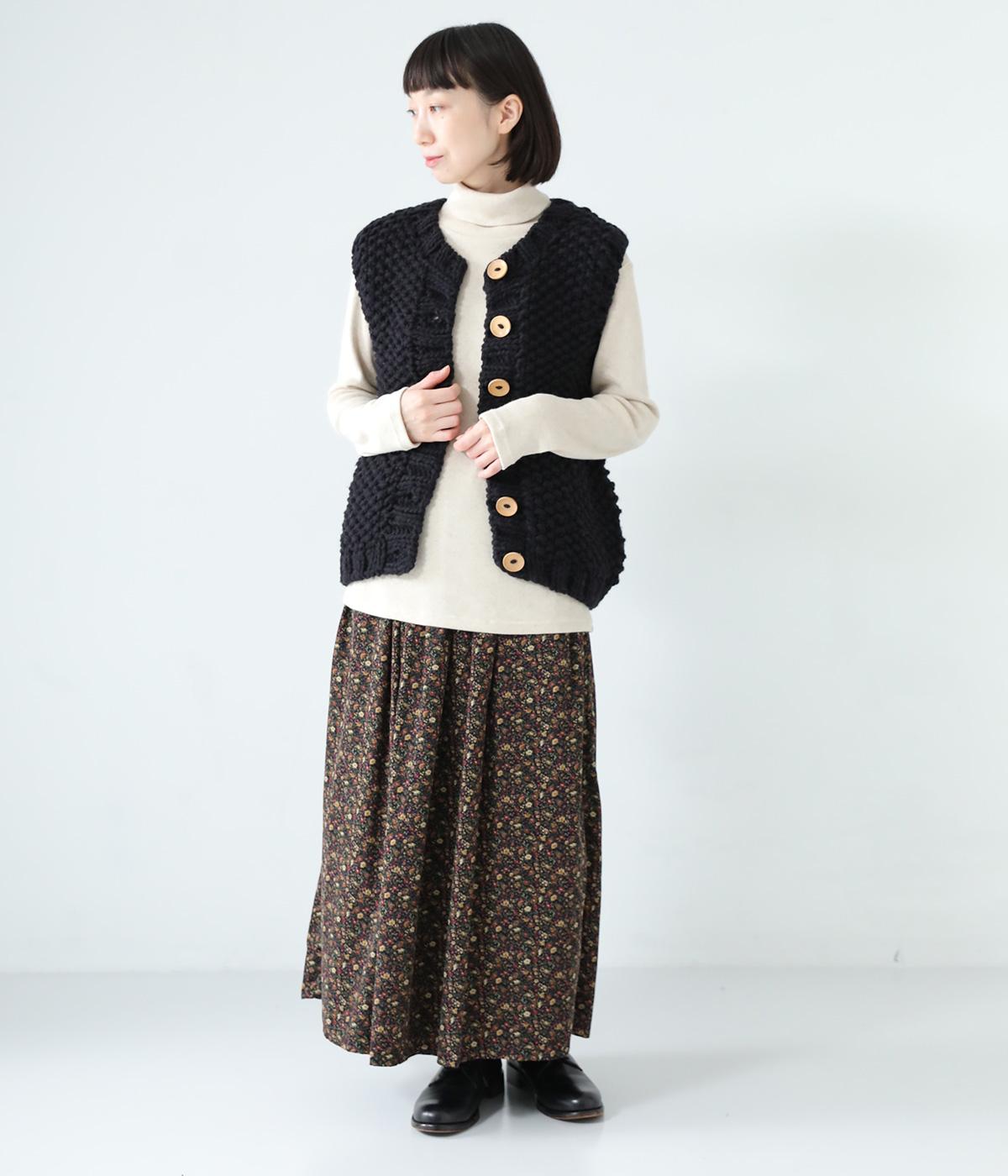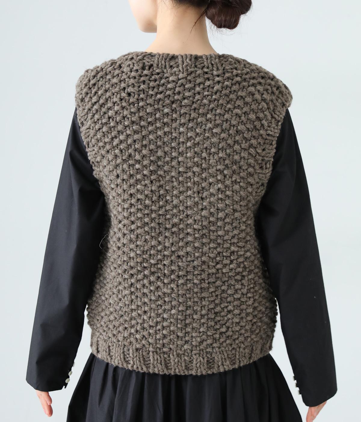 コーディネートに季節感をプラスするニットベスト。クラフト感のあるニットに大きめのウッドボタンを並べた、ぬくもりのある柔らかな雰囲気が素敵です。ボリュームがありながらも、ベストならではのすっきりとしたデザインで好バランスに。真冬には上からアウターを羽織って長く活躍します。